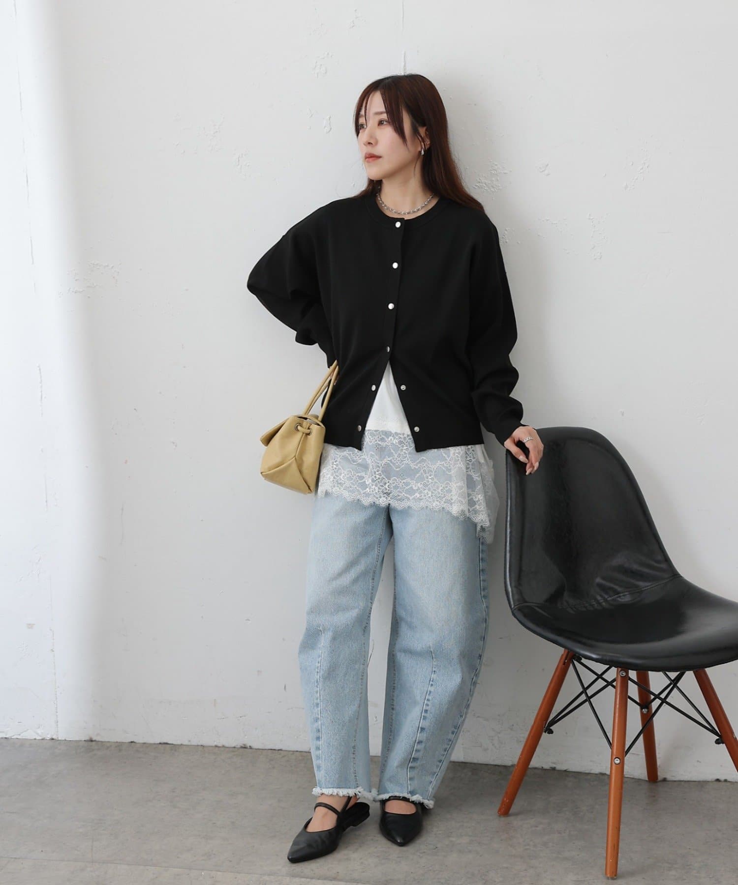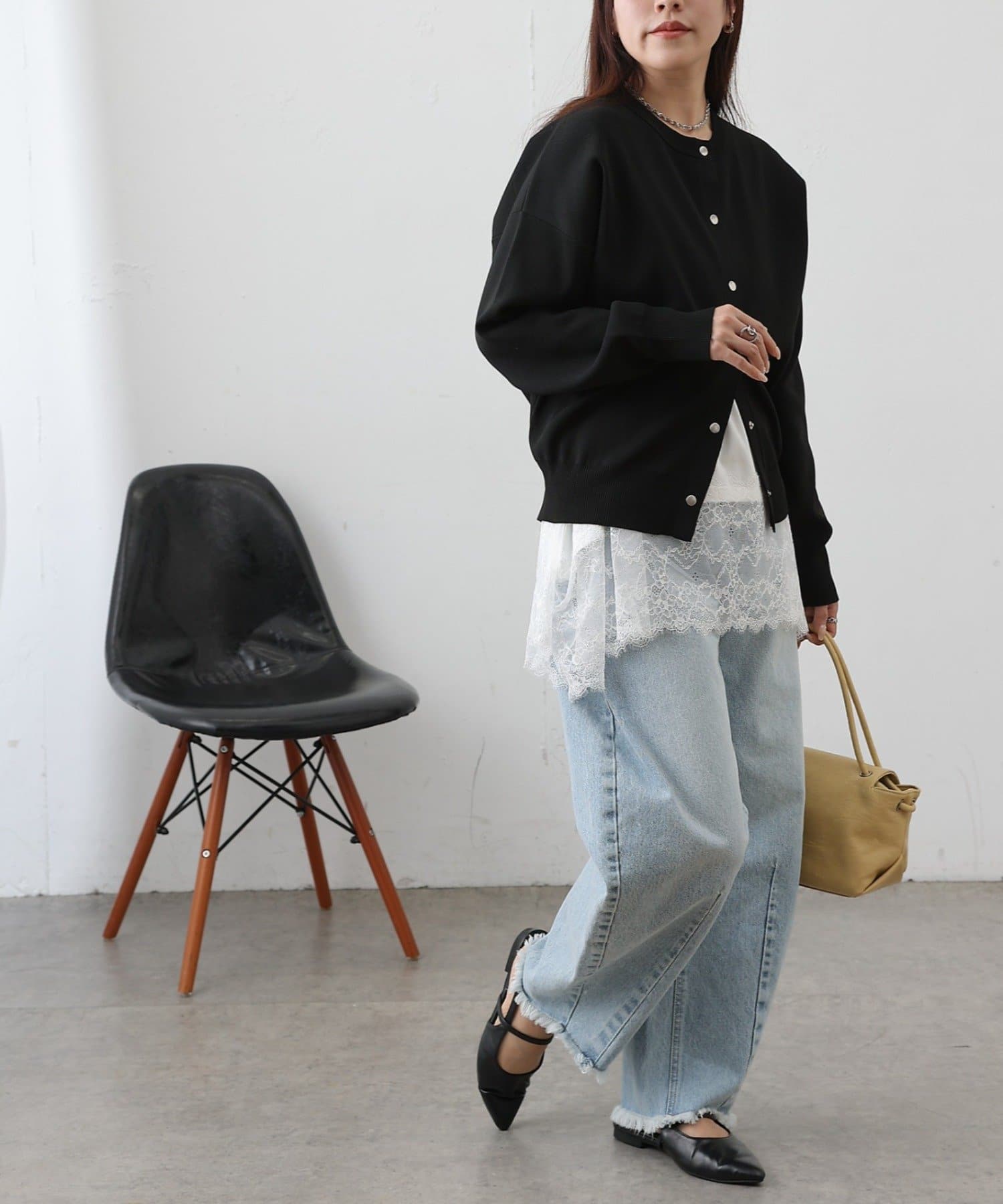 着用スタッフ:160cm 着用サイズ:FREE カラー:ブラック