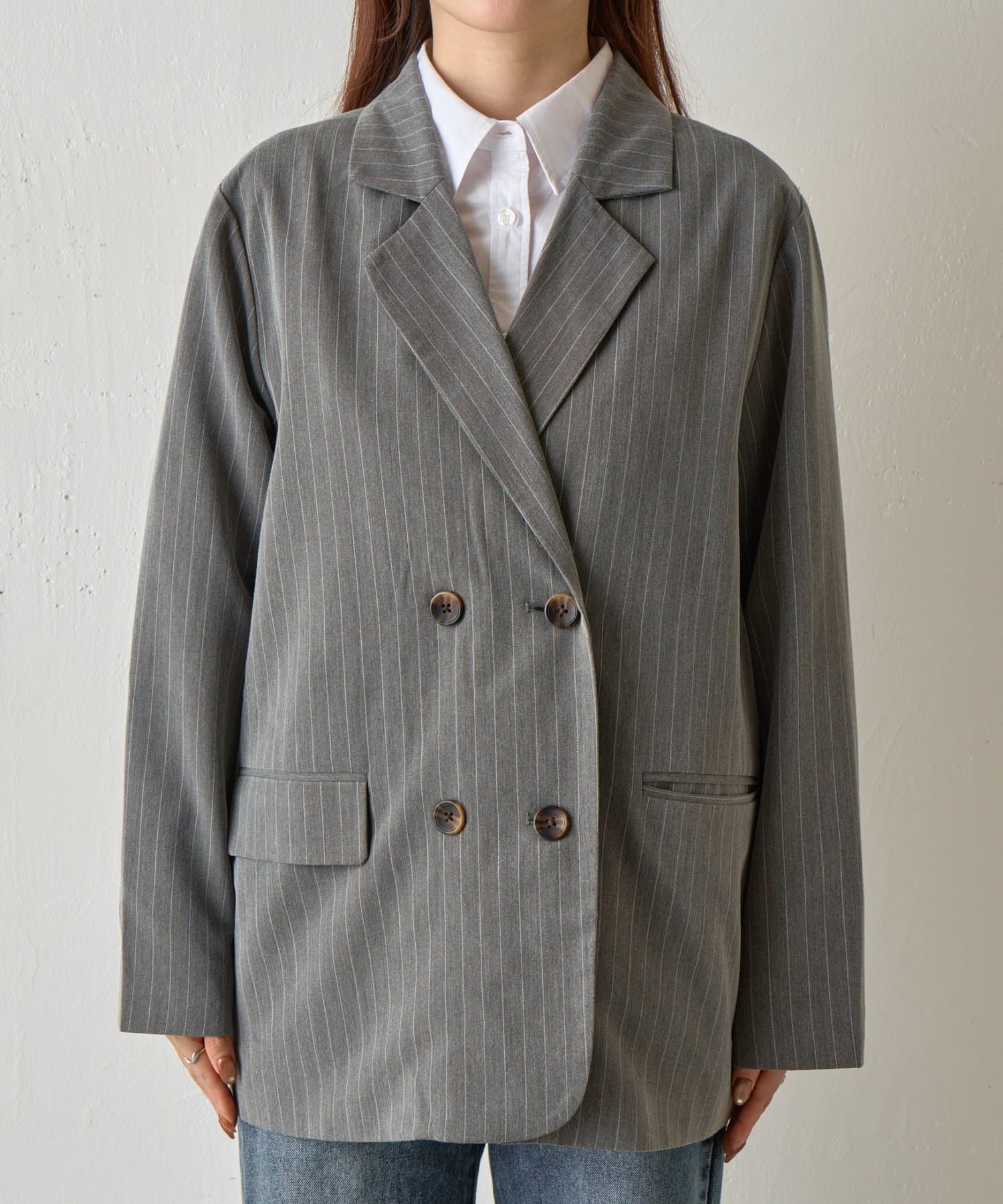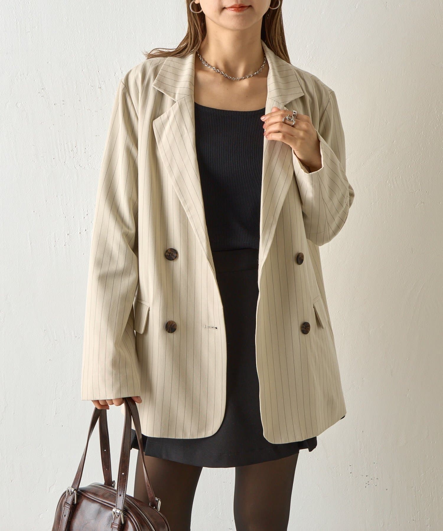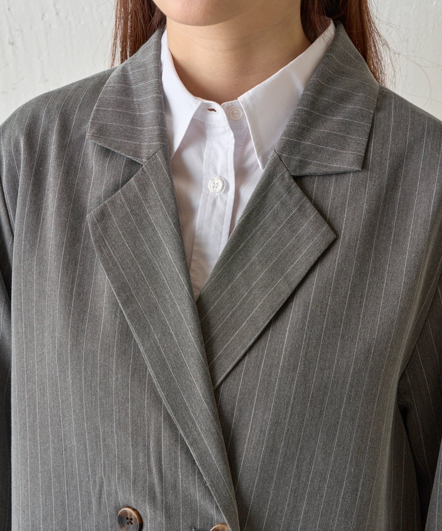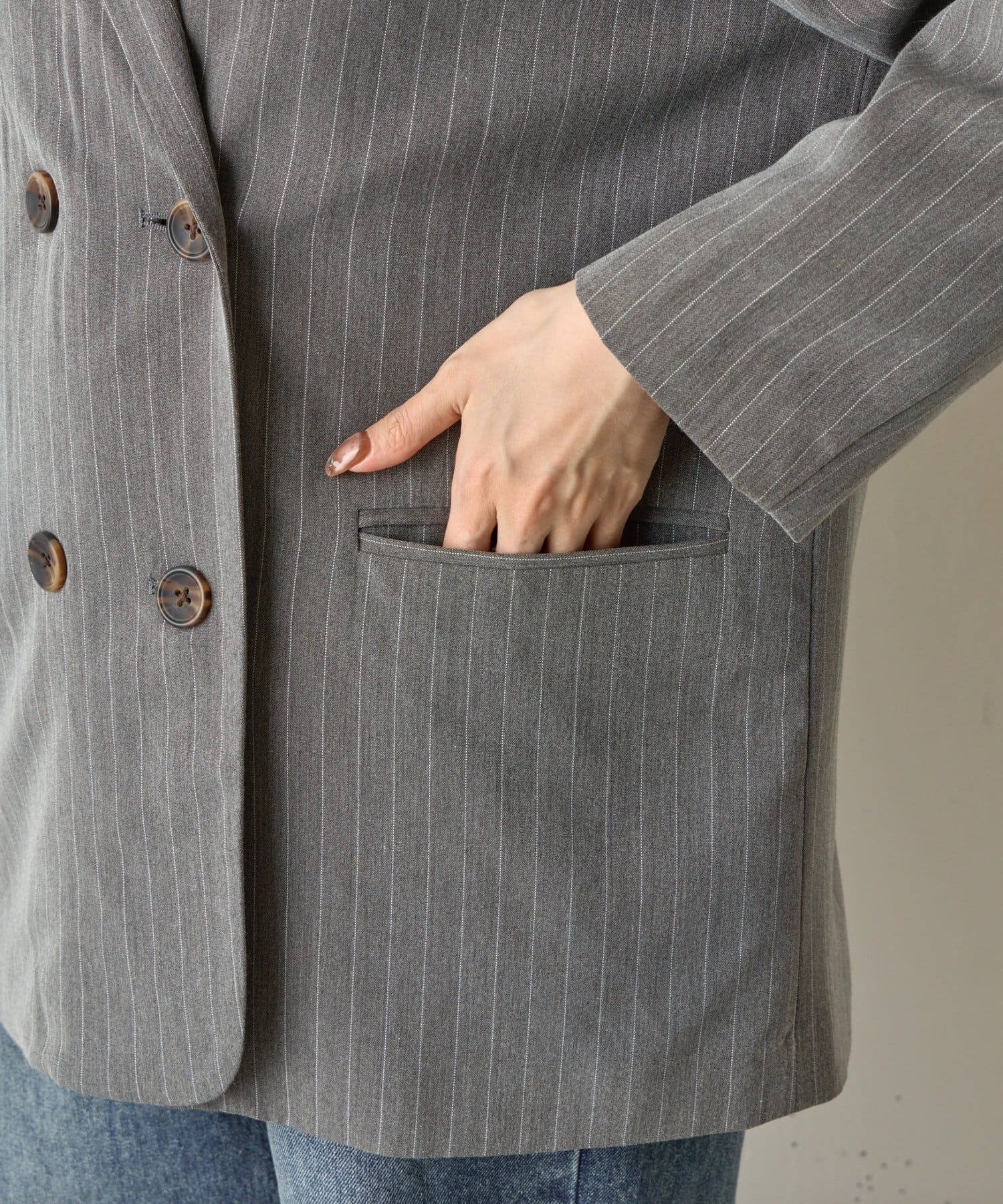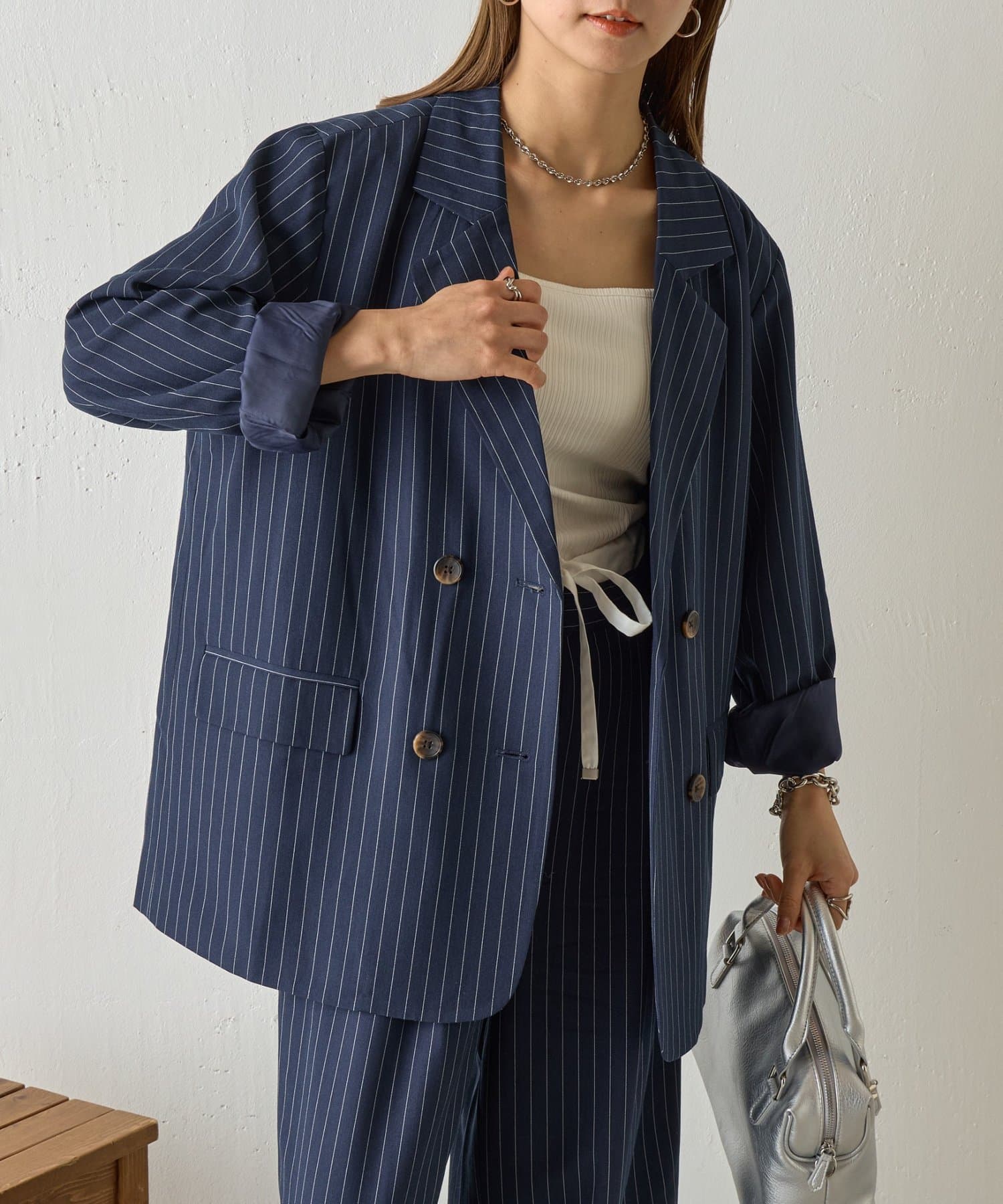 【セットアップ対応】ストライプダブルテーラードジャケット