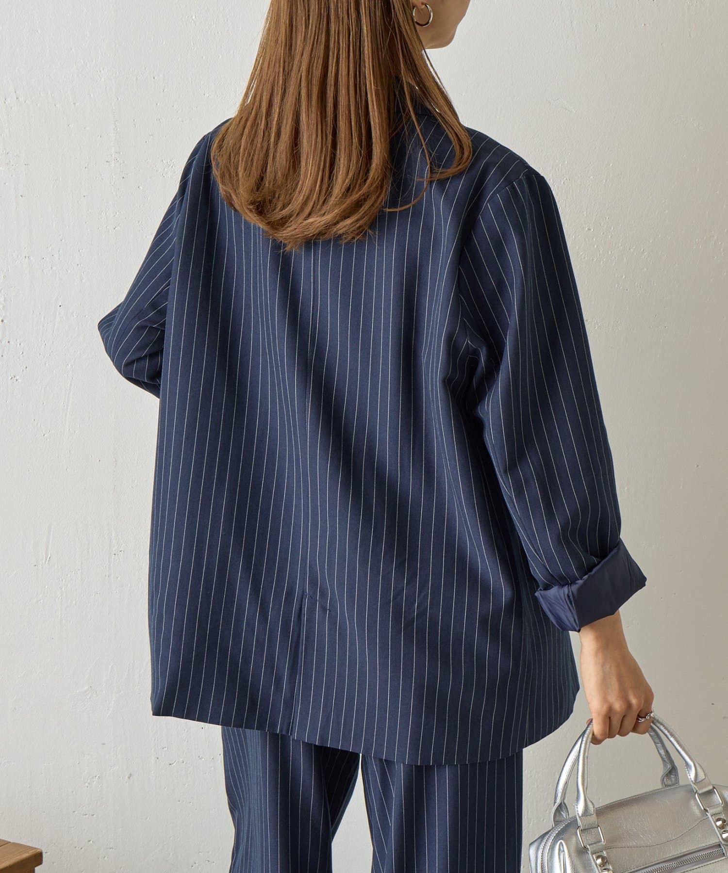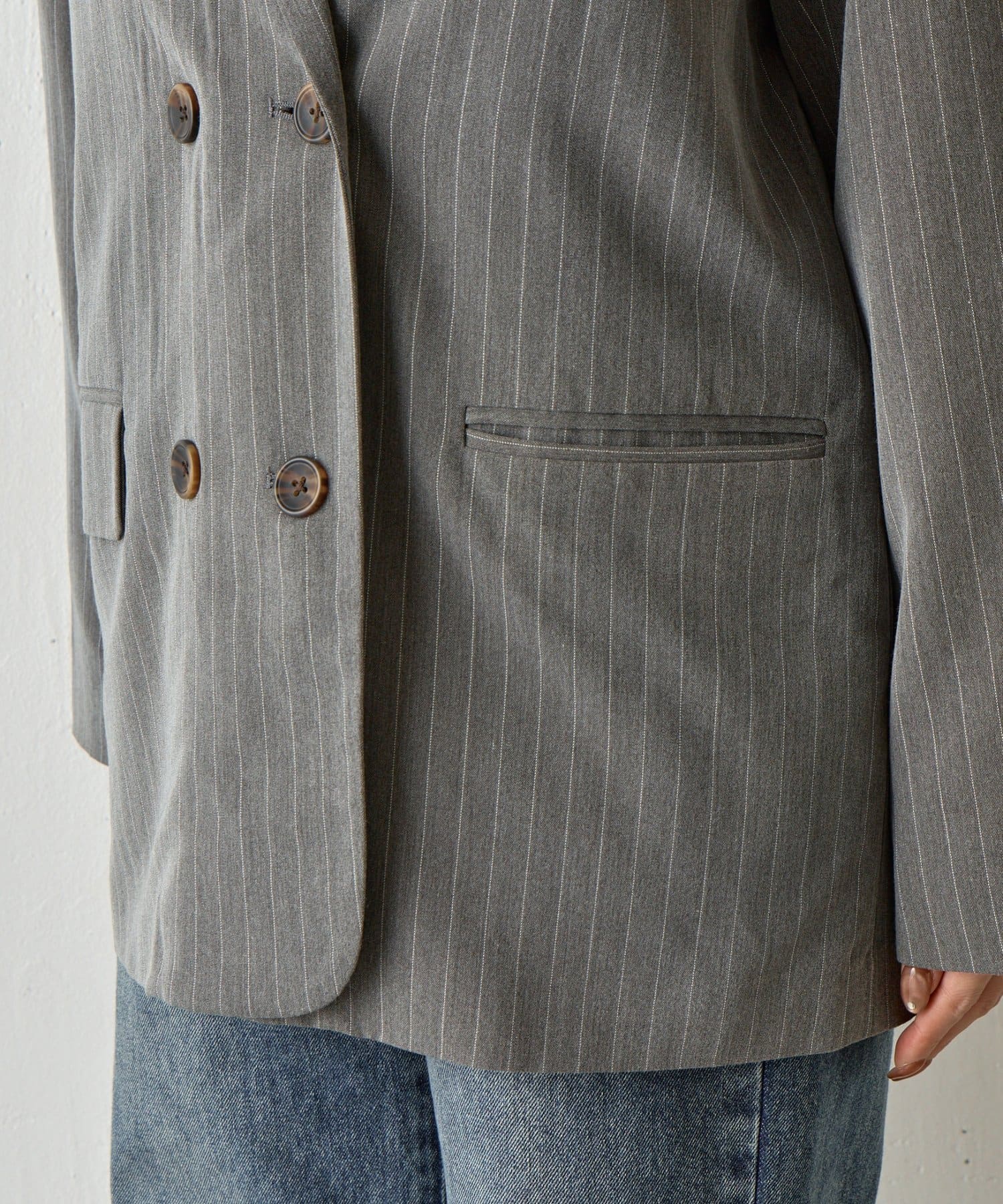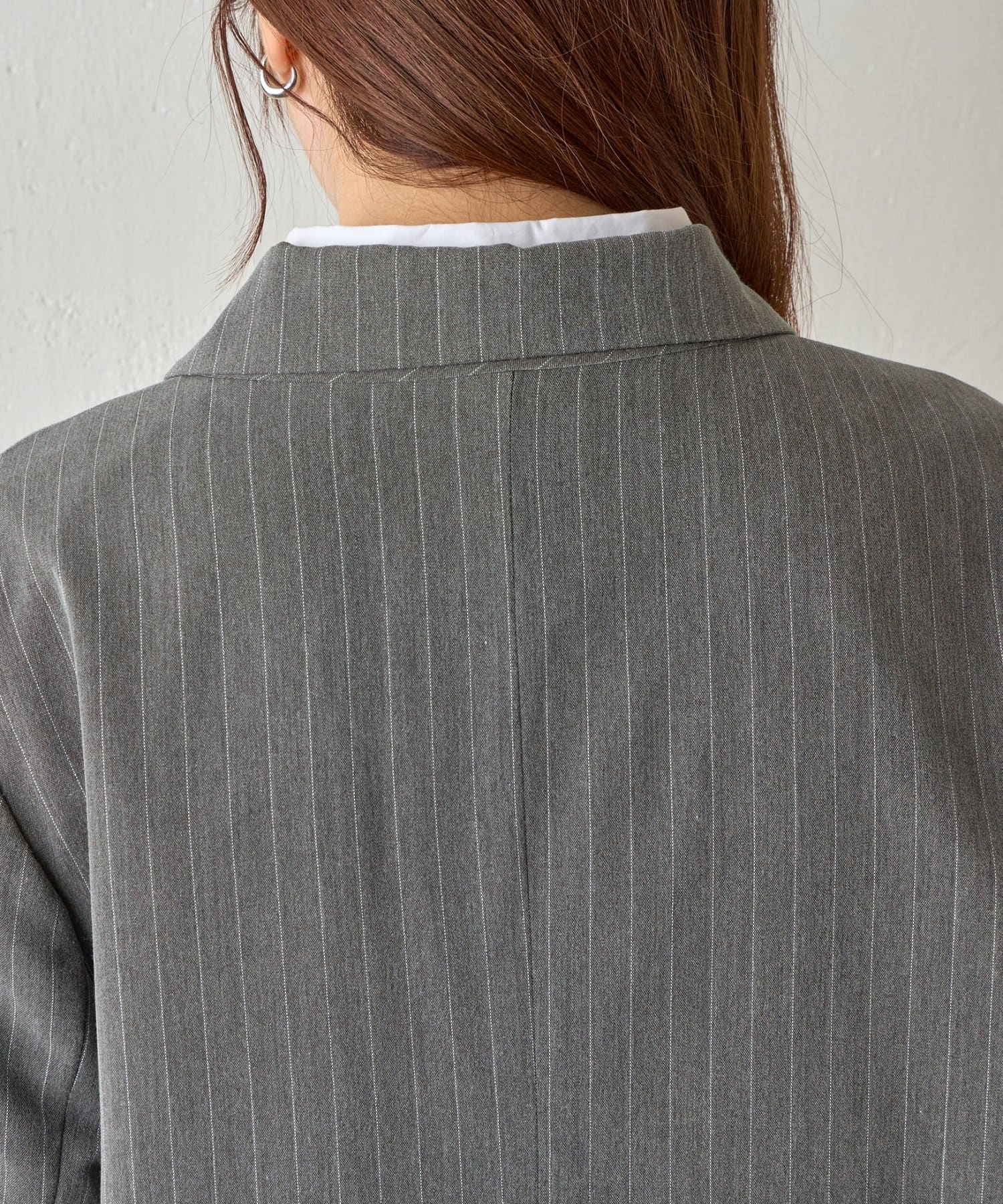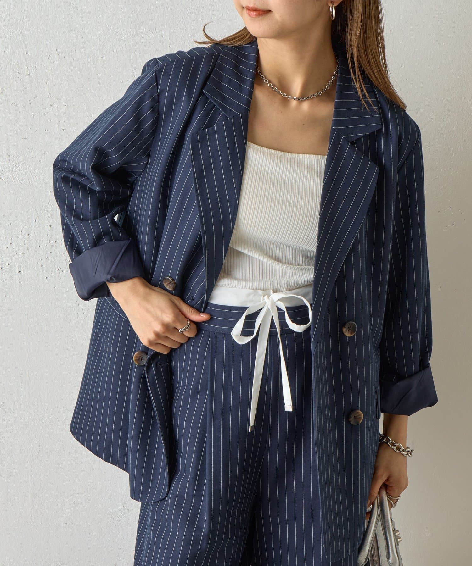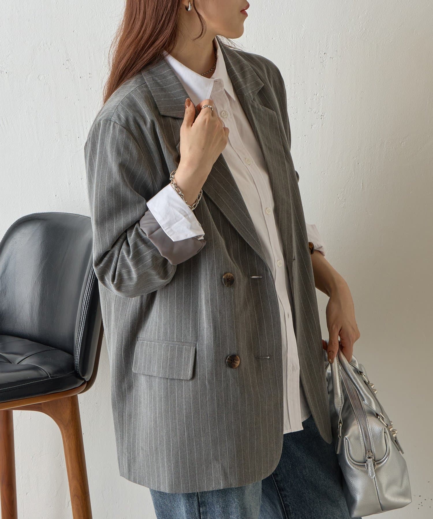 【セットアップ対応】ストライプダブルテーラードジャケット