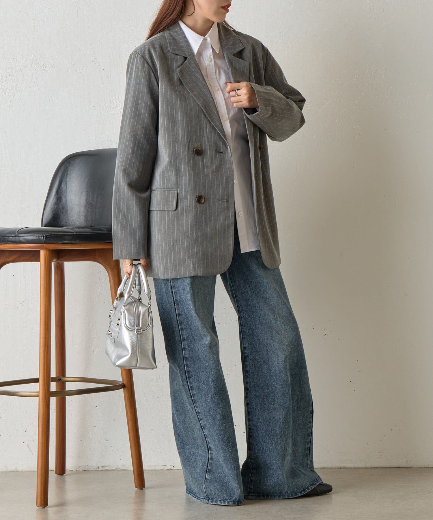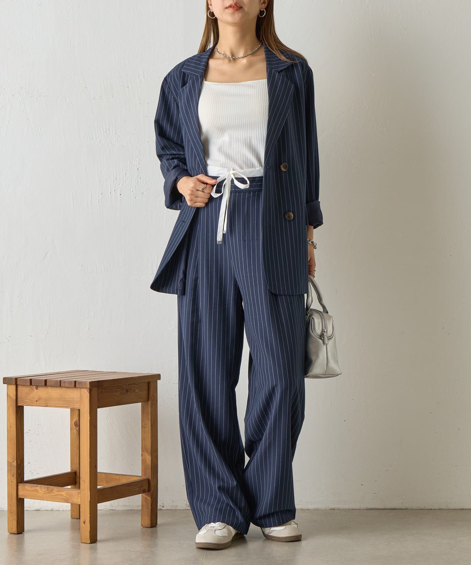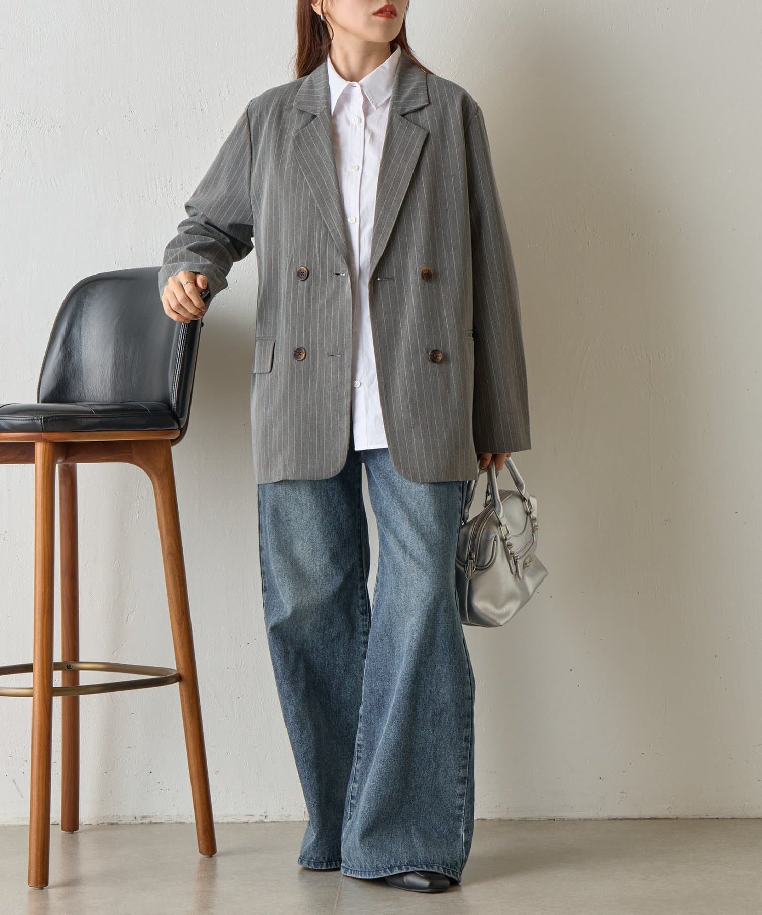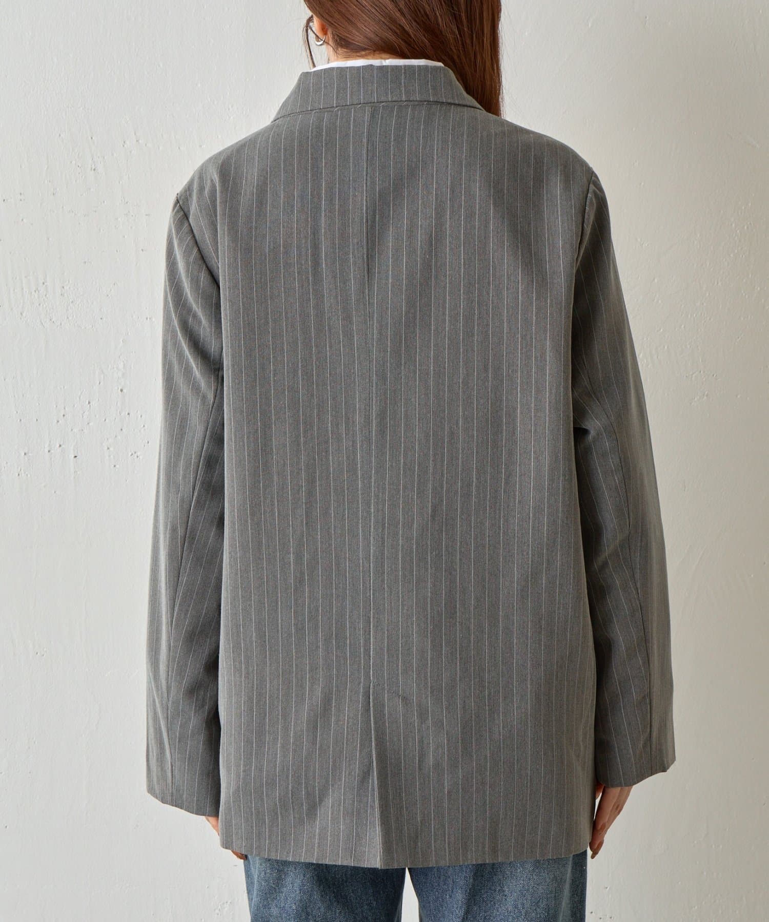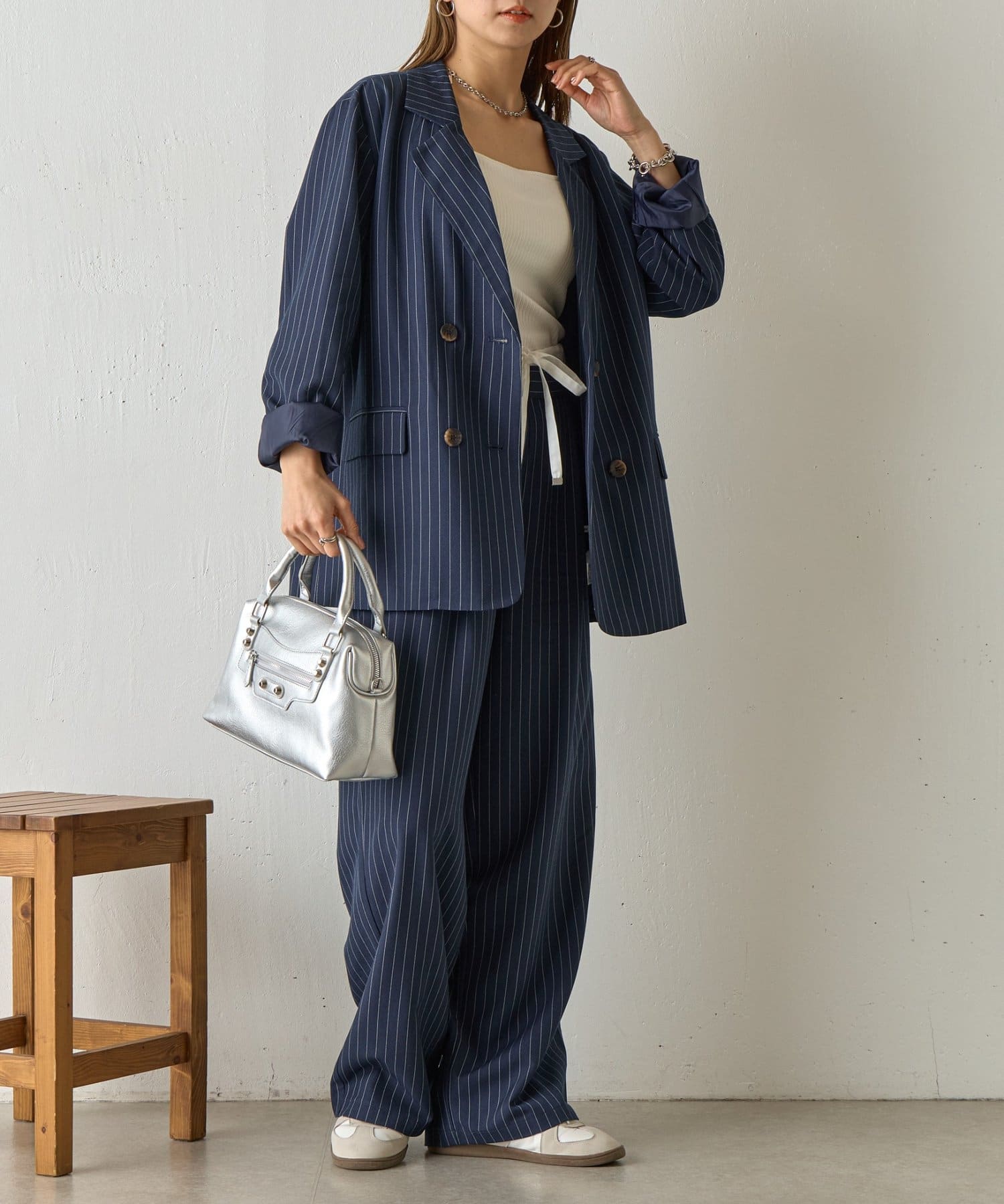 【セットアップ対応】ストライプダブルテーラードジャケット