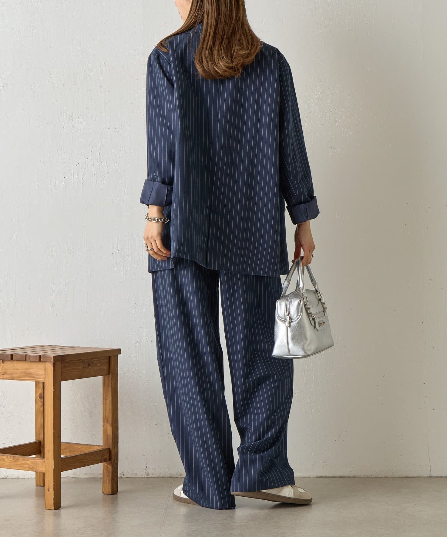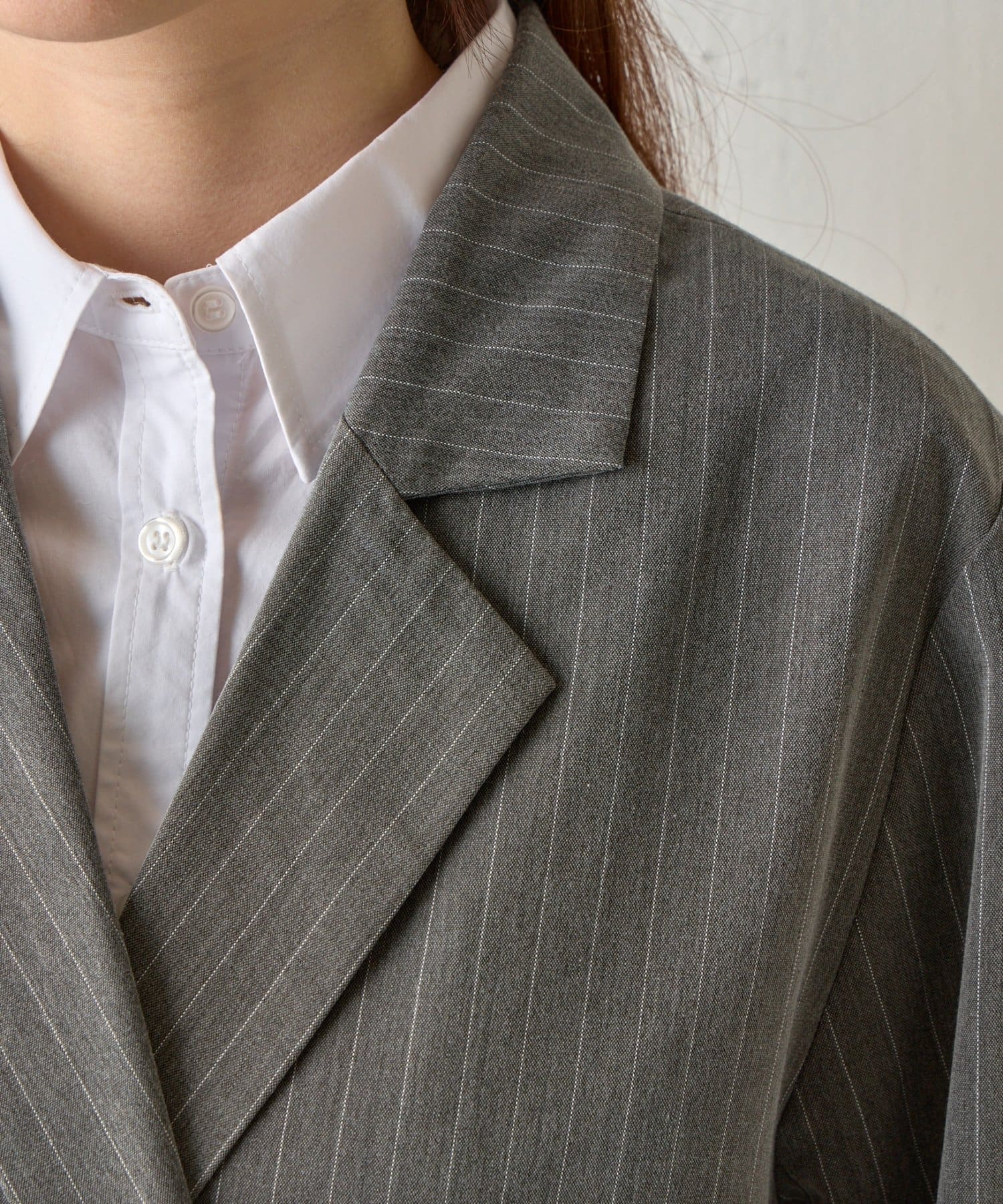 縦のラインを強調するストライプが自然とスタイルアップを叶え、着るだけで“きちんと感”と“こなれ感”を両立してくれるテーラードジャケット。