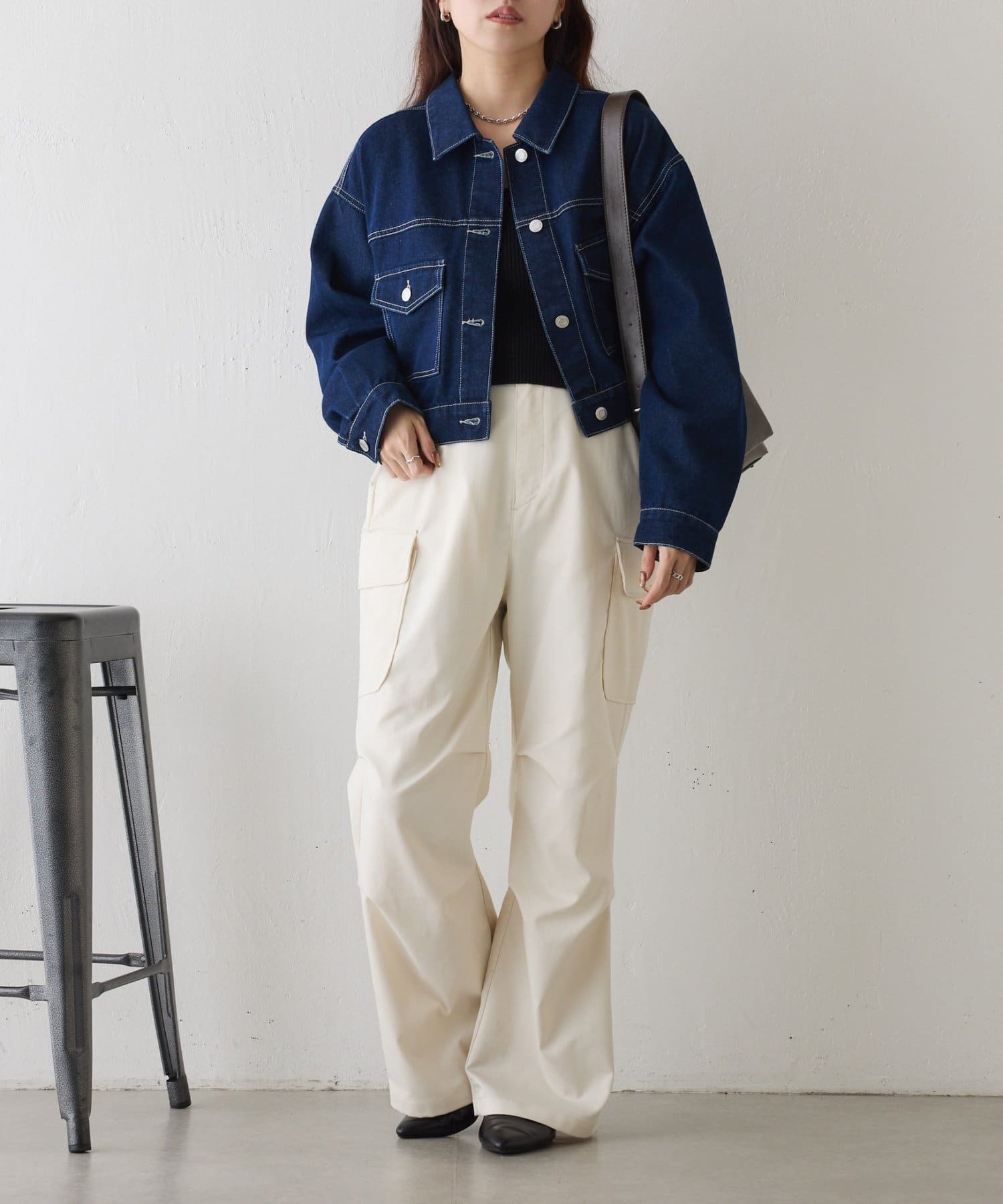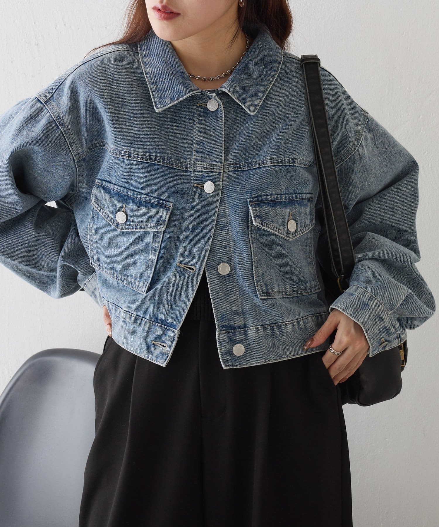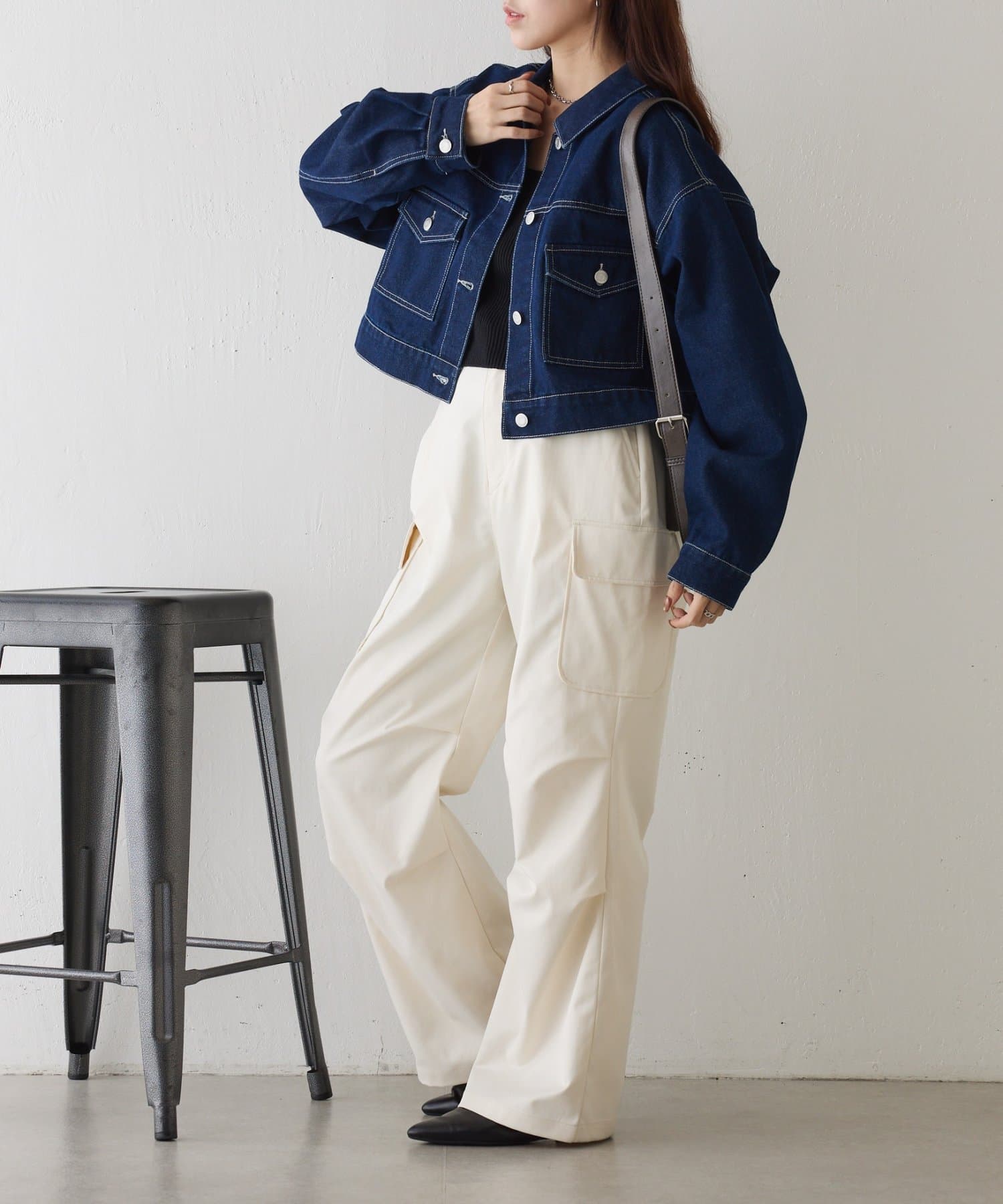 大きめポケットとショート丈デザインで、視線に視線を上にあげてスタイルアップ効果抜群のGジャンです。
