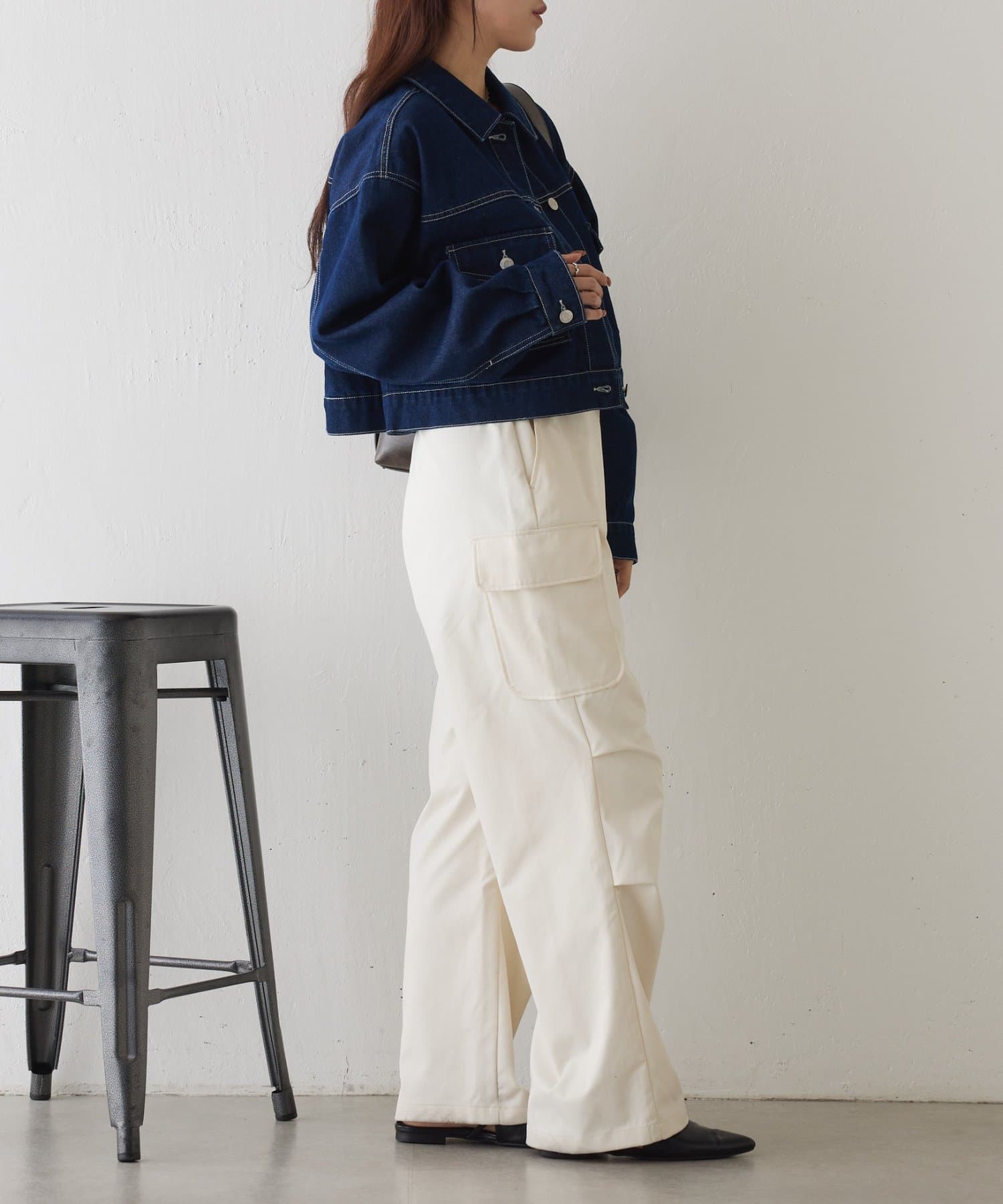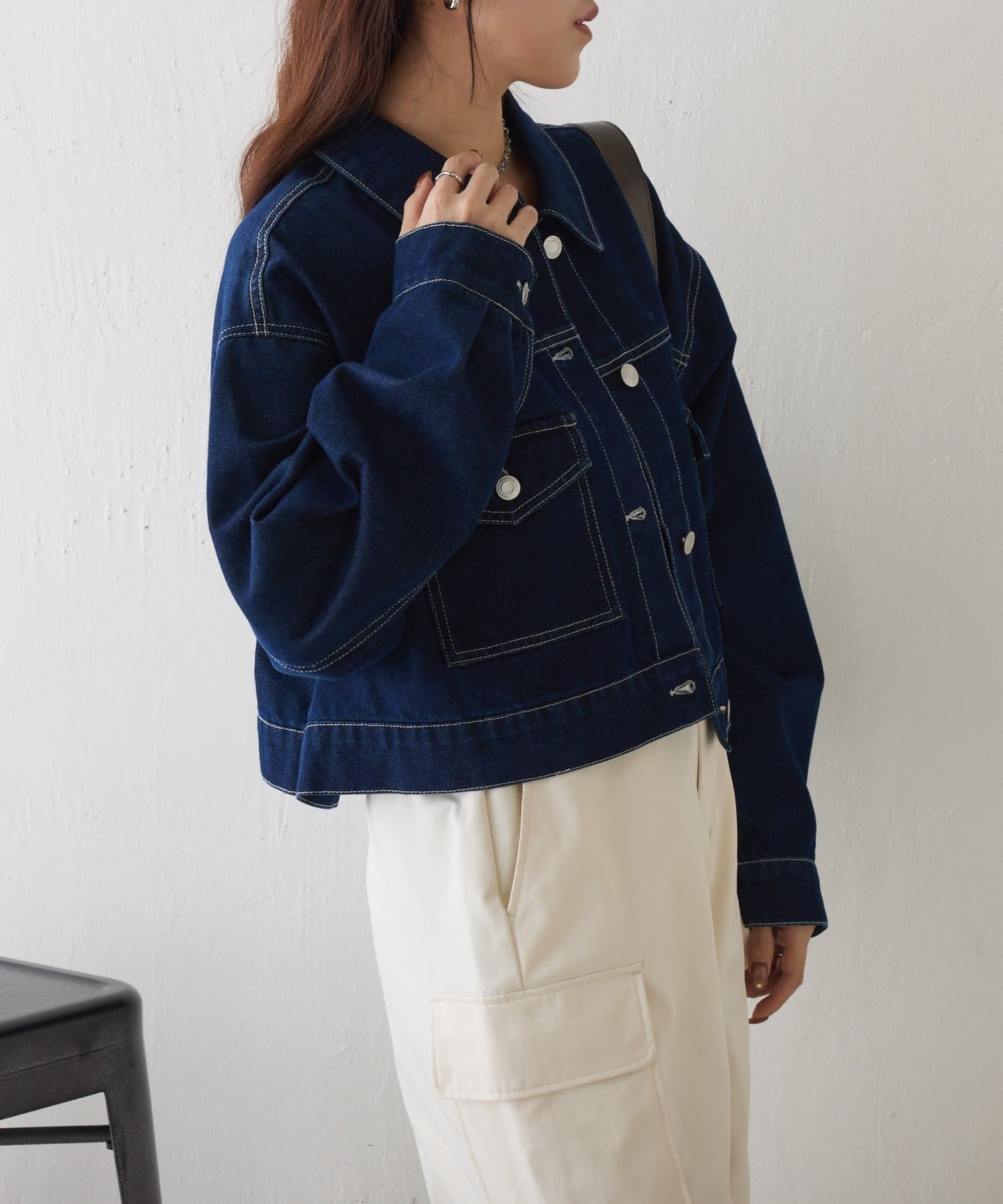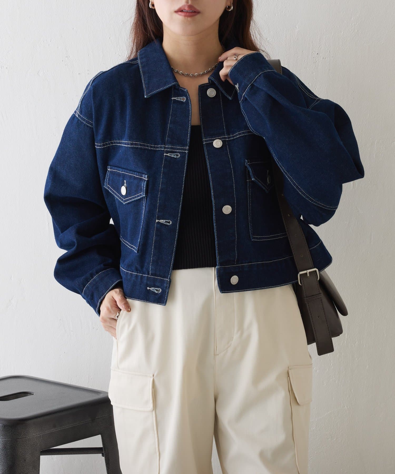 大きめポケットとショート丈デザインで、視線に視線を上にあげてスタイルアップ効果抜群のGジャンです。