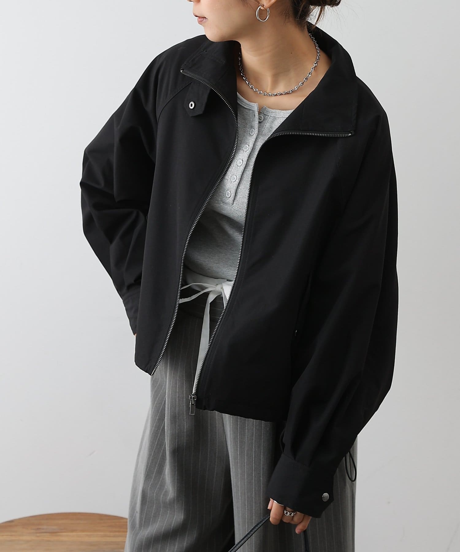 裾ドロストZIPブルゾン