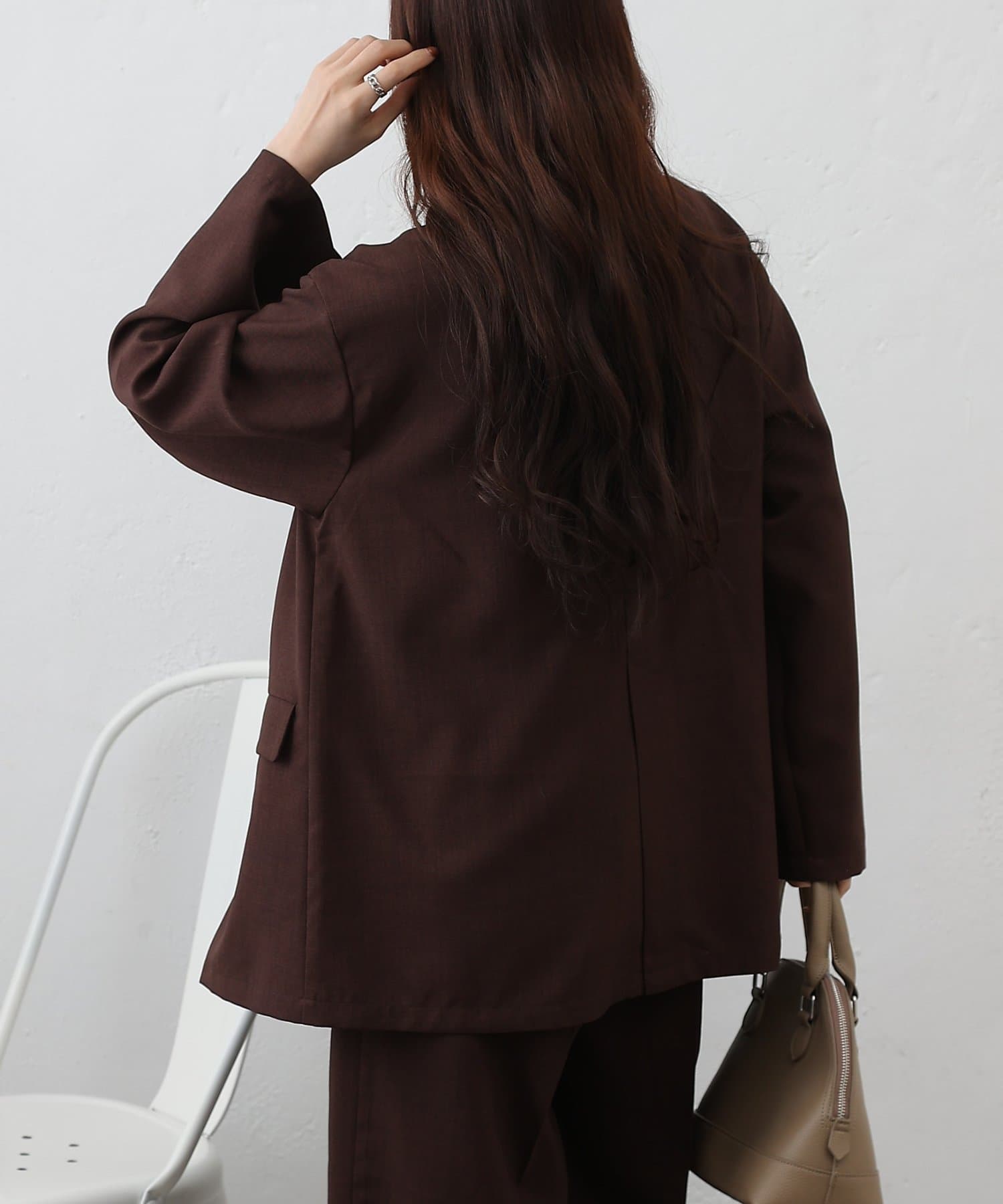 同素材のパンツと合わせたセットアップスタイルもおすすめで、オンオフ問わず活躍する万能ジャケットです。