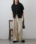 バランスよく配置したポルカドット柄がポイントのイージーパンツです。