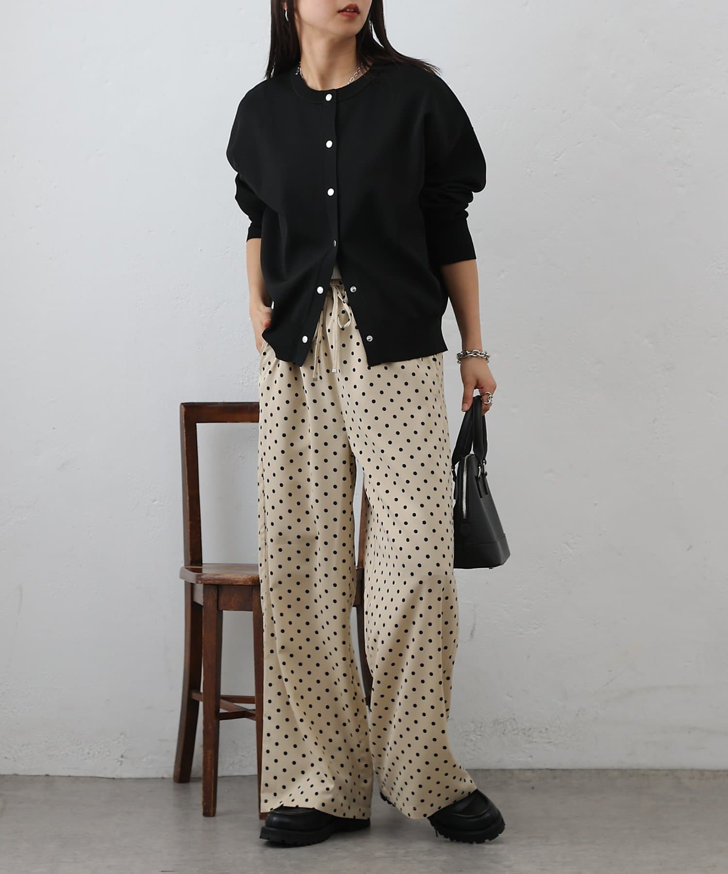 【合わせるだけでコーデが決まるドット柄イージーパンツ】