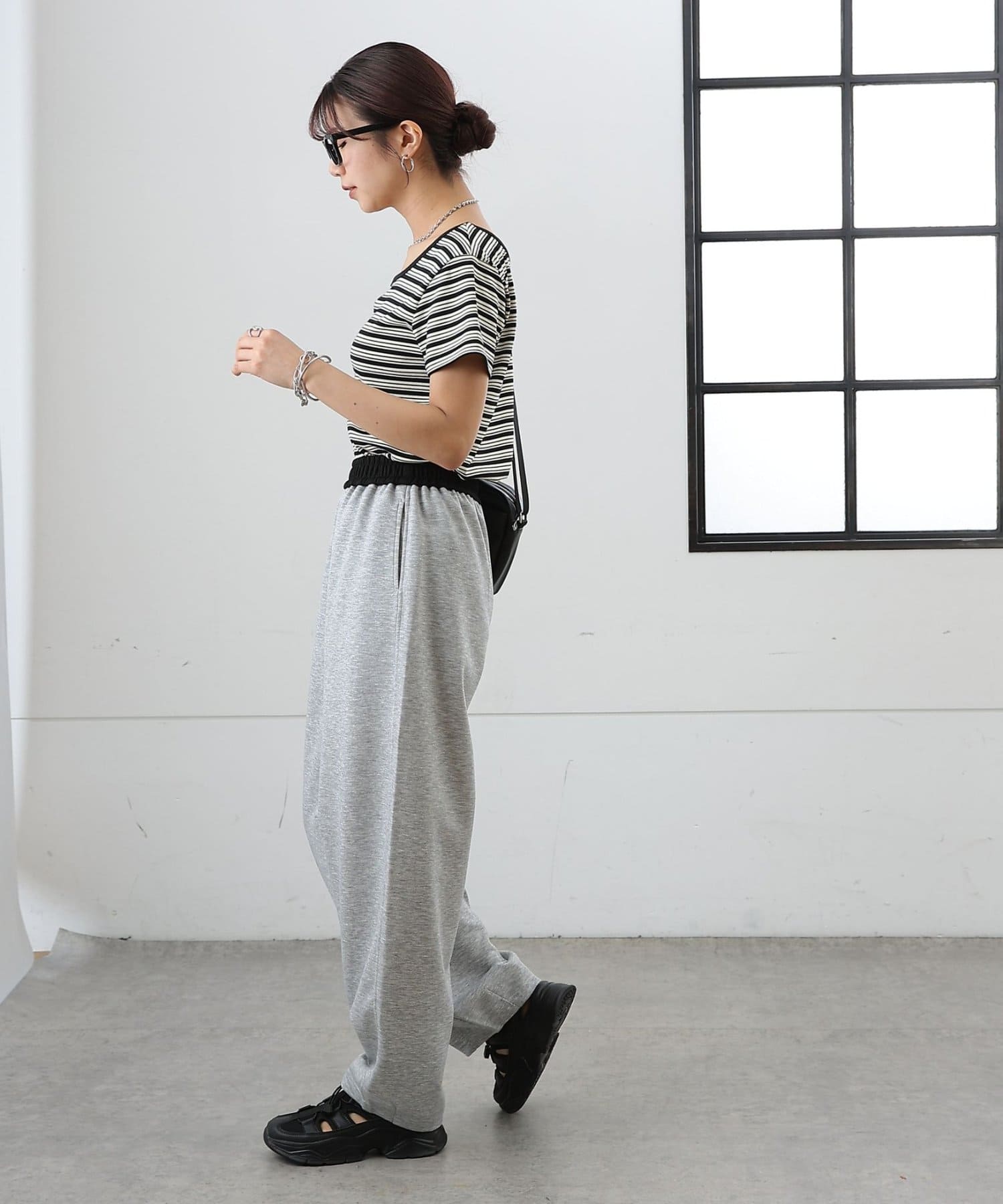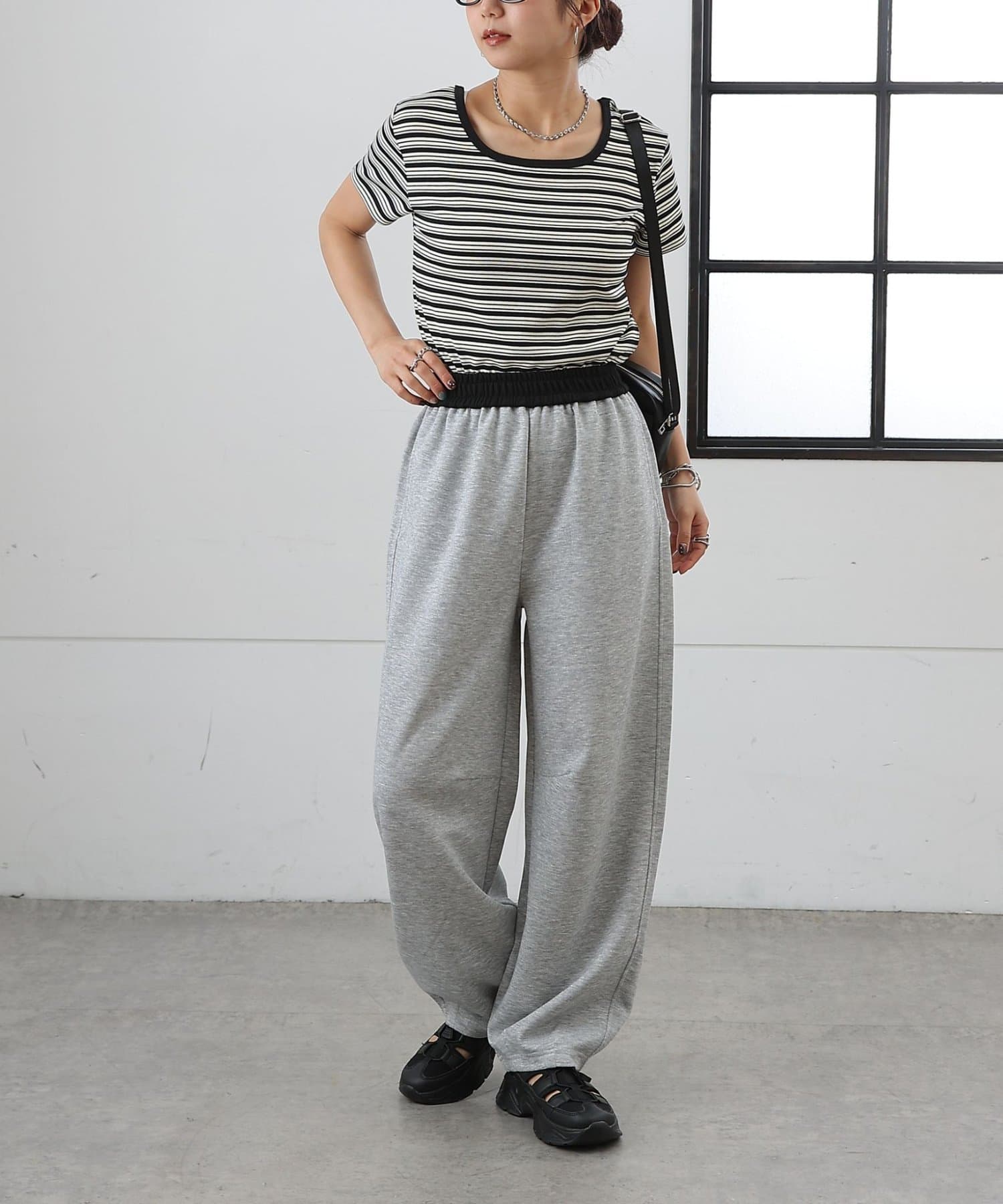 スエットでラフスタイルはもちろん、ジャケットと合わせてキレイめにも、ブラウスと合わせてかわいくも合わせやすく、