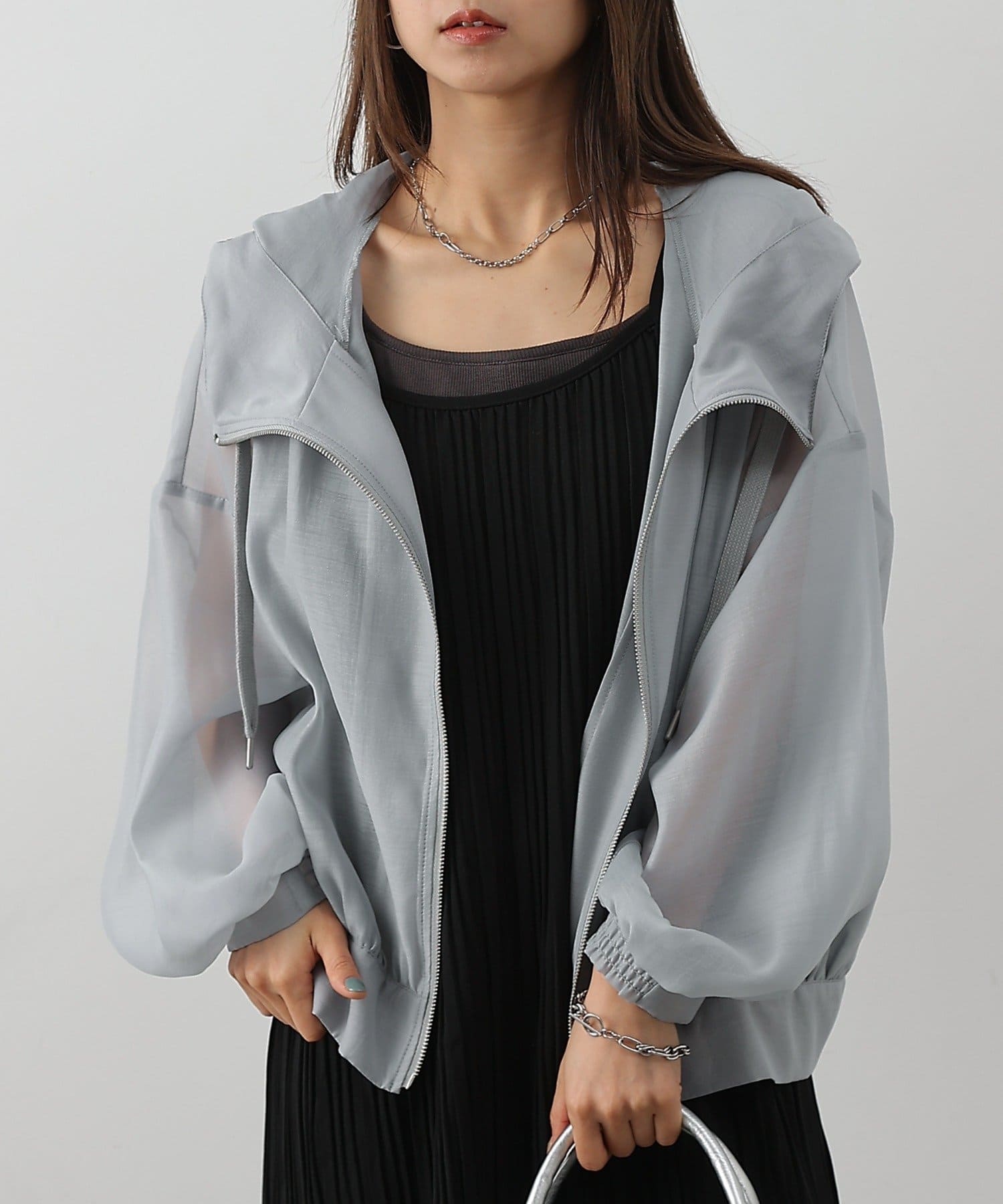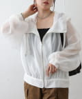 軽やかで透け感のあるエステルボイル素材を使用した、フード付きマウンテンパーカーです。