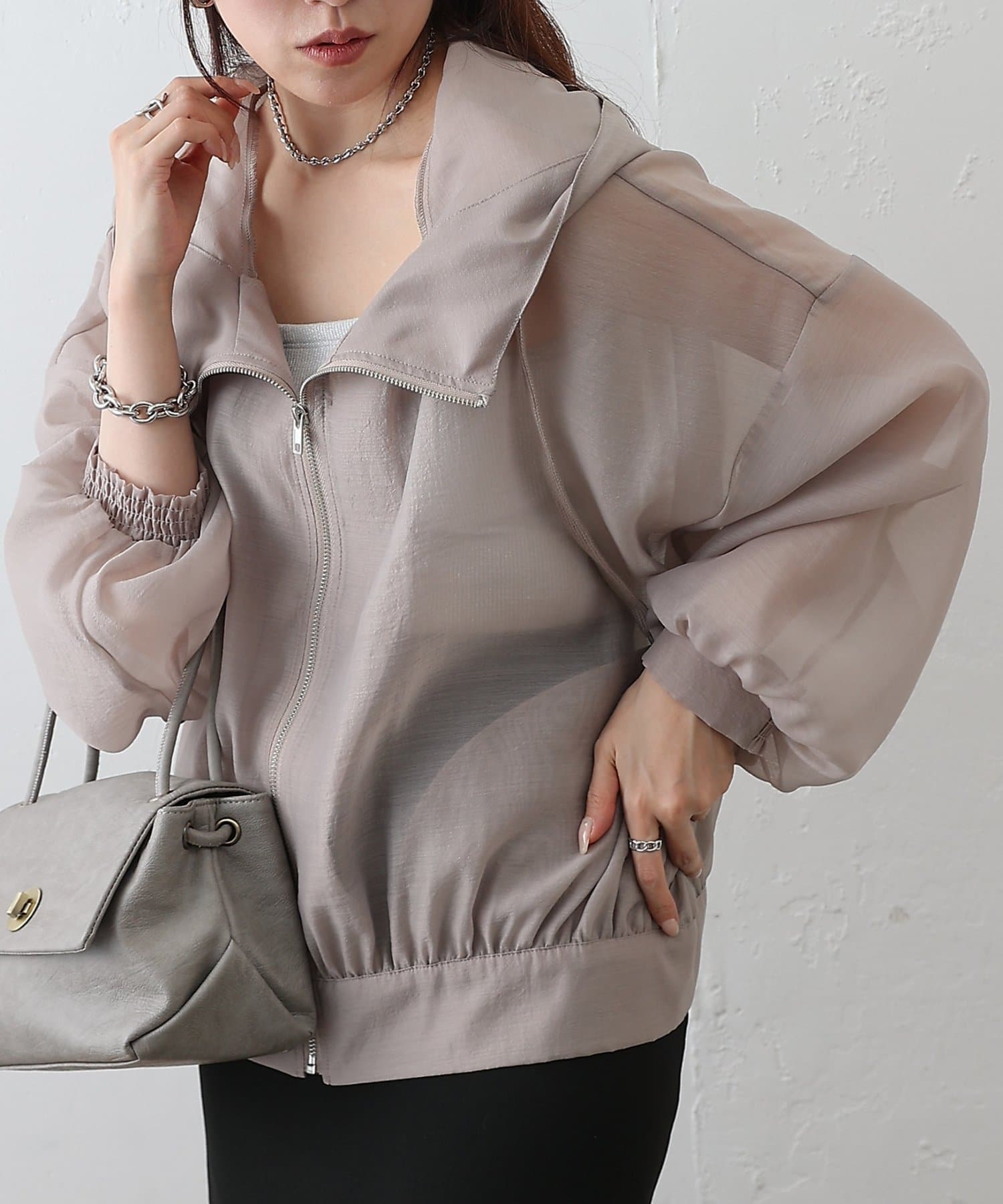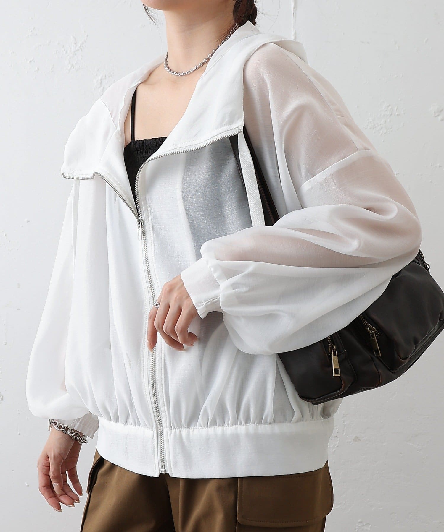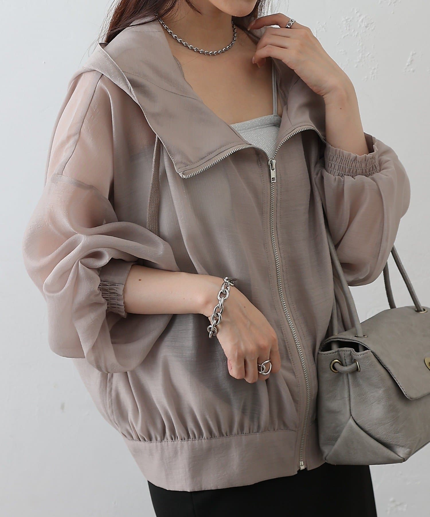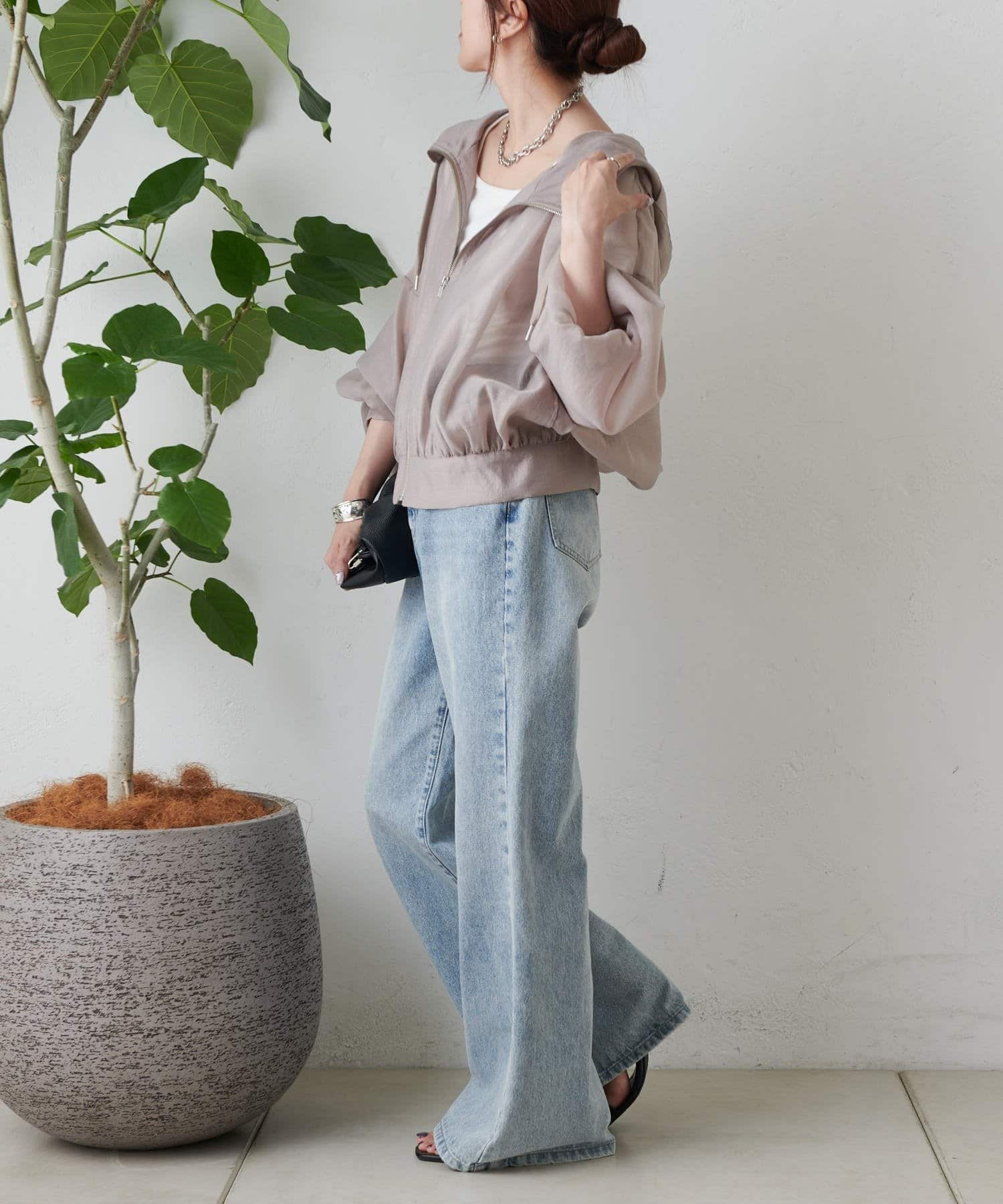 シアー素材ならではの抜け感が、カジュアルなマンパデザインを女性らしくアップデートします。