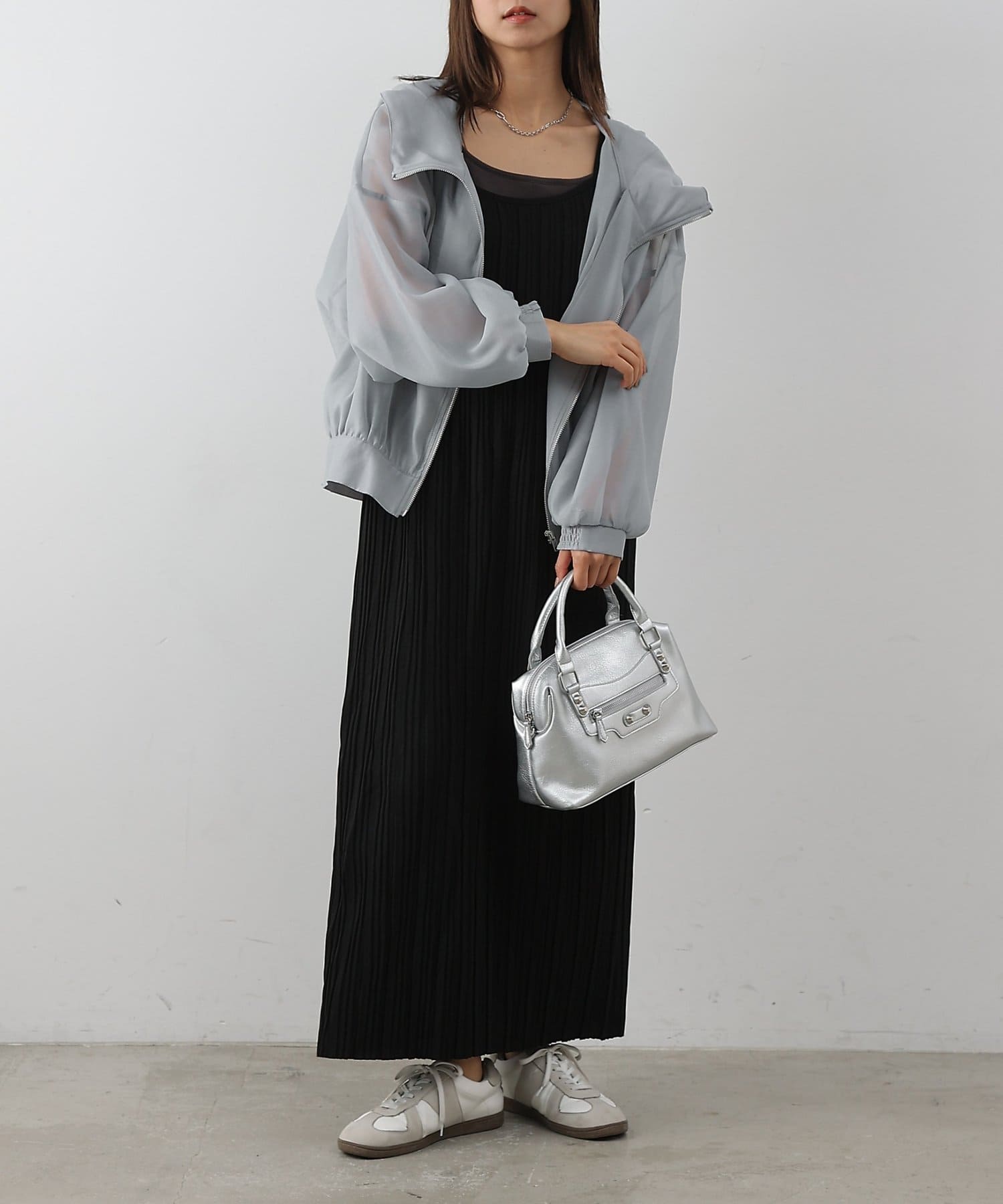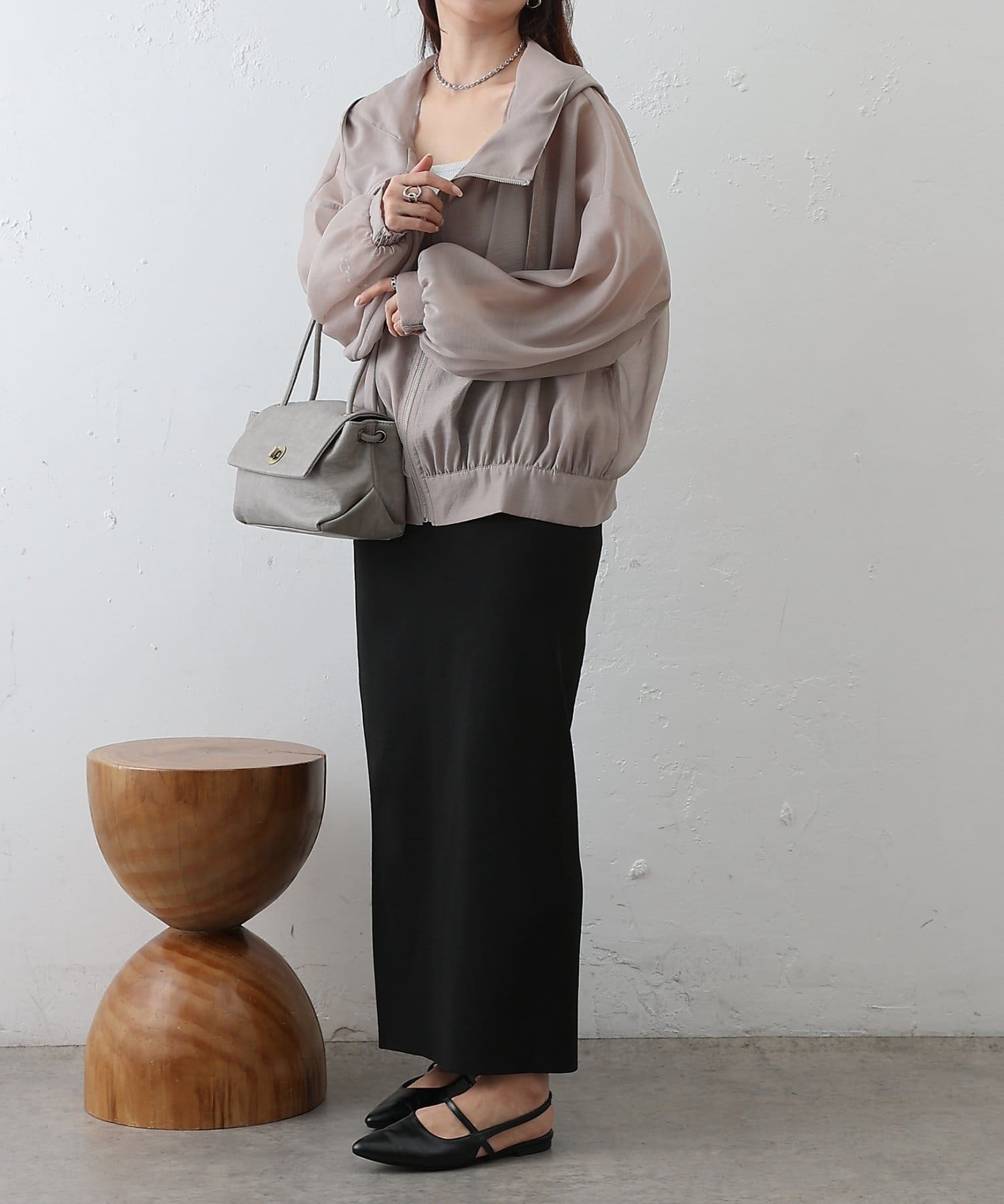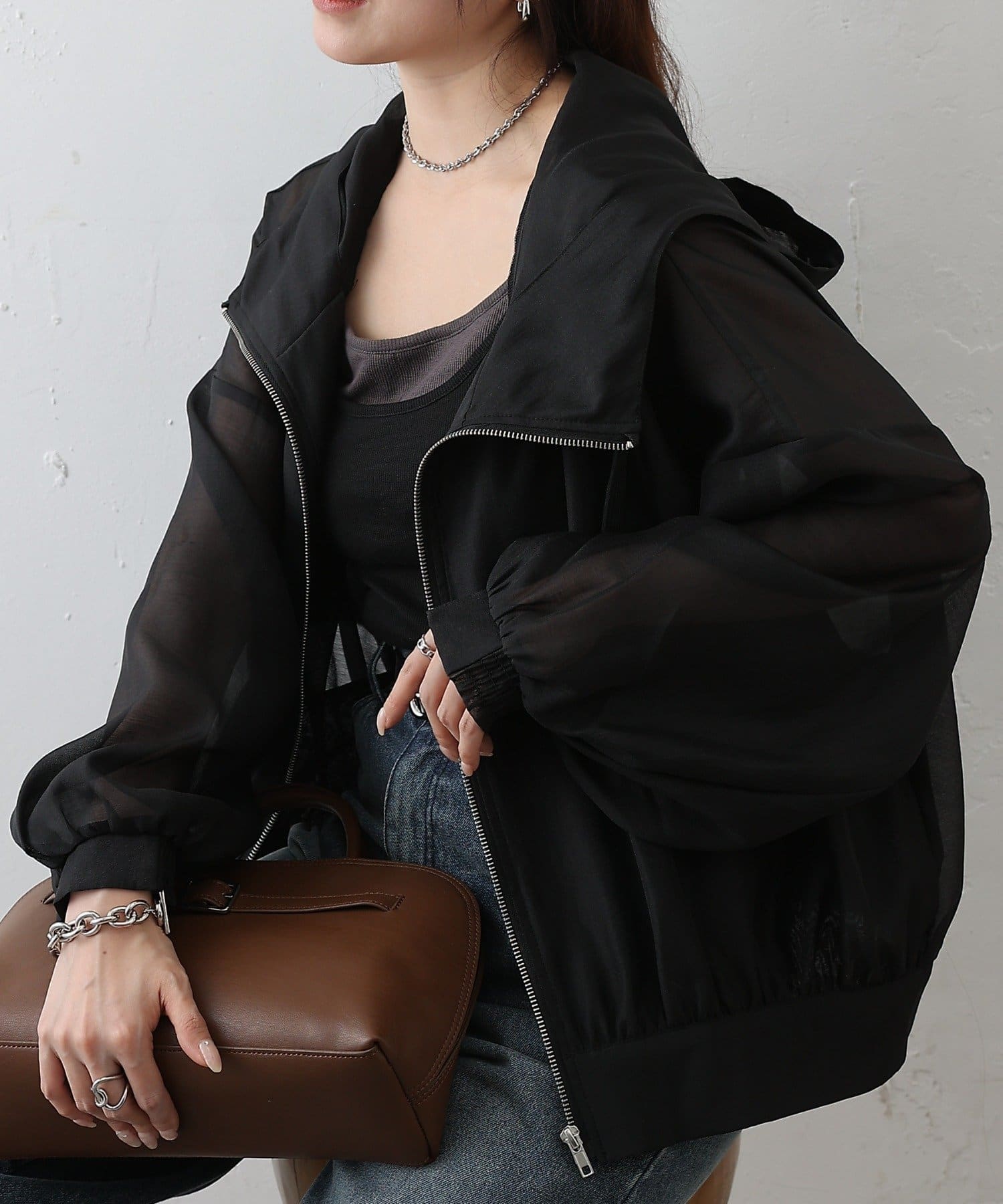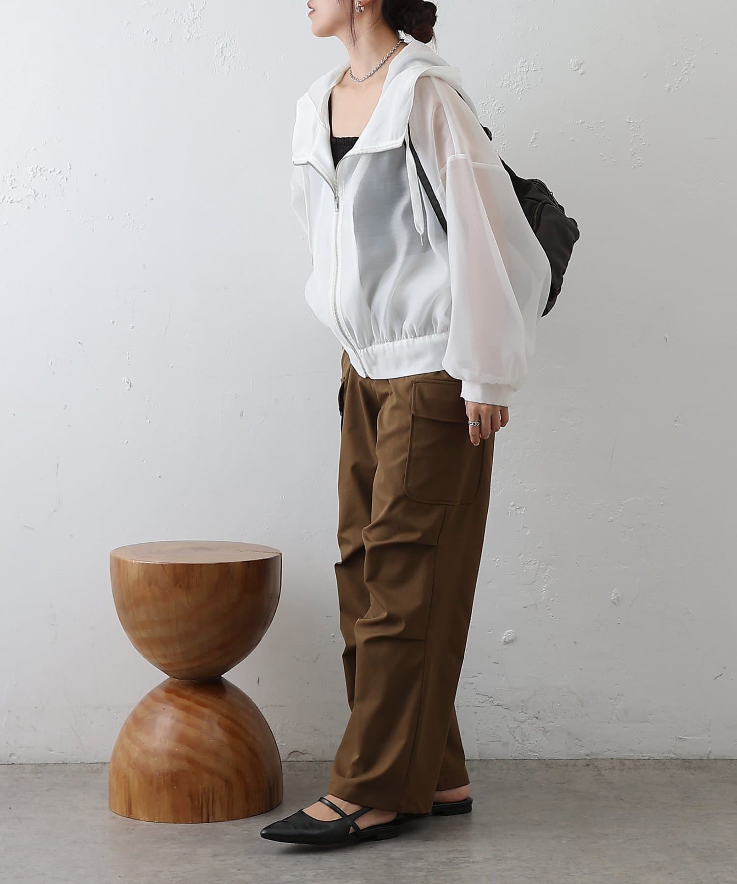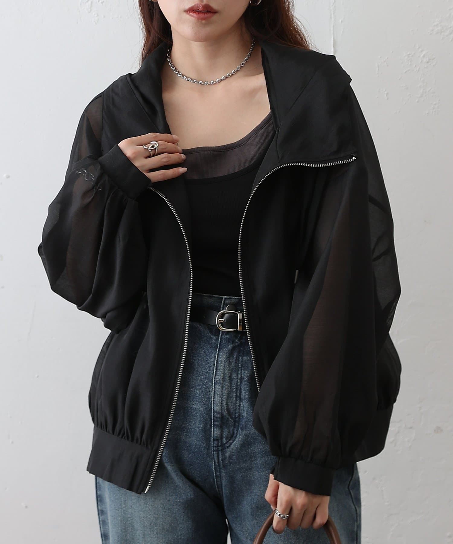 シアー素材ならではの抜け感が、カジュアルなマンパデザインを女性らしくアップデートします。