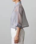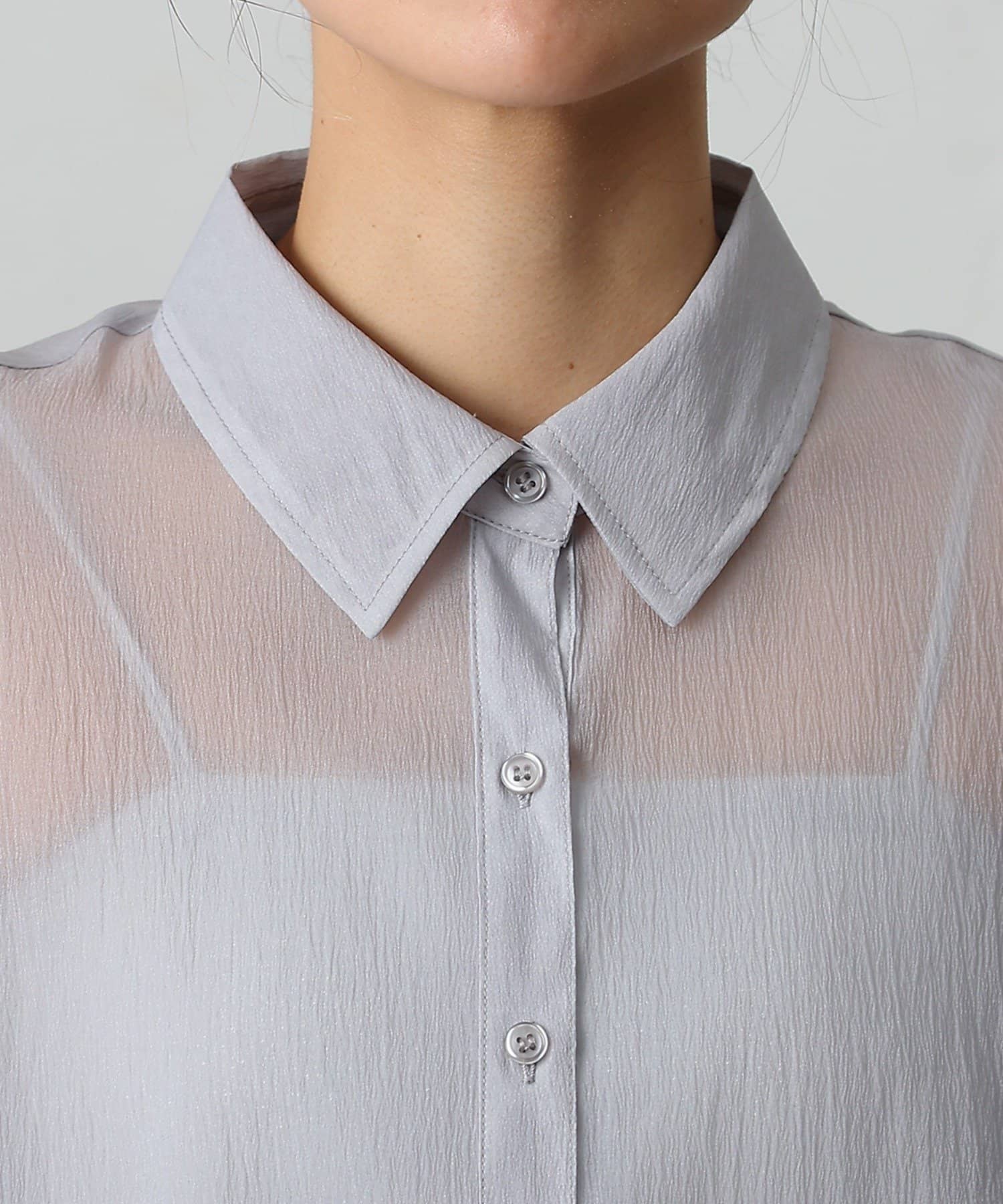 ほのかなシャリ感のある光沢と軽やかなシアー素材で仕立てたシアーシャツです。
