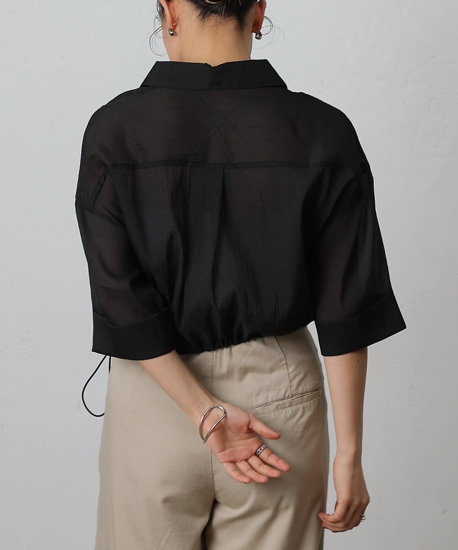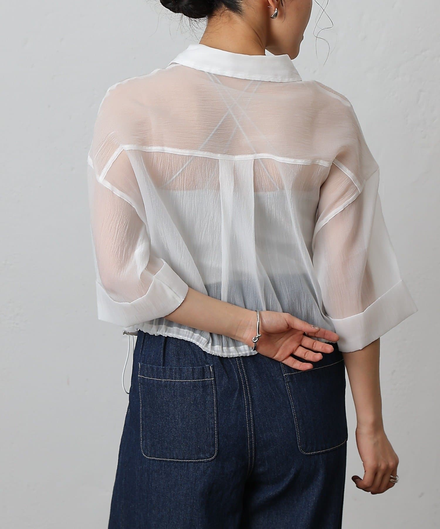 【リバイバル】シアー裾ドロストワイドスリーブシャツ