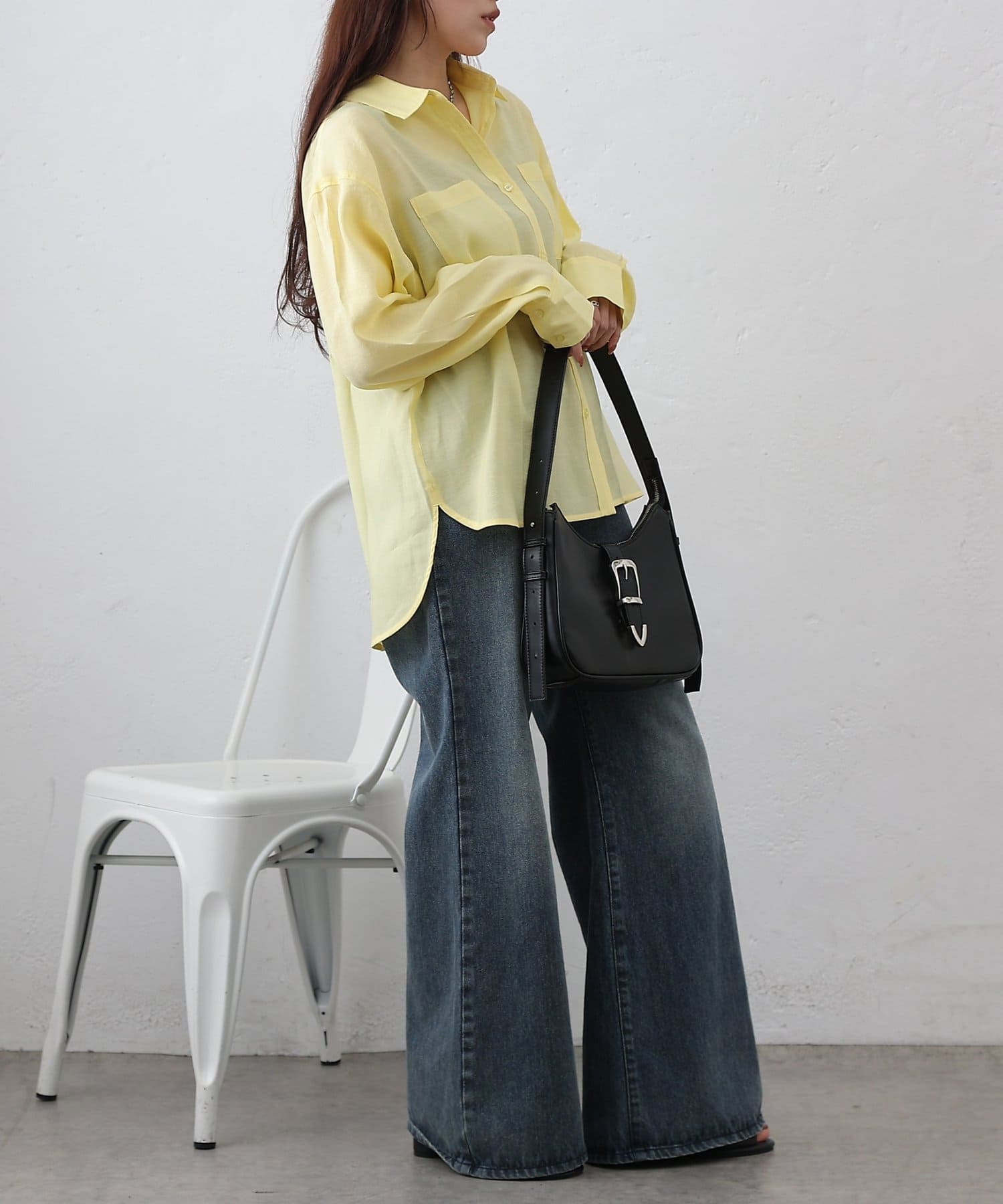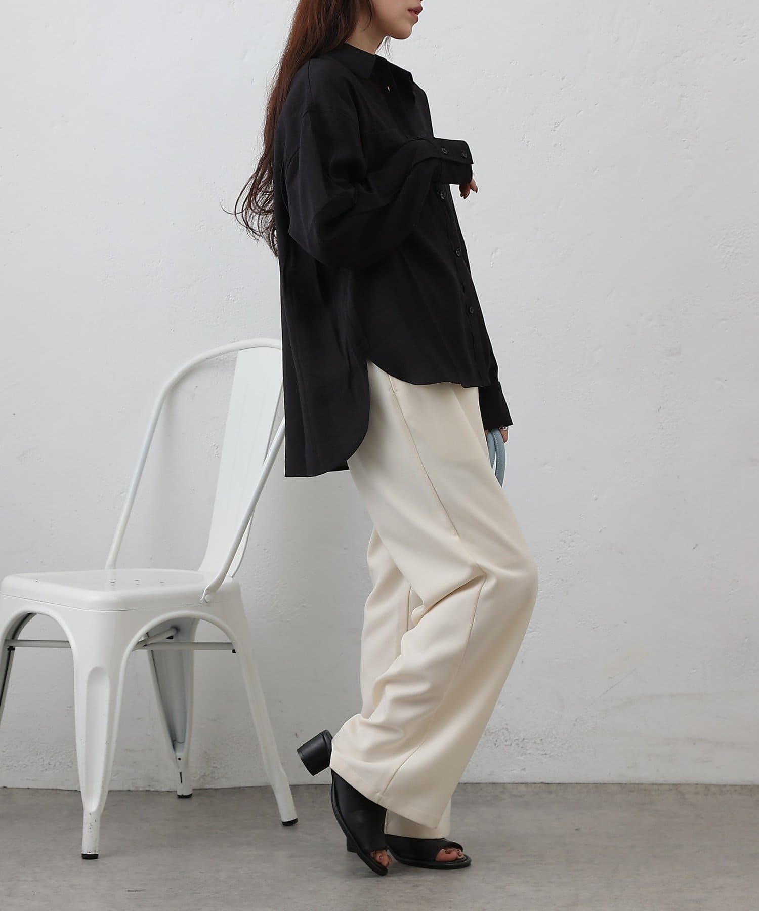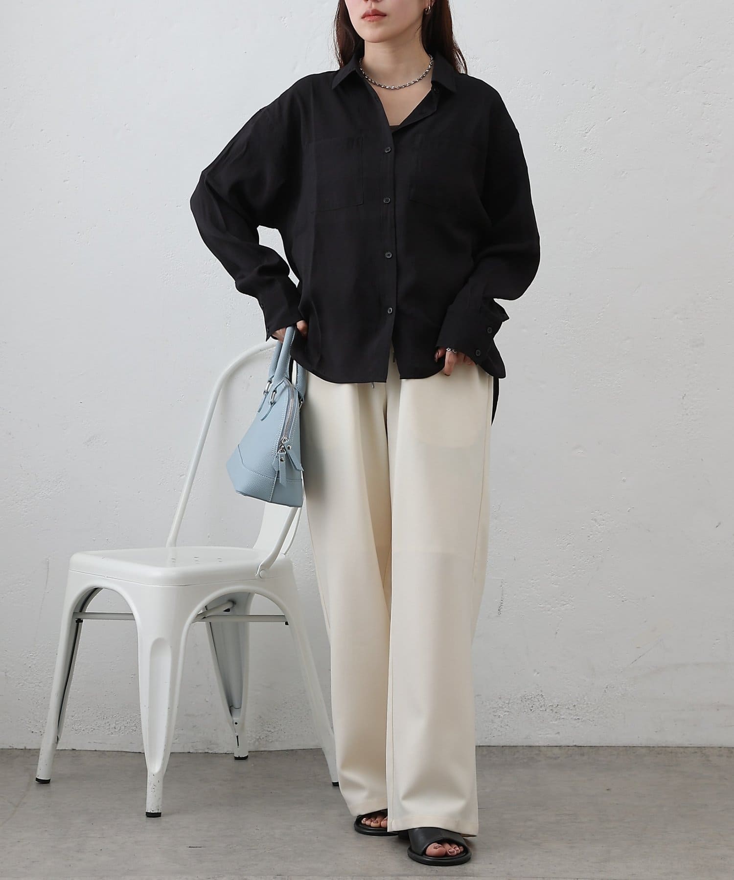 トップスとして着る際に、ボタンを上下1.2個ずつ開けてあげると抜け感が出て今年らしいコーディネートになります◎