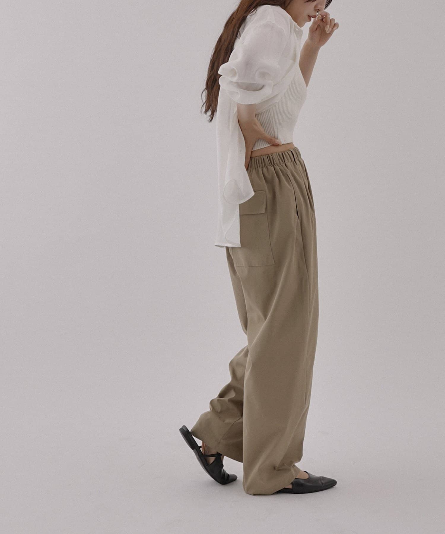 ポケットがアクセントになり、自然と視線を上にあげることでスタイルアップ効果もあるアイテムになっています。