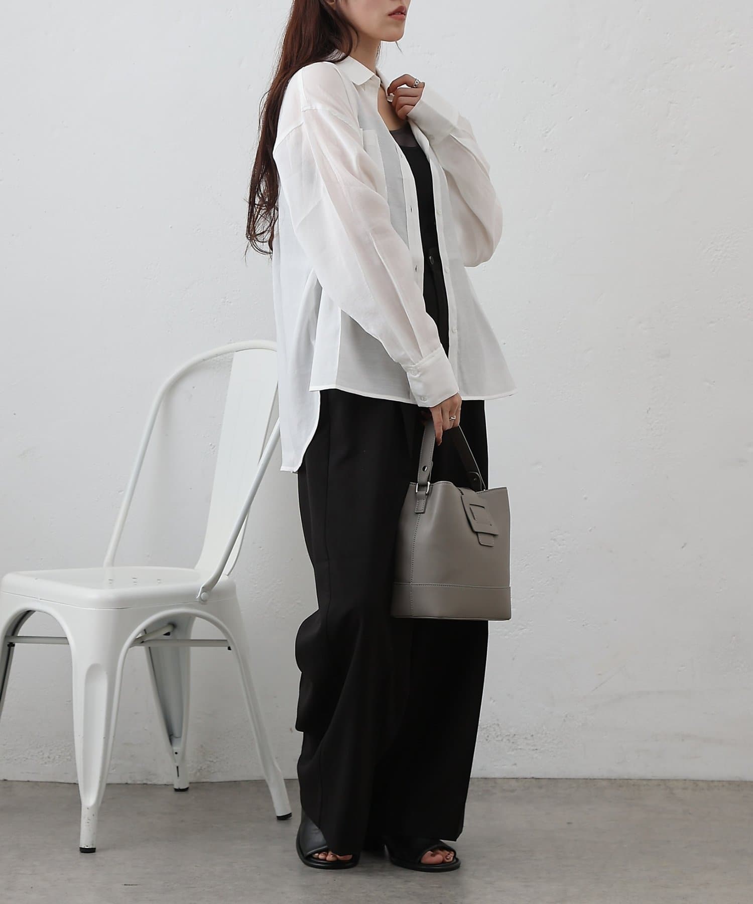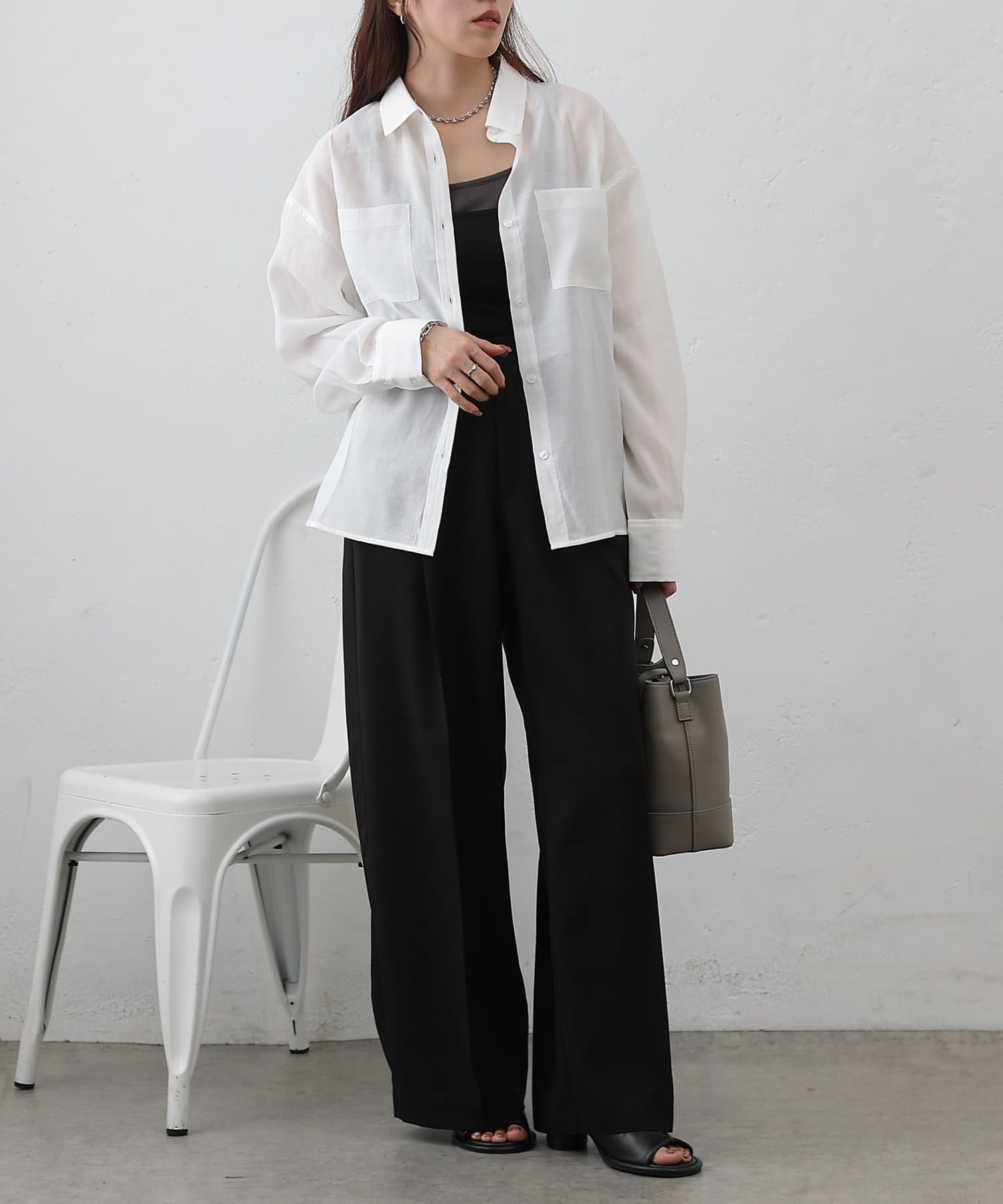トップスとして着る際に、ボタンを上下1.2個ずつ開けてあげると抜け感が出て今年らしいコーディネートになります◎