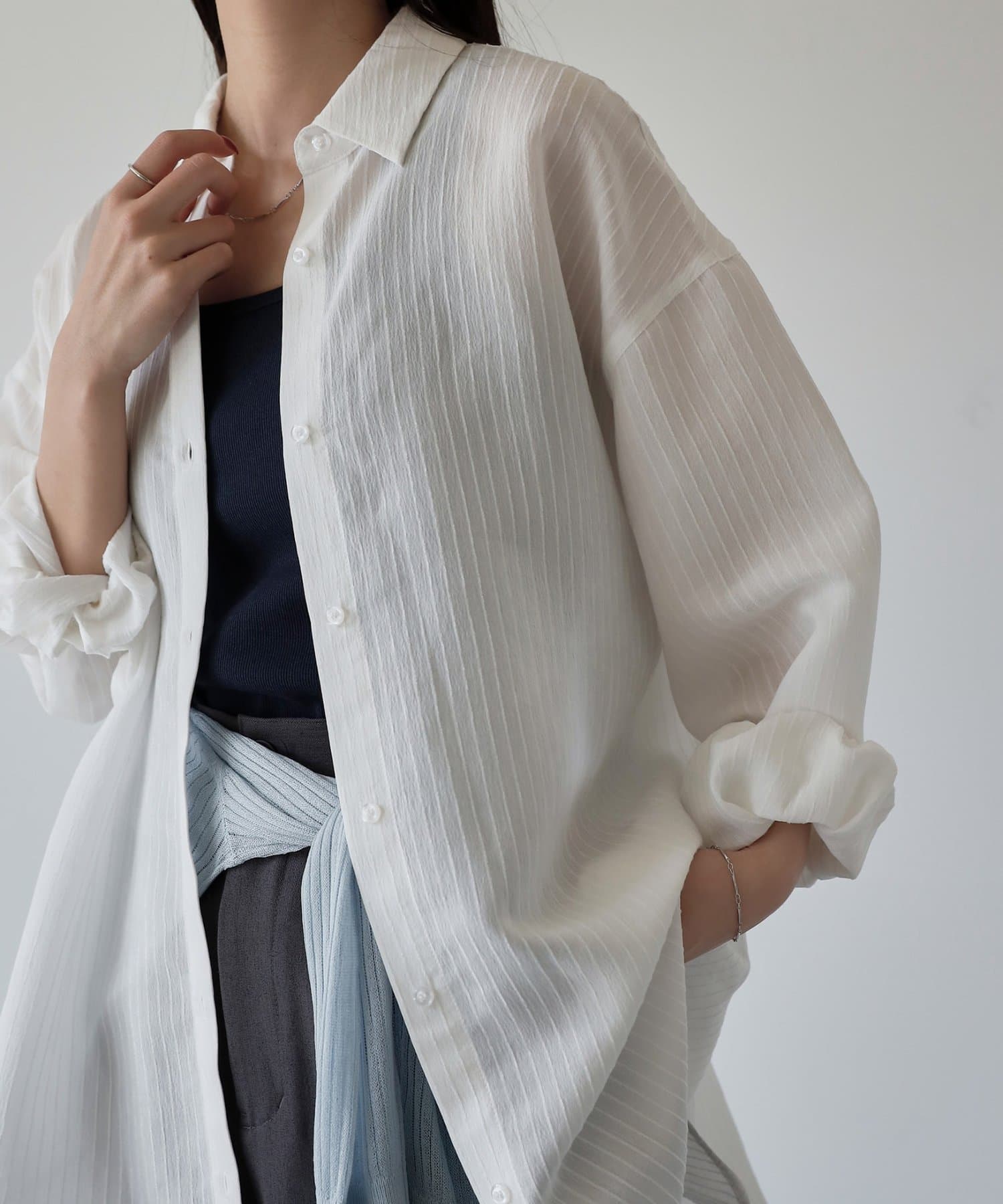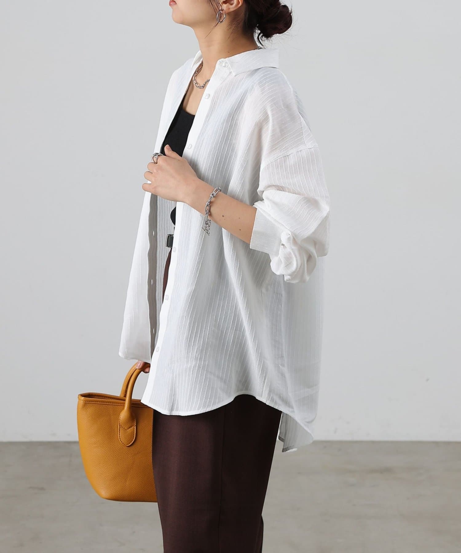 バッグシャーリングで後ろ姿までかわしいストライプシャツです。