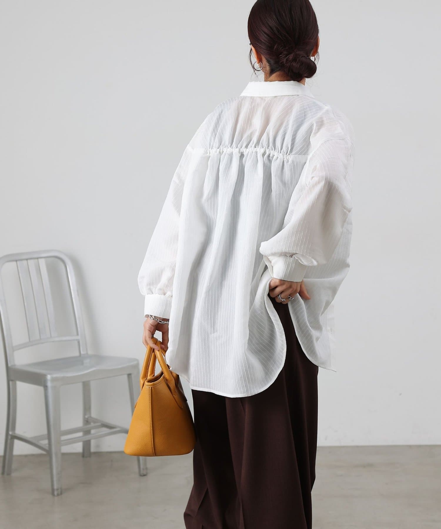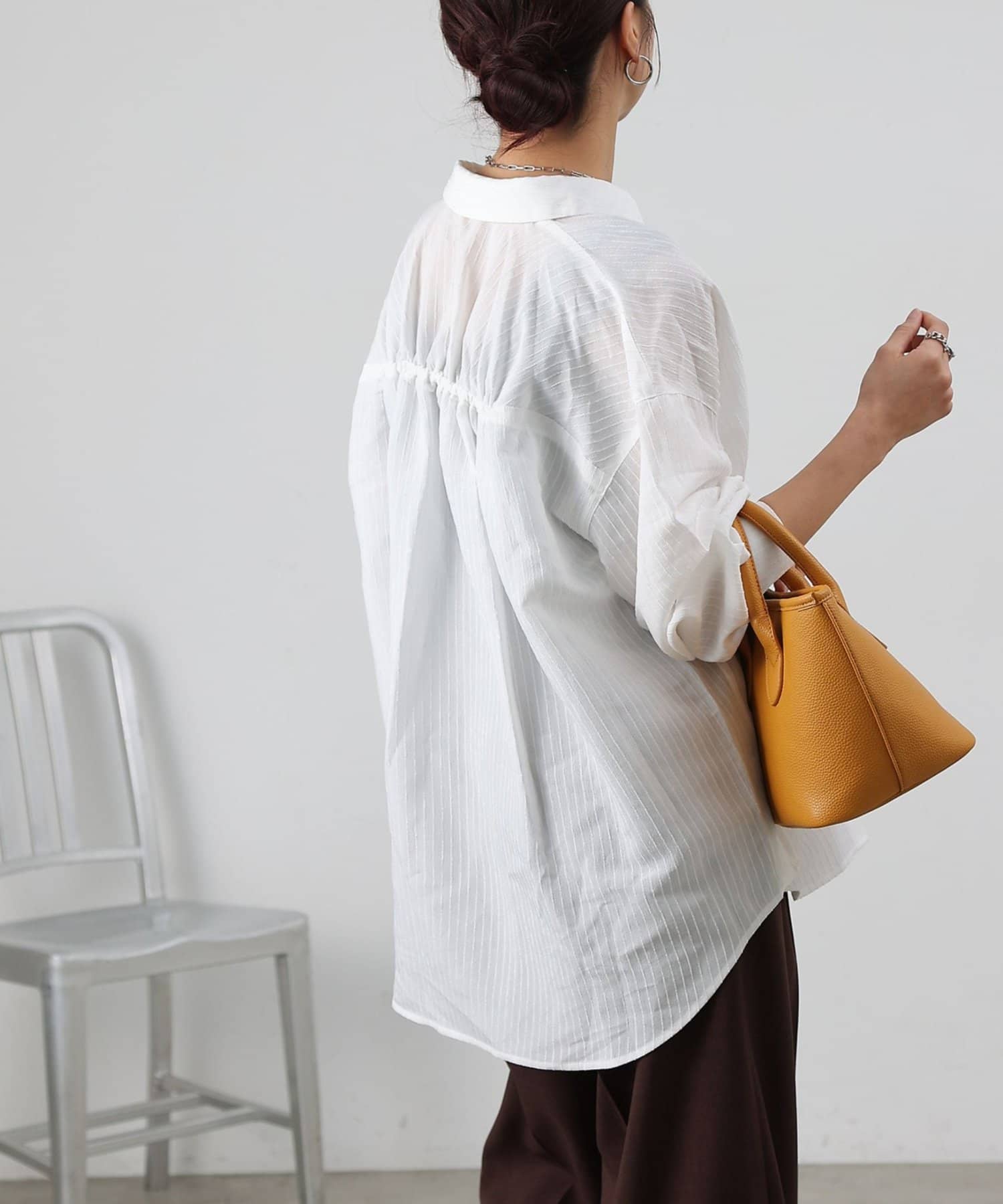 【後ろ姿までかわいいバッグシャーリングストライプシャツ】