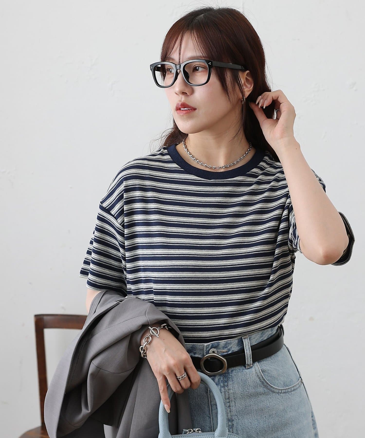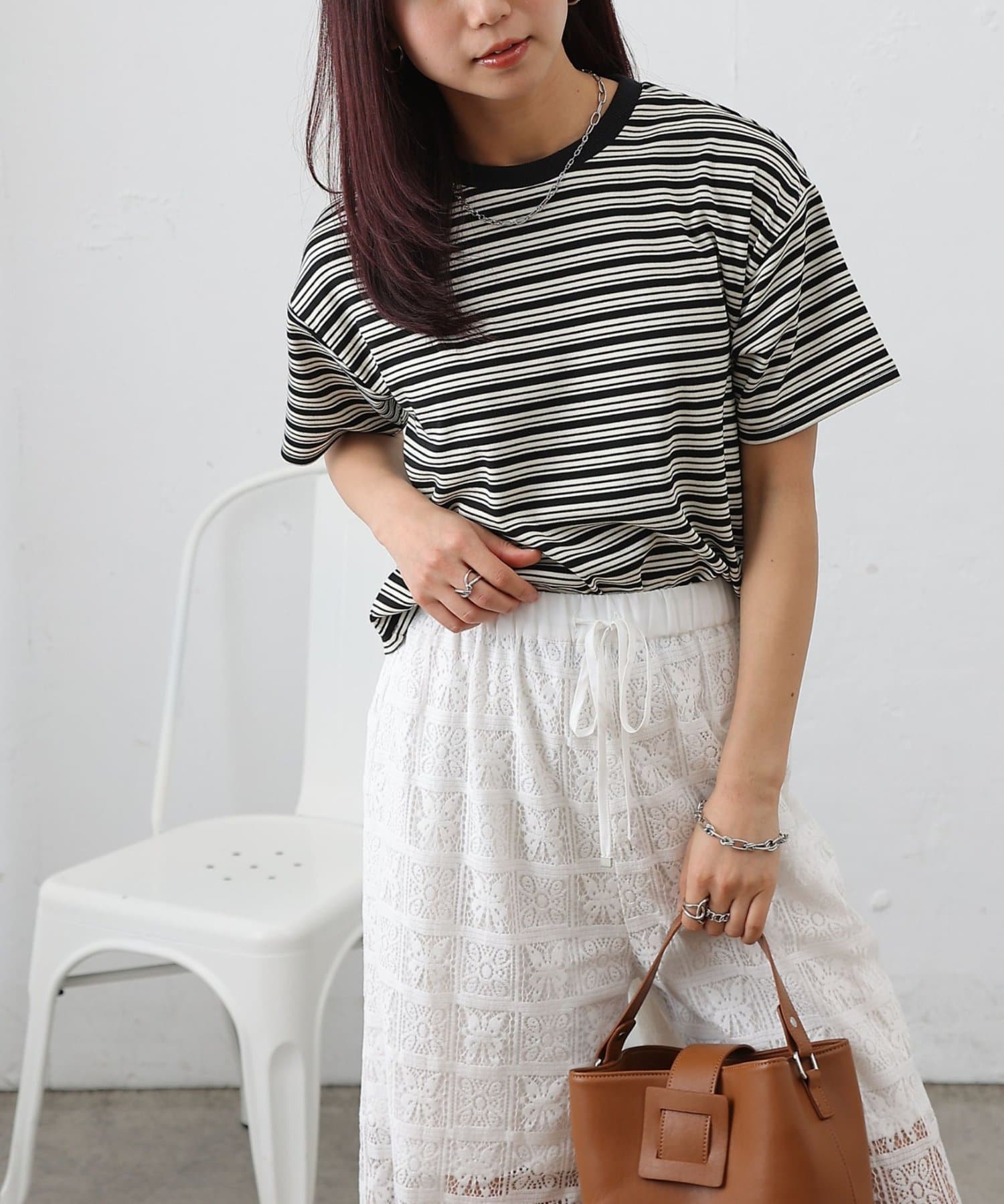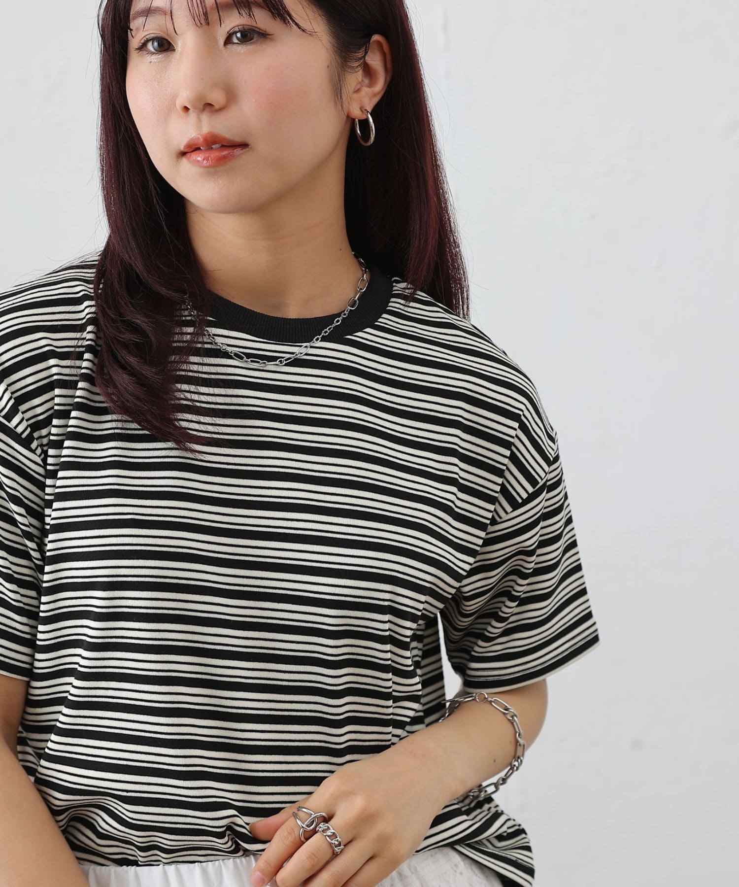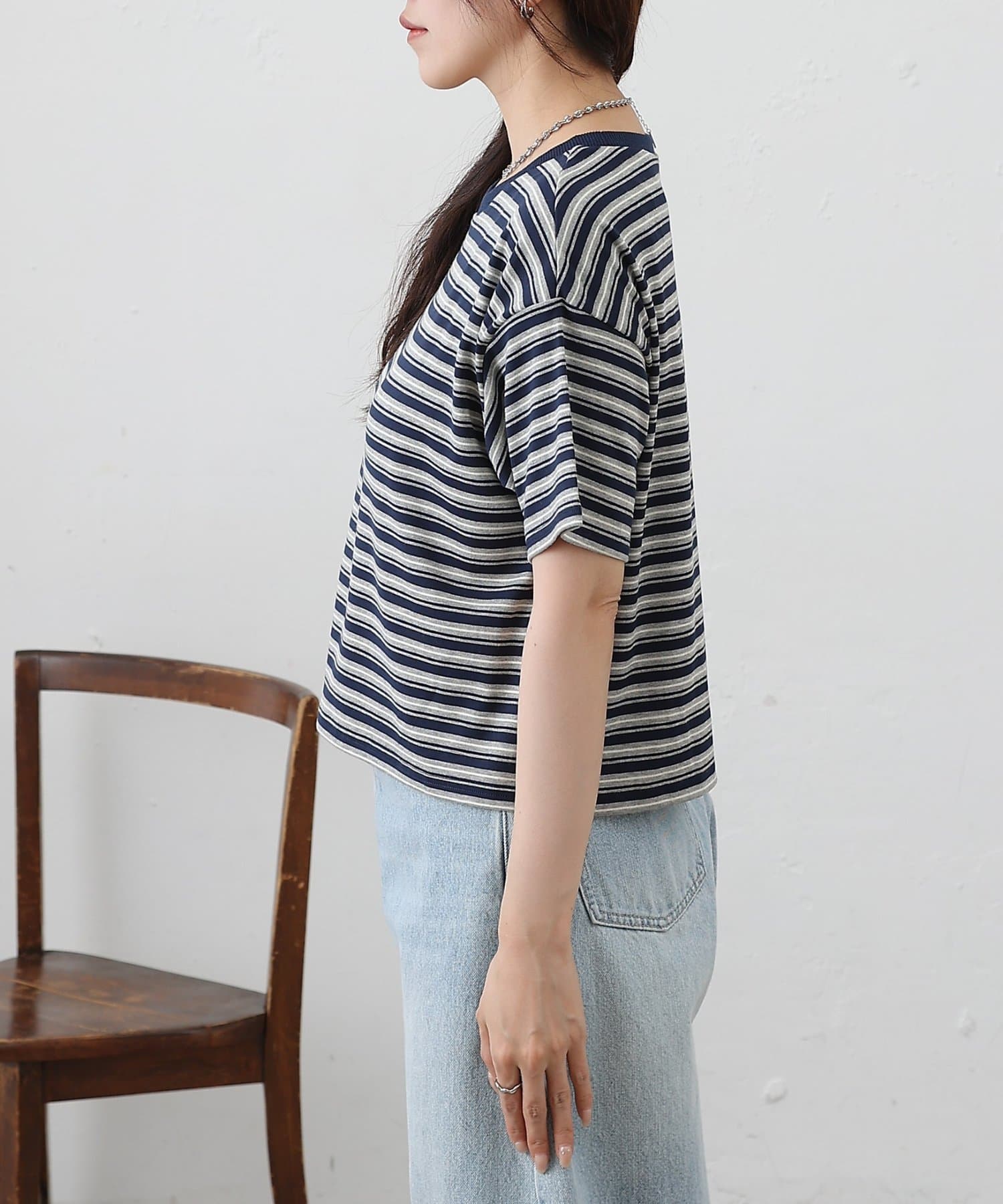 ・マルチボーダーがコーディネートにアクセントをプラス