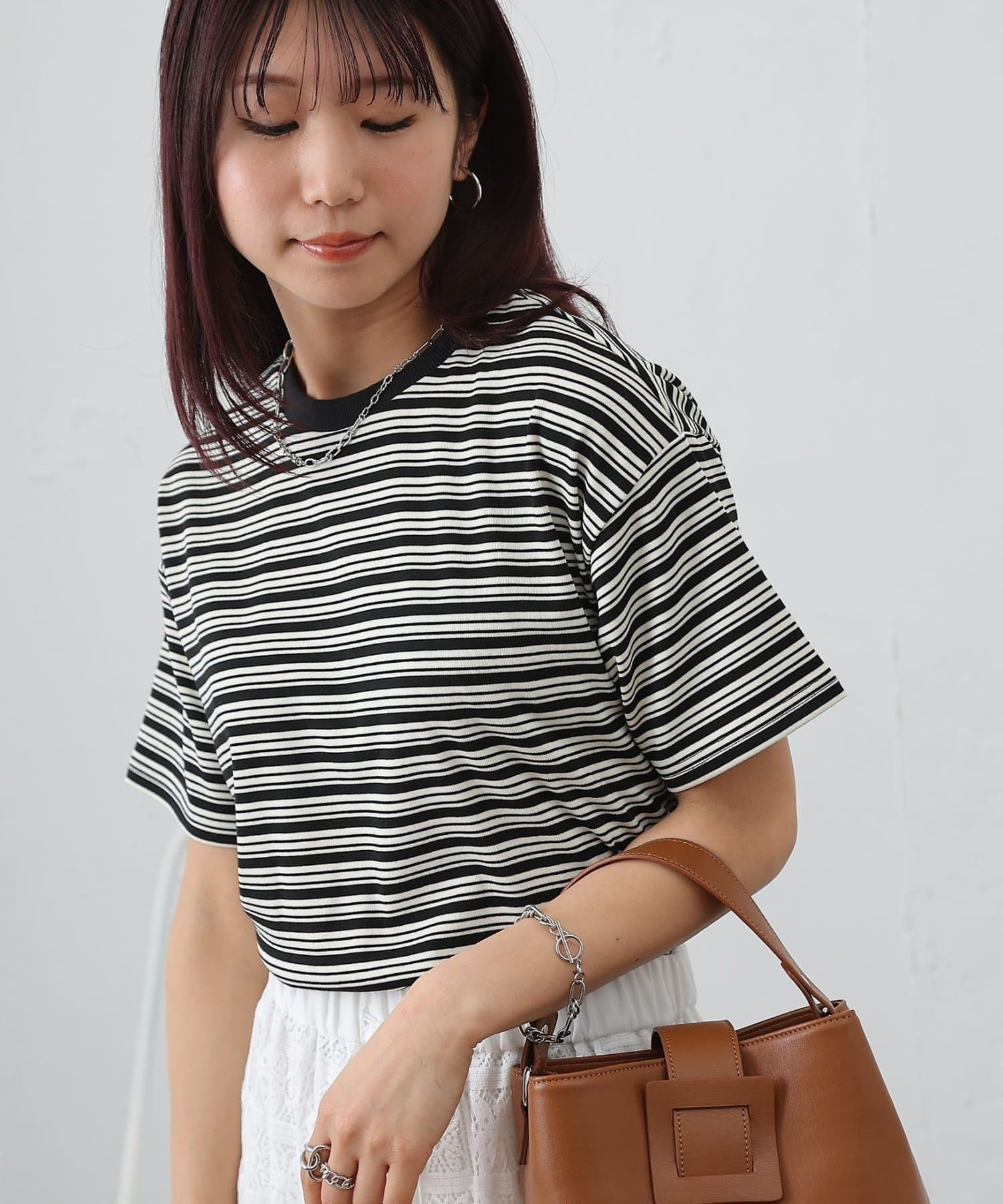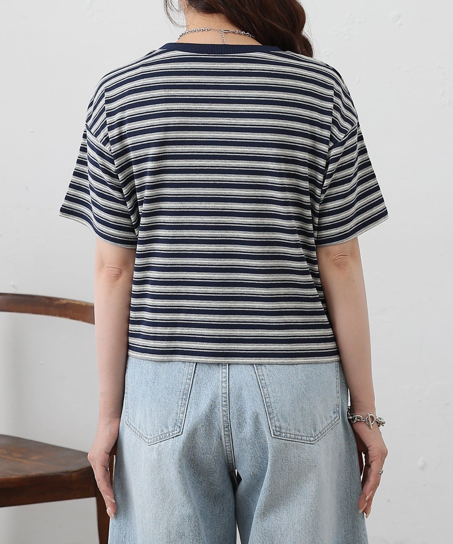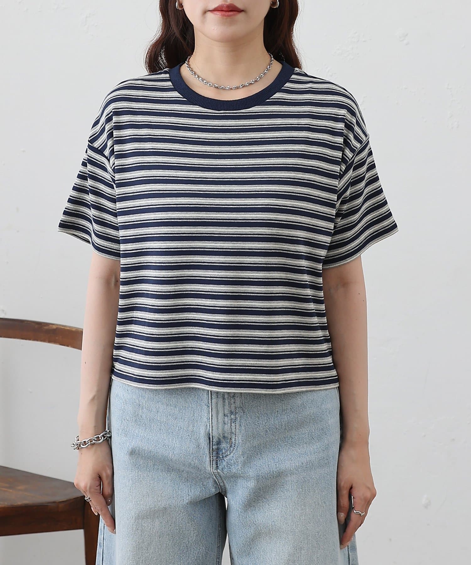 クロップド丈がコーディネートに抜け感をプラスですきボーダークロップドTシャツです。