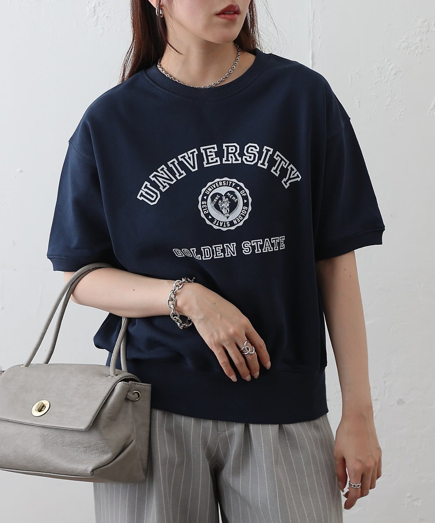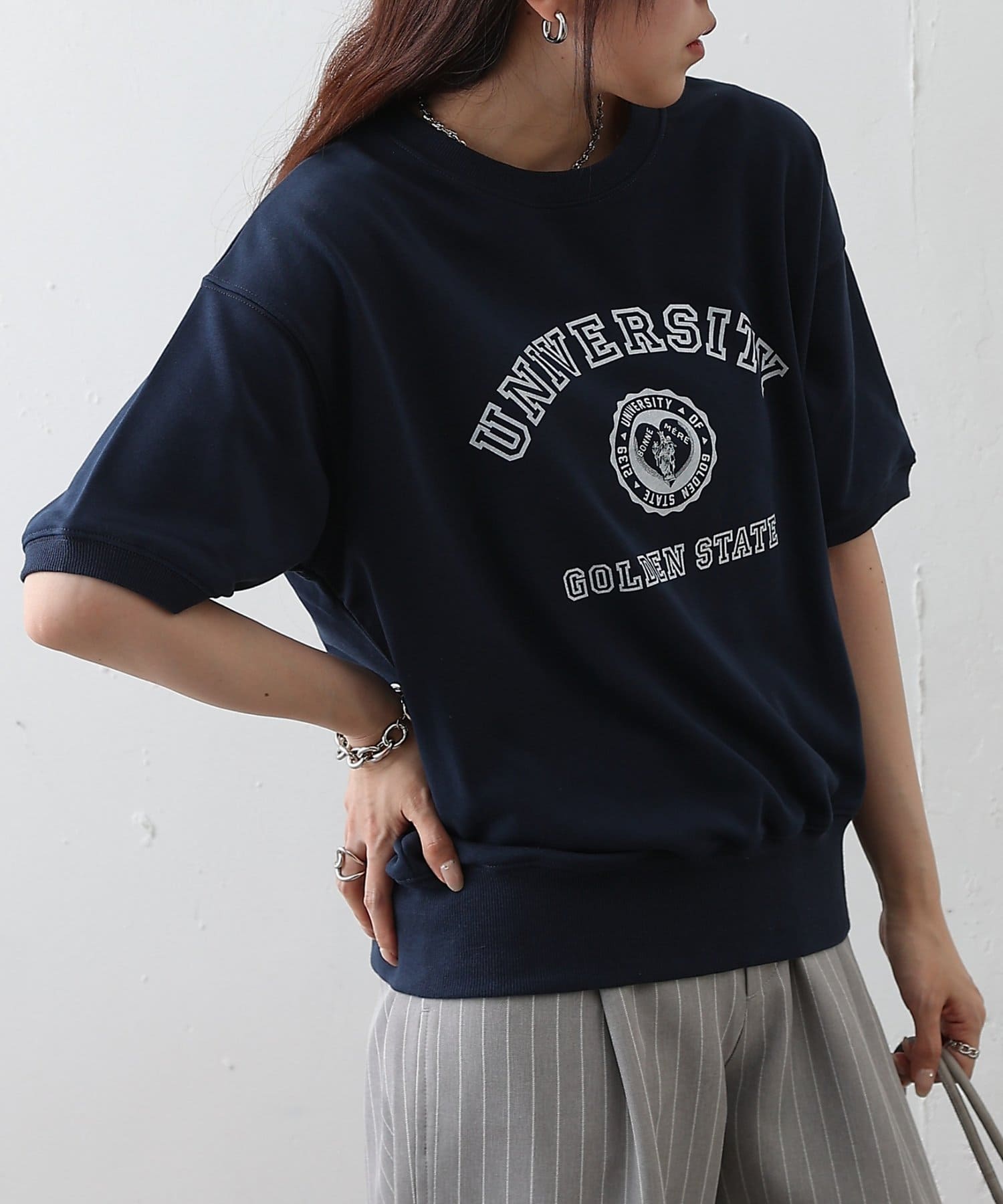 ミニ裏毛半袖カレッジプリントプルオーバー