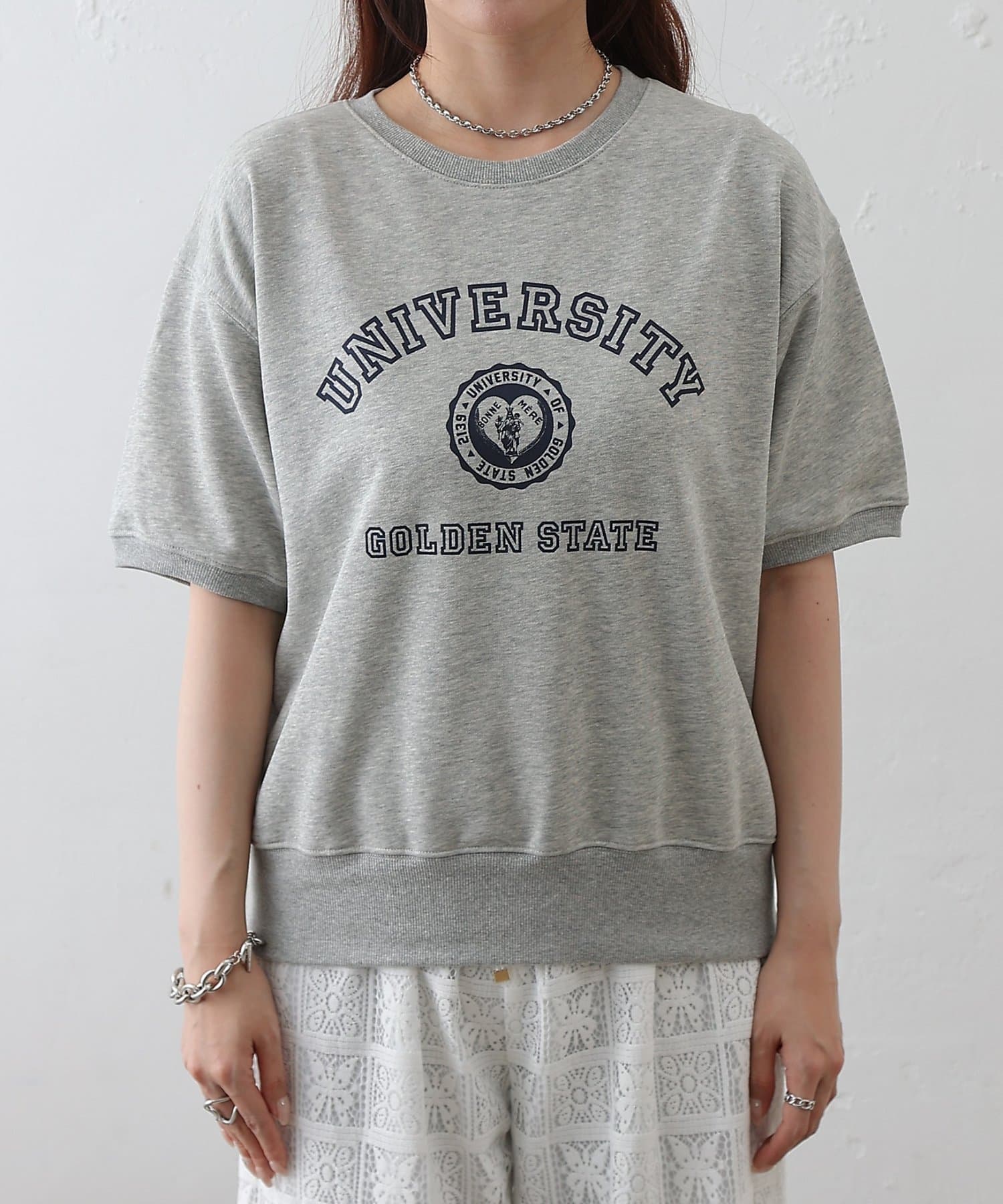 • COLONY 2139(コロニー トゥーワンスリーナイン) ミニ裏毛半袖カレッジプリントプルオーバー