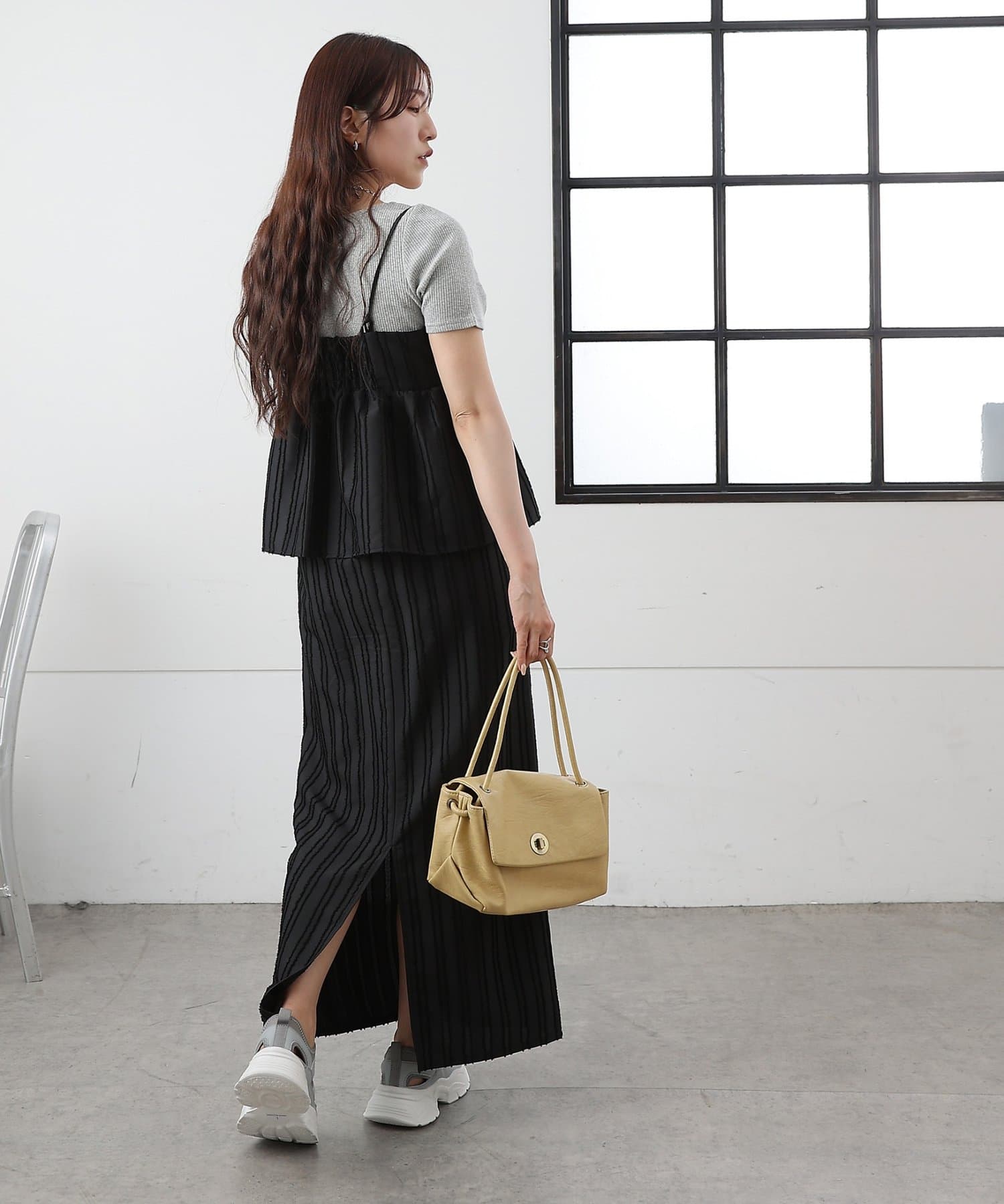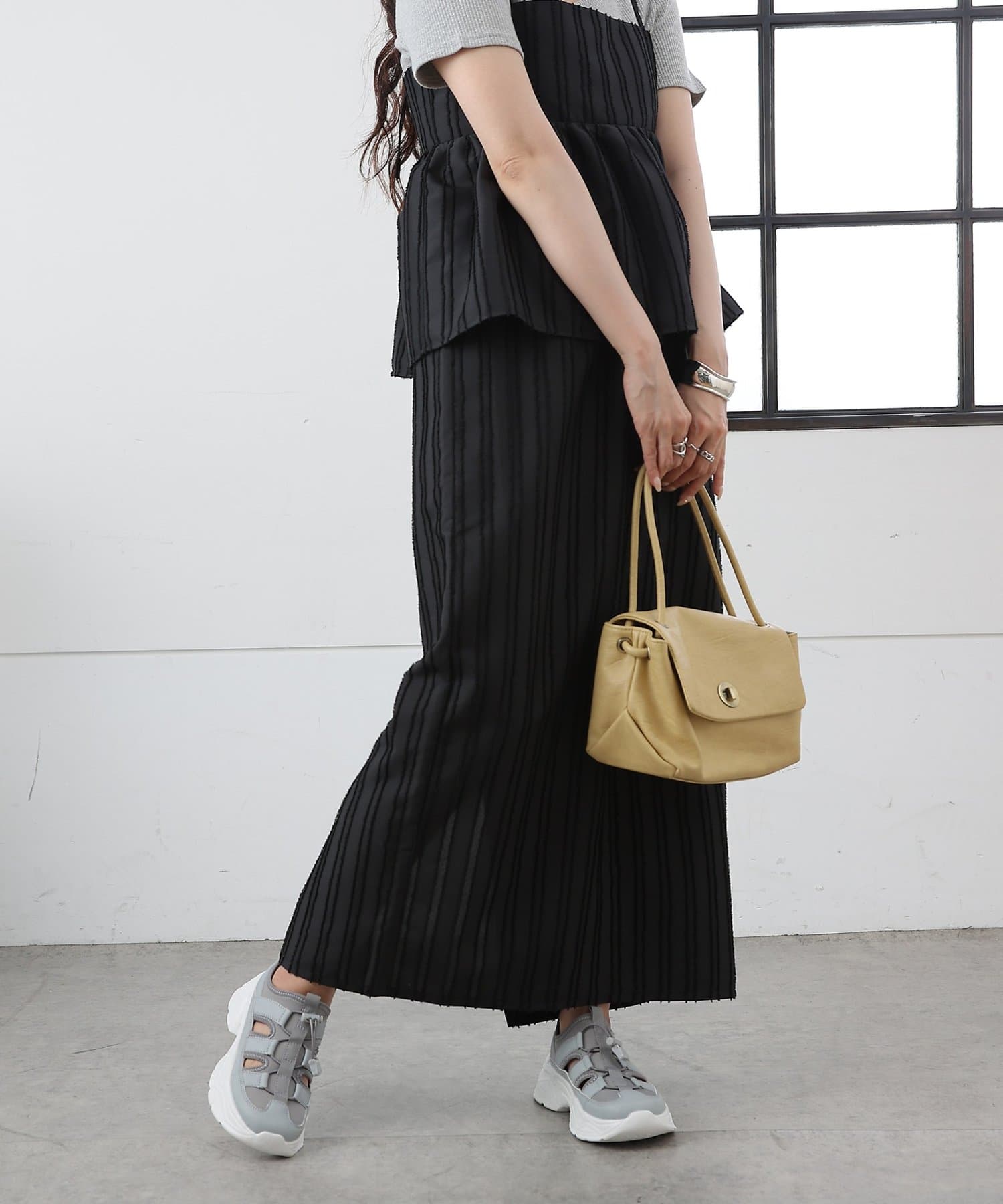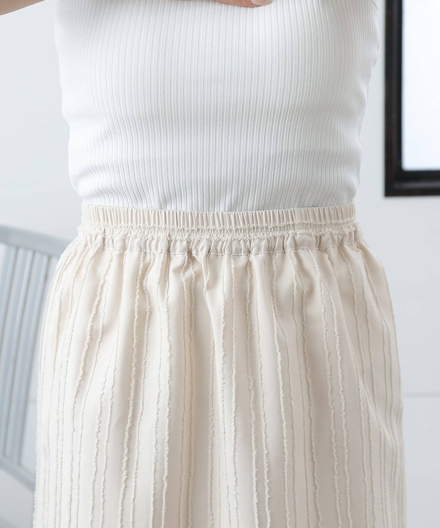 【縦のフリンジラインで脚長効果抜群なナロースカート】