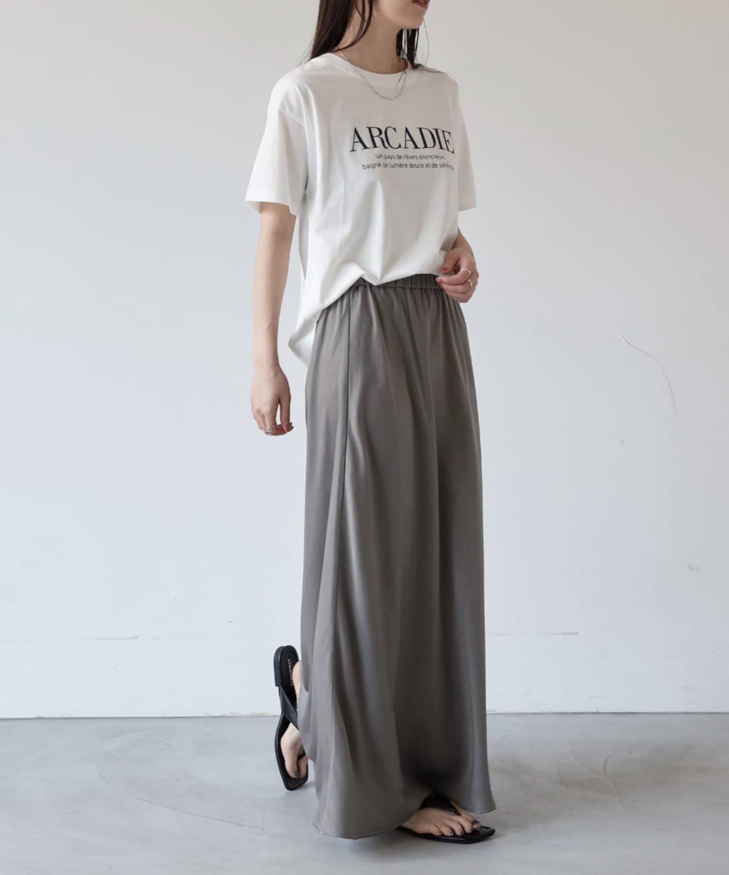 程よい光沢感と滑らかな生地感で、コーディネートに上品な印象をプラスできます。