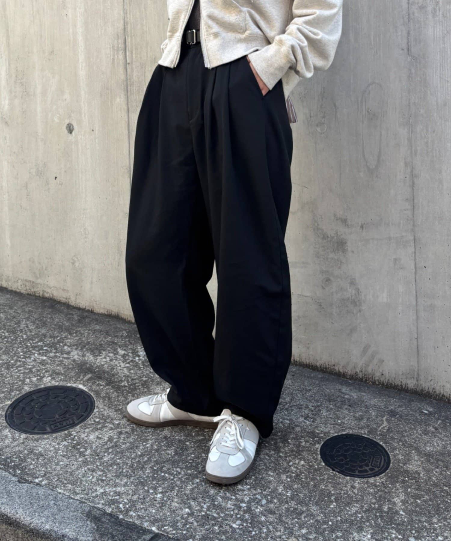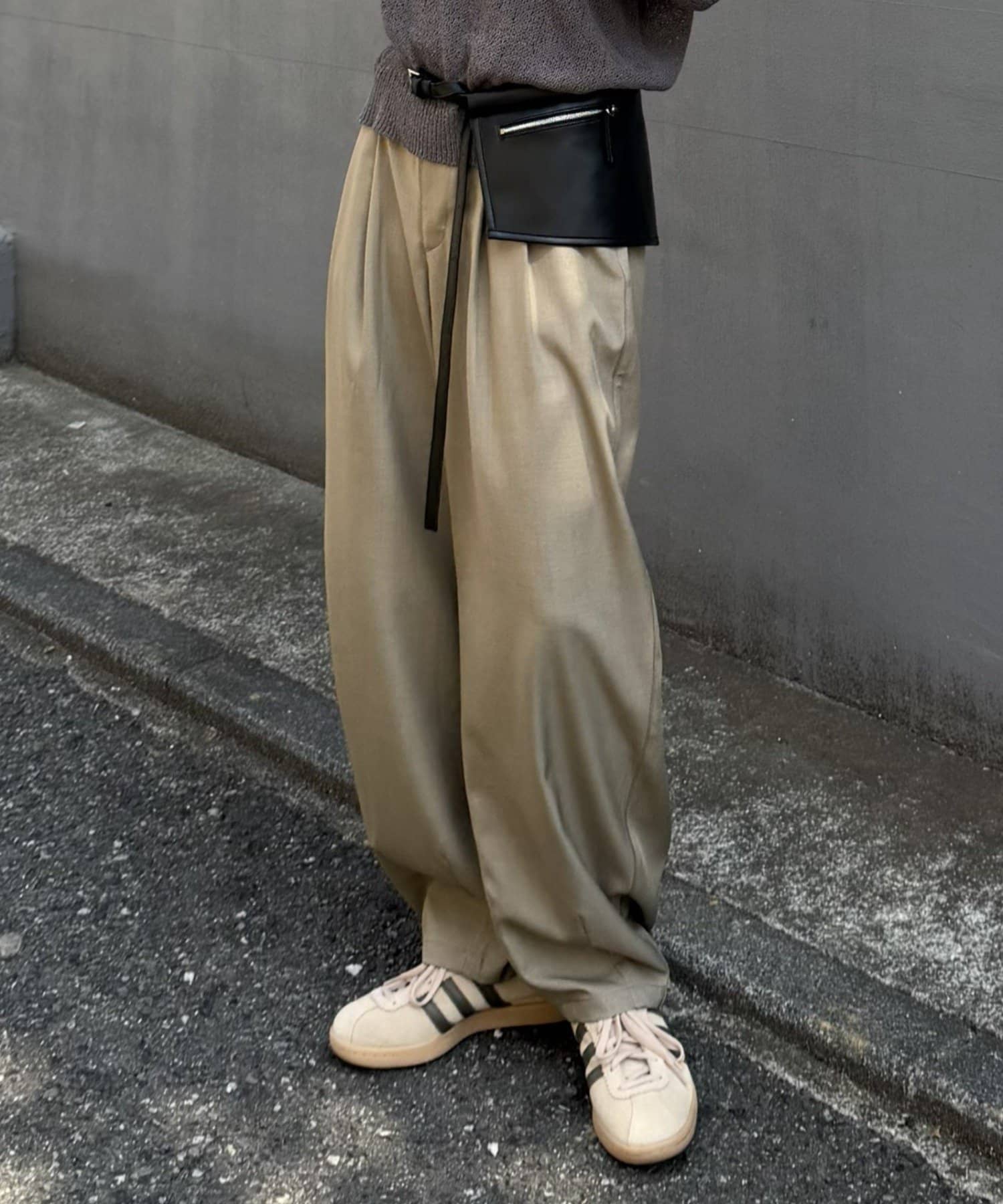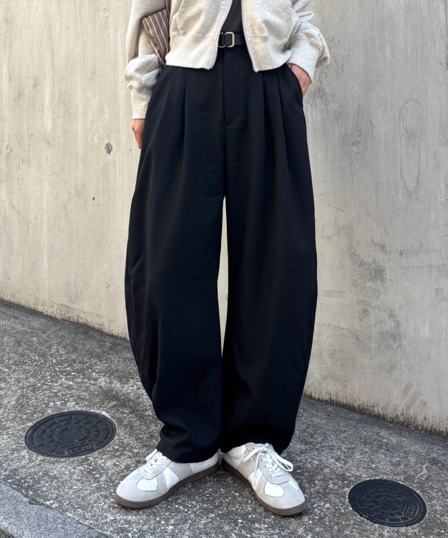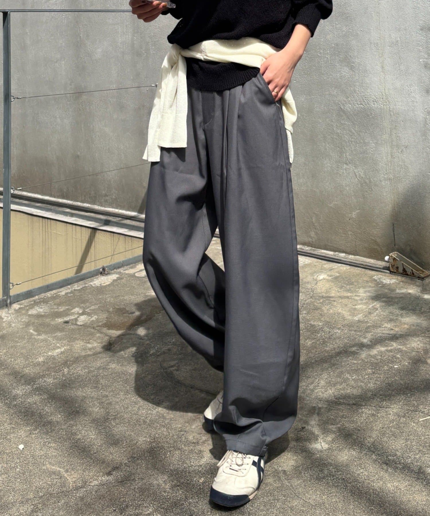 【落ち感のあるカーブシルエットのスラックス】