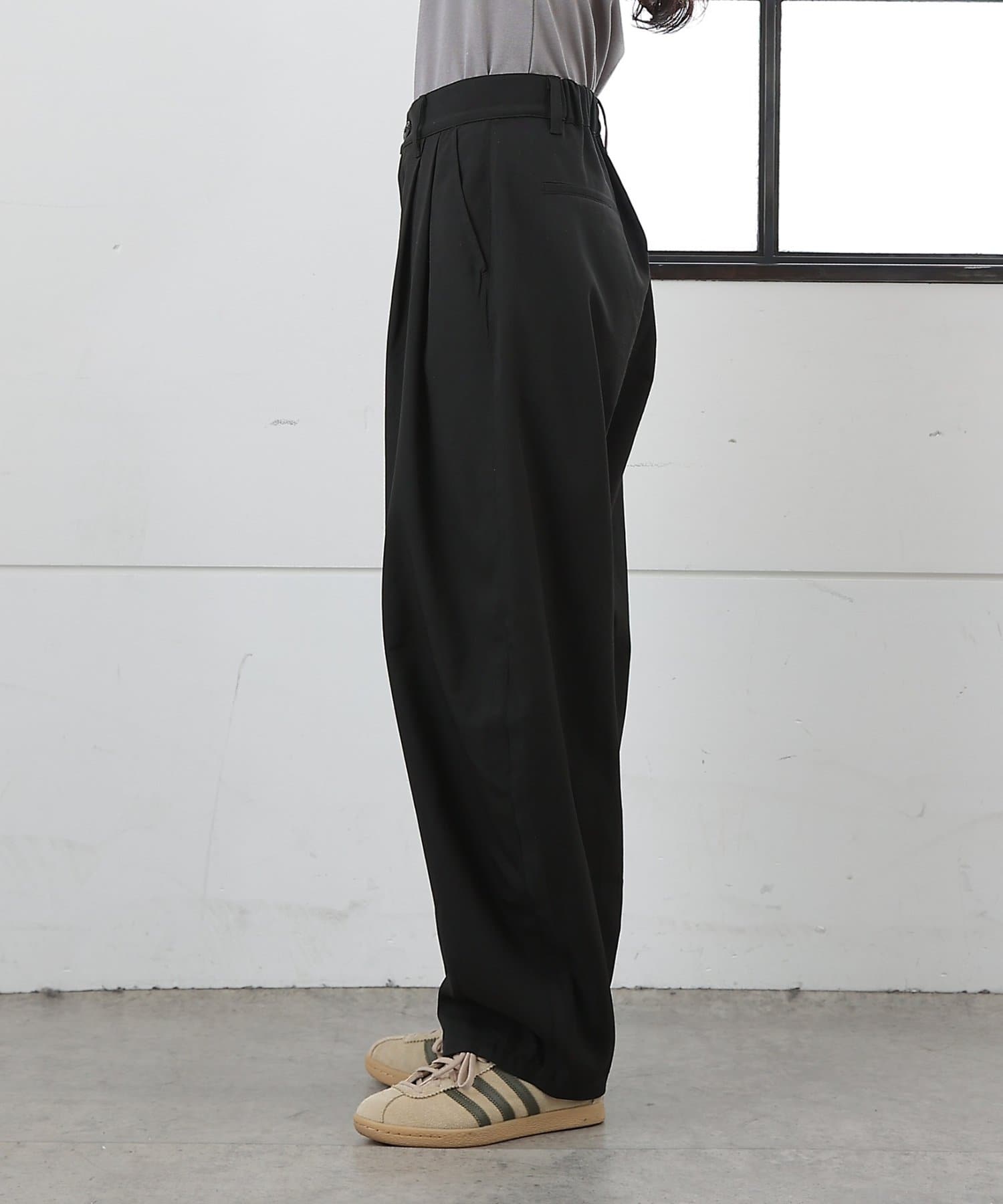 【落ち感のあるカーブシルエットのスラックス】