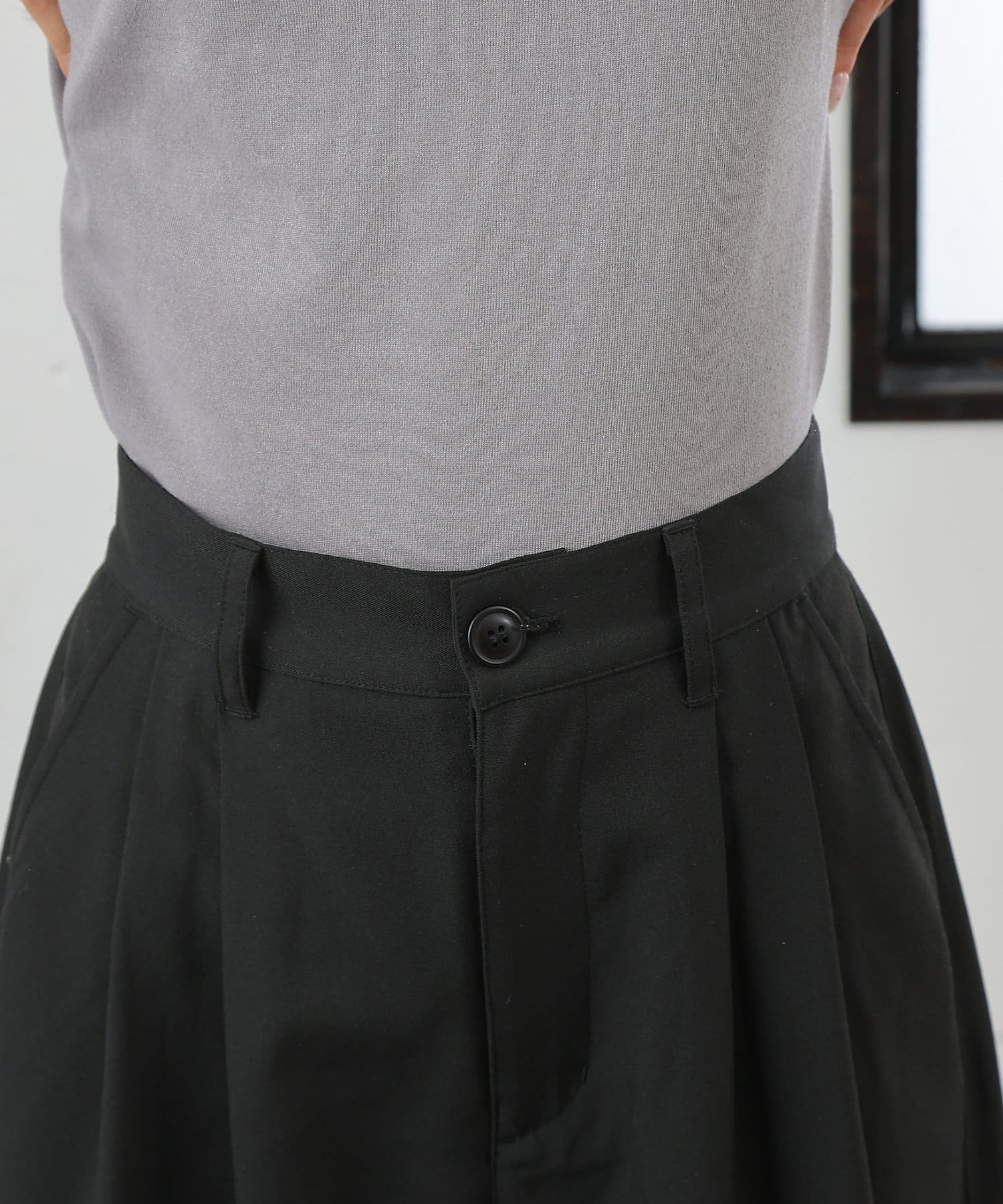 ウエストの2タックデザインときれい見えする素材で