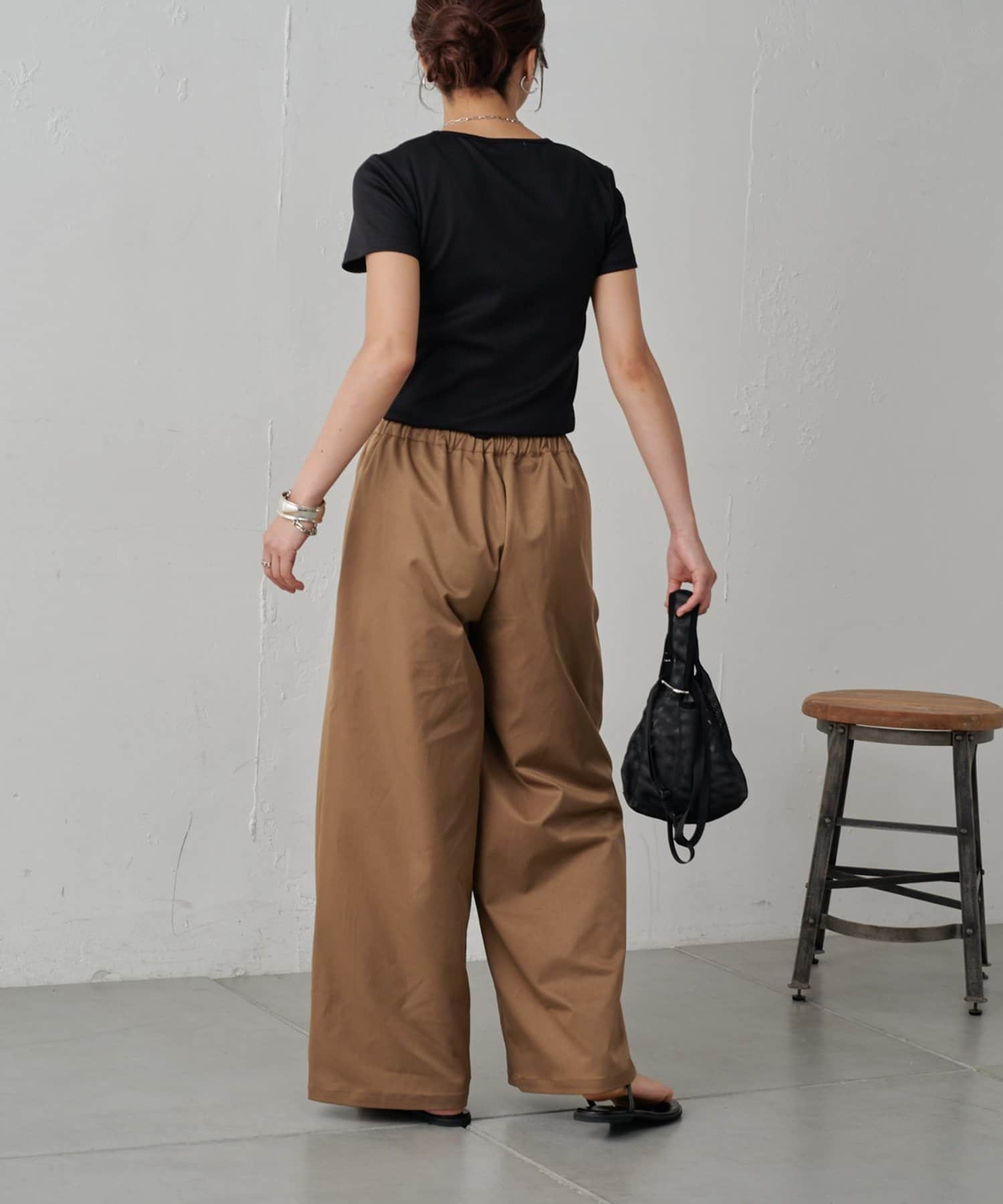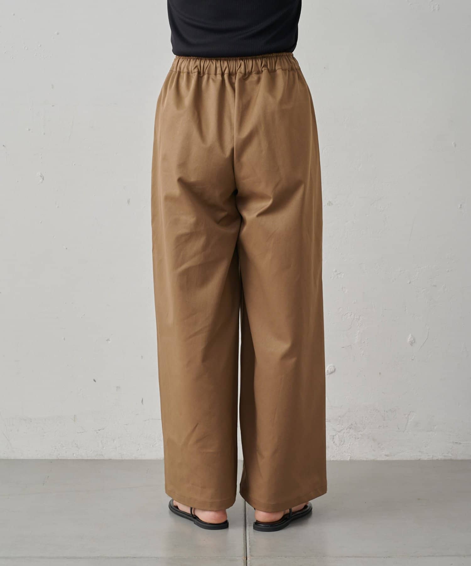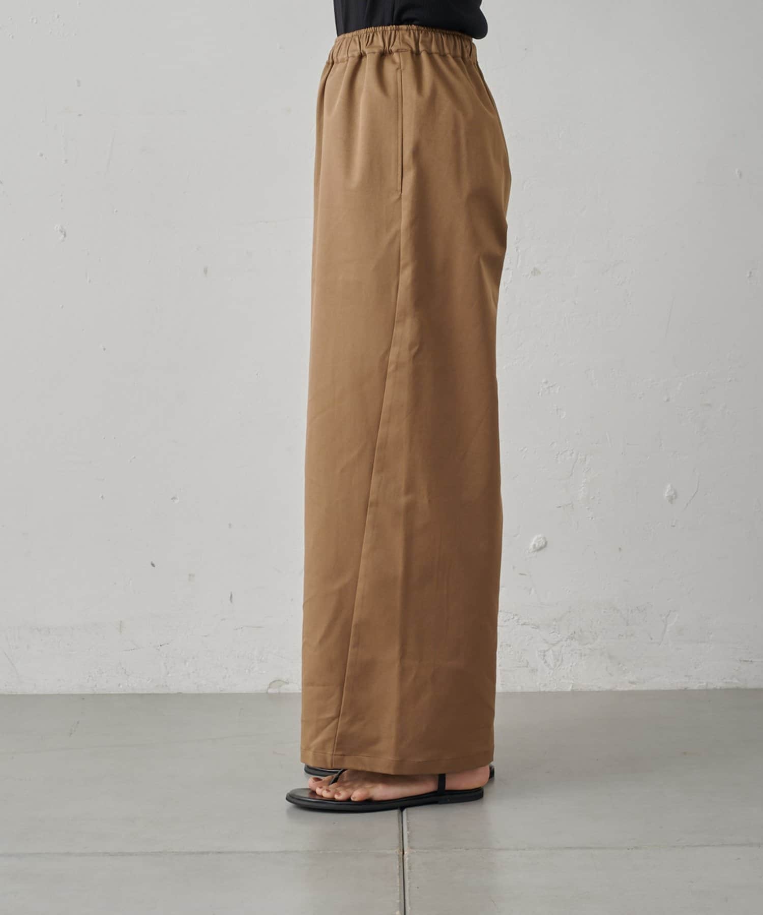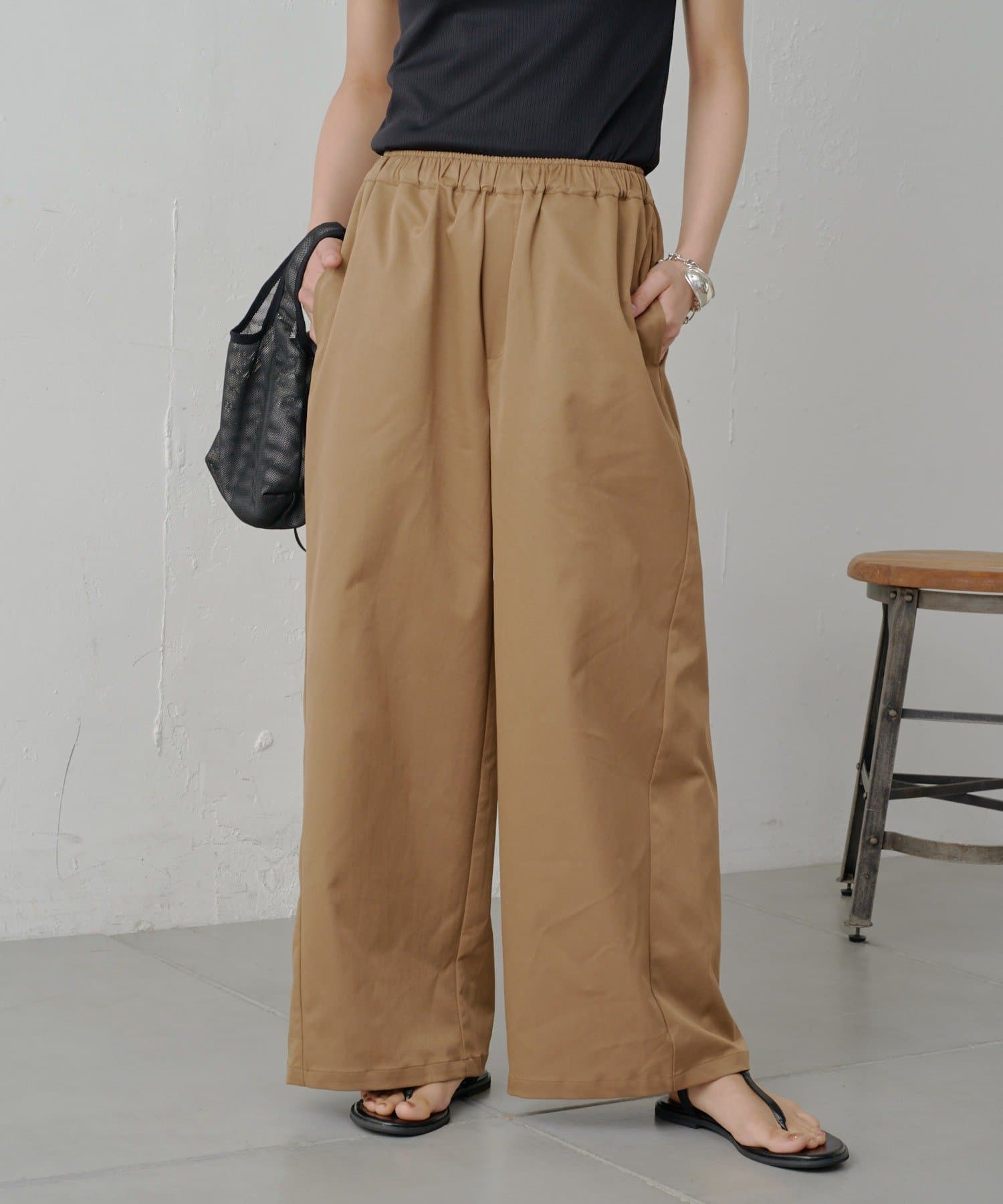 やや光沢感のある上品な素材なので、イージーパンツ仕様でもラフすぎずにキレイめな印象になります。