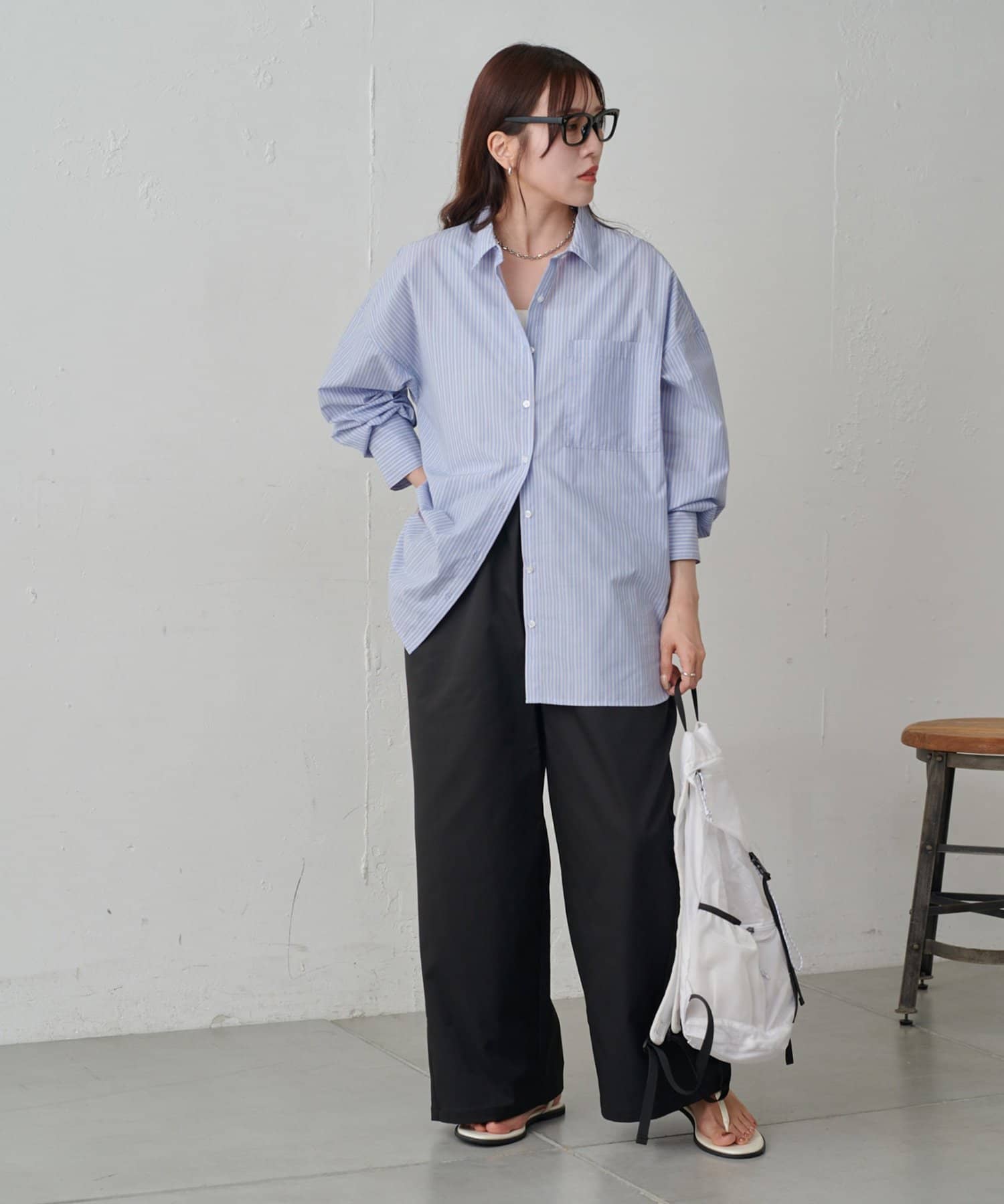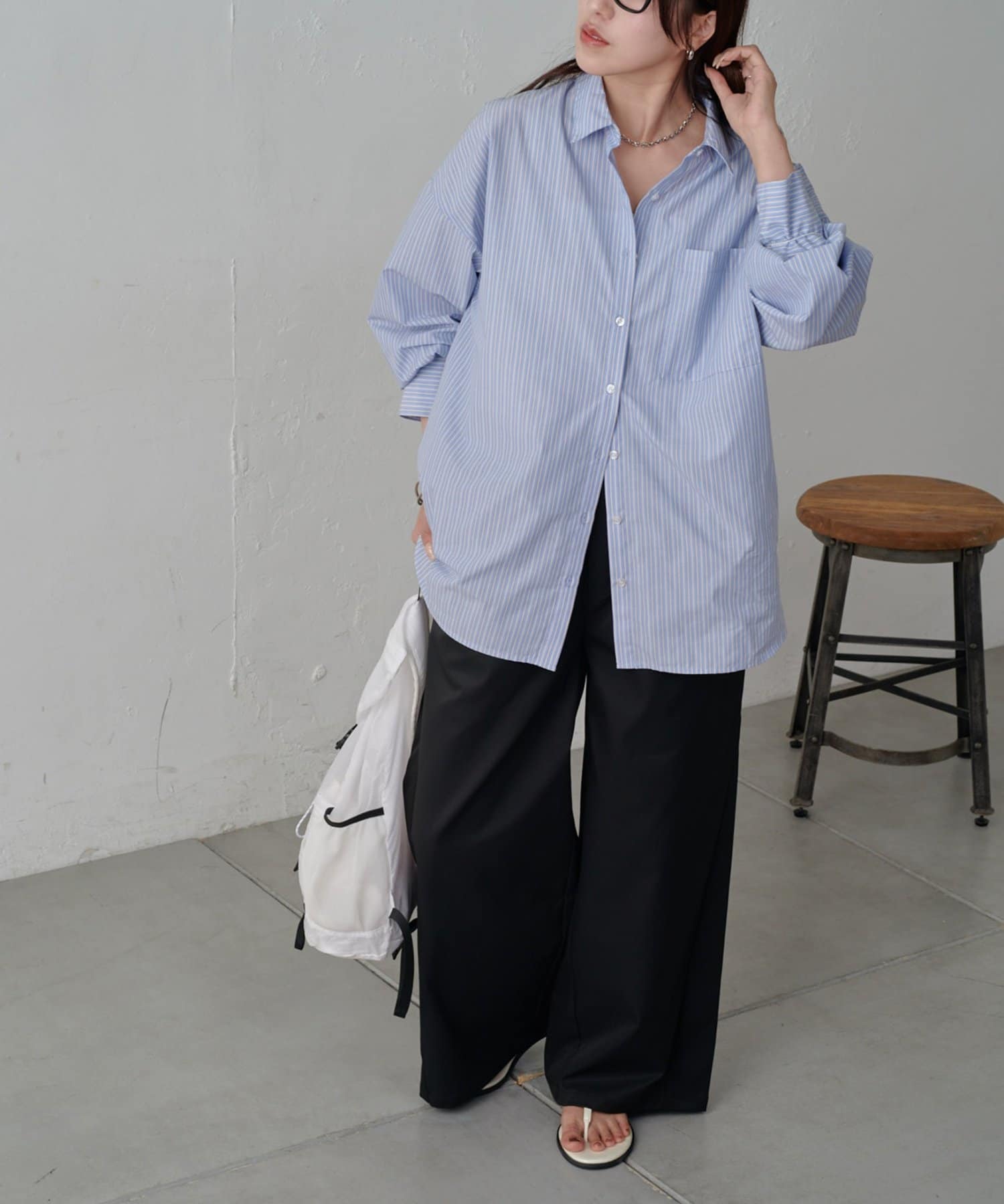 インスタイルでもアウトスタイルでも決まるキレイなシルエットなので、合わせに困りにくいアイテムです。