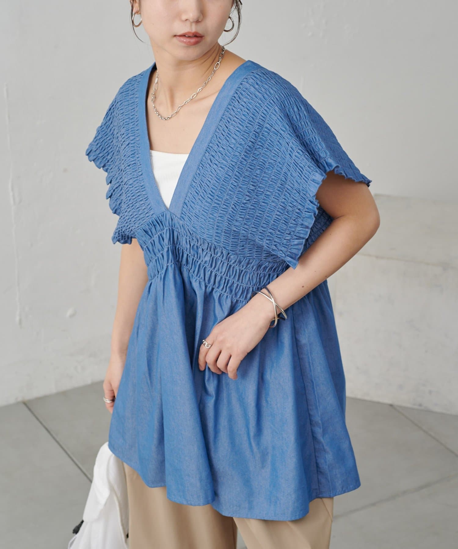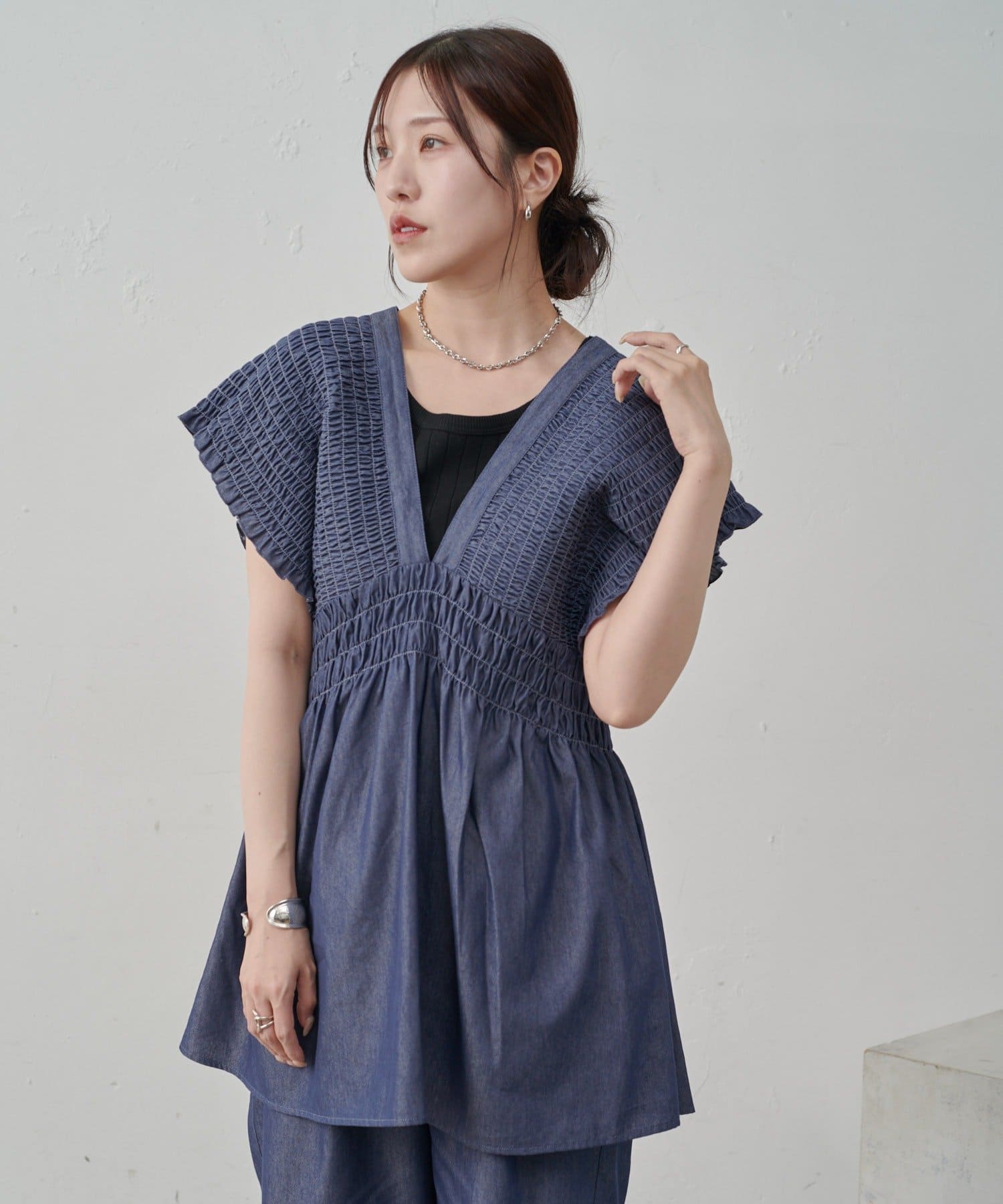 【WEB限定】シャーリングデニムチュニック