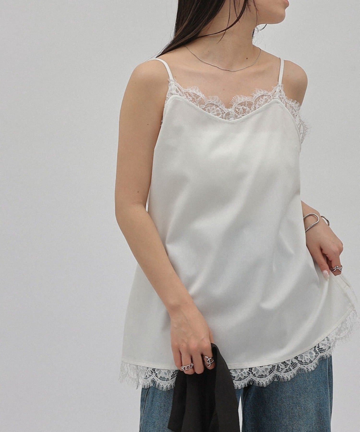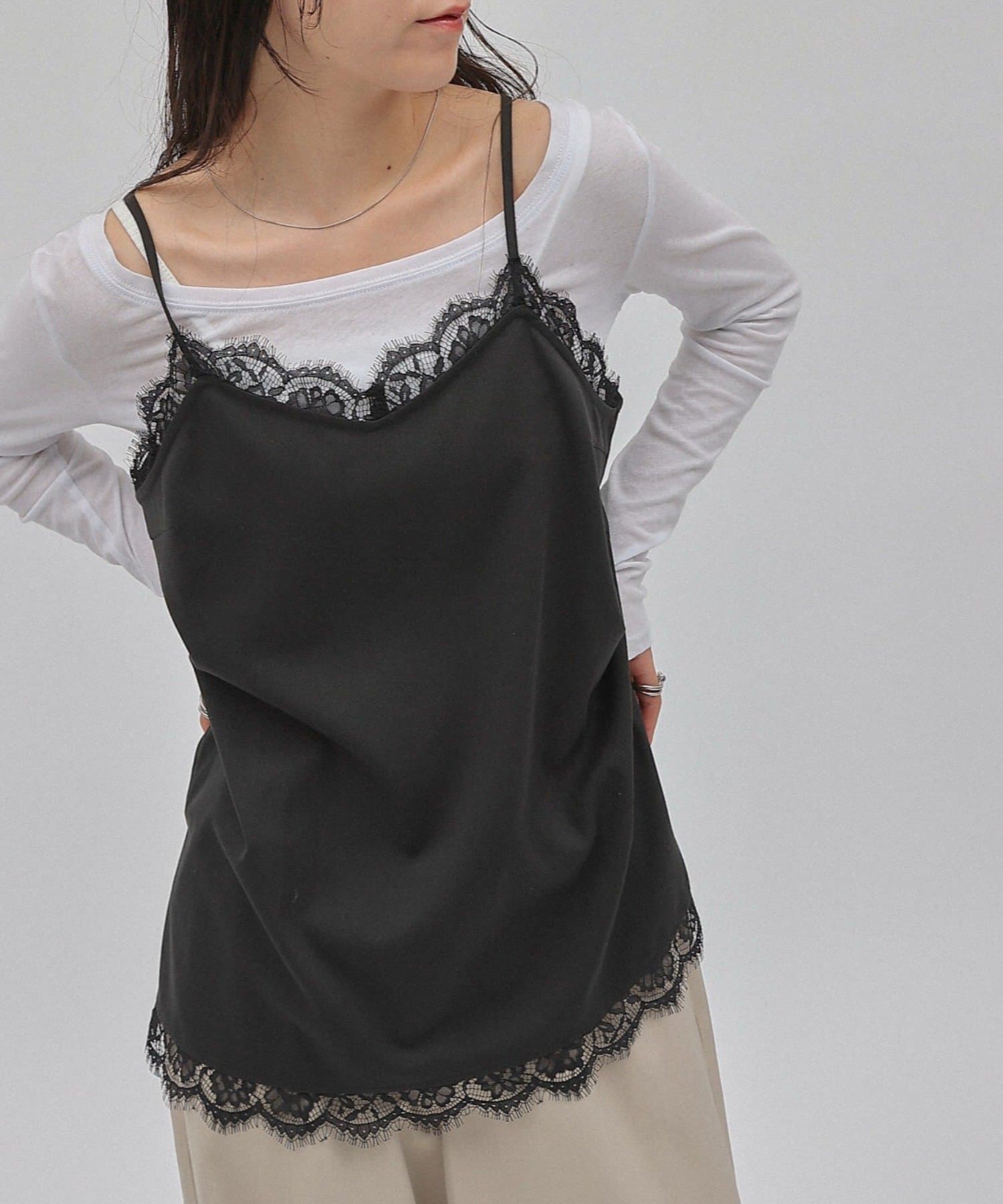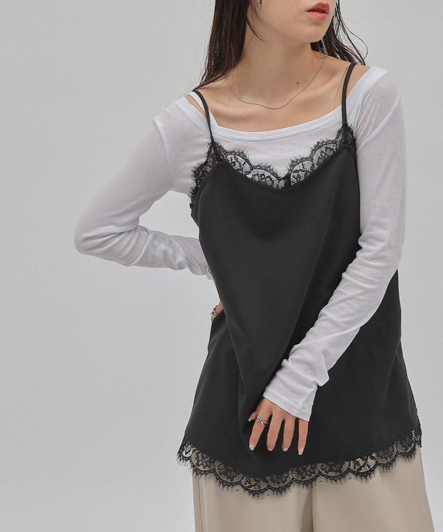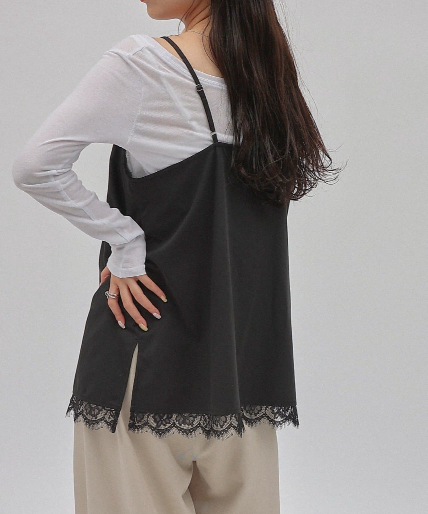 Tシャツなどの上からはもちろん、スエットやカーディガンの下にいれて裾のレースだけ見せるコーディネートもトレンド感が取り入れられてオススメです。