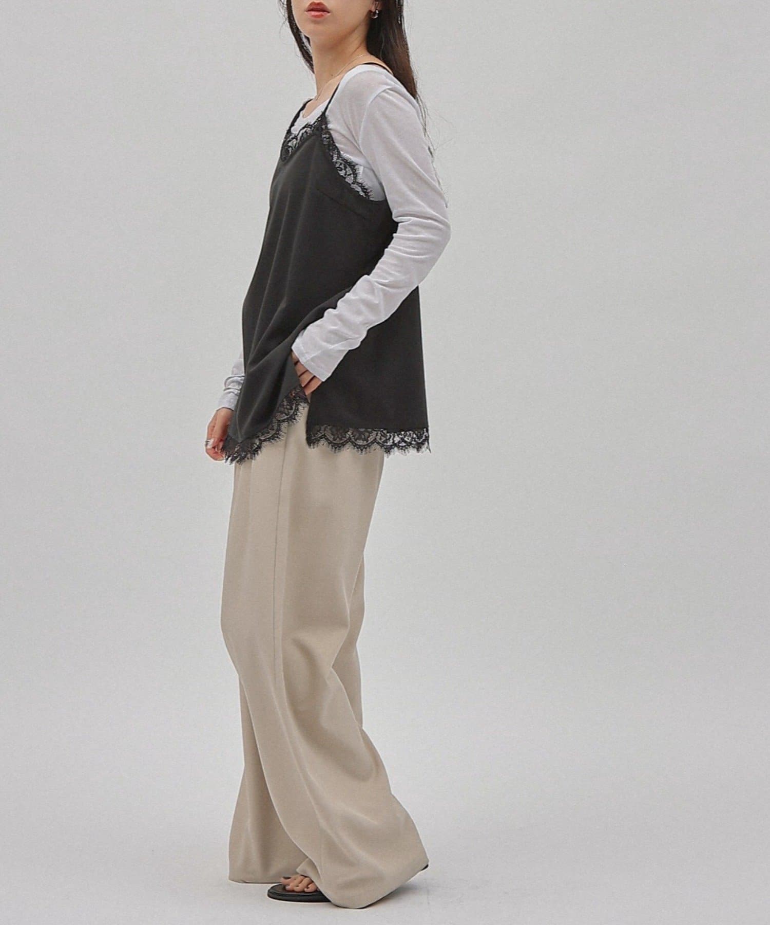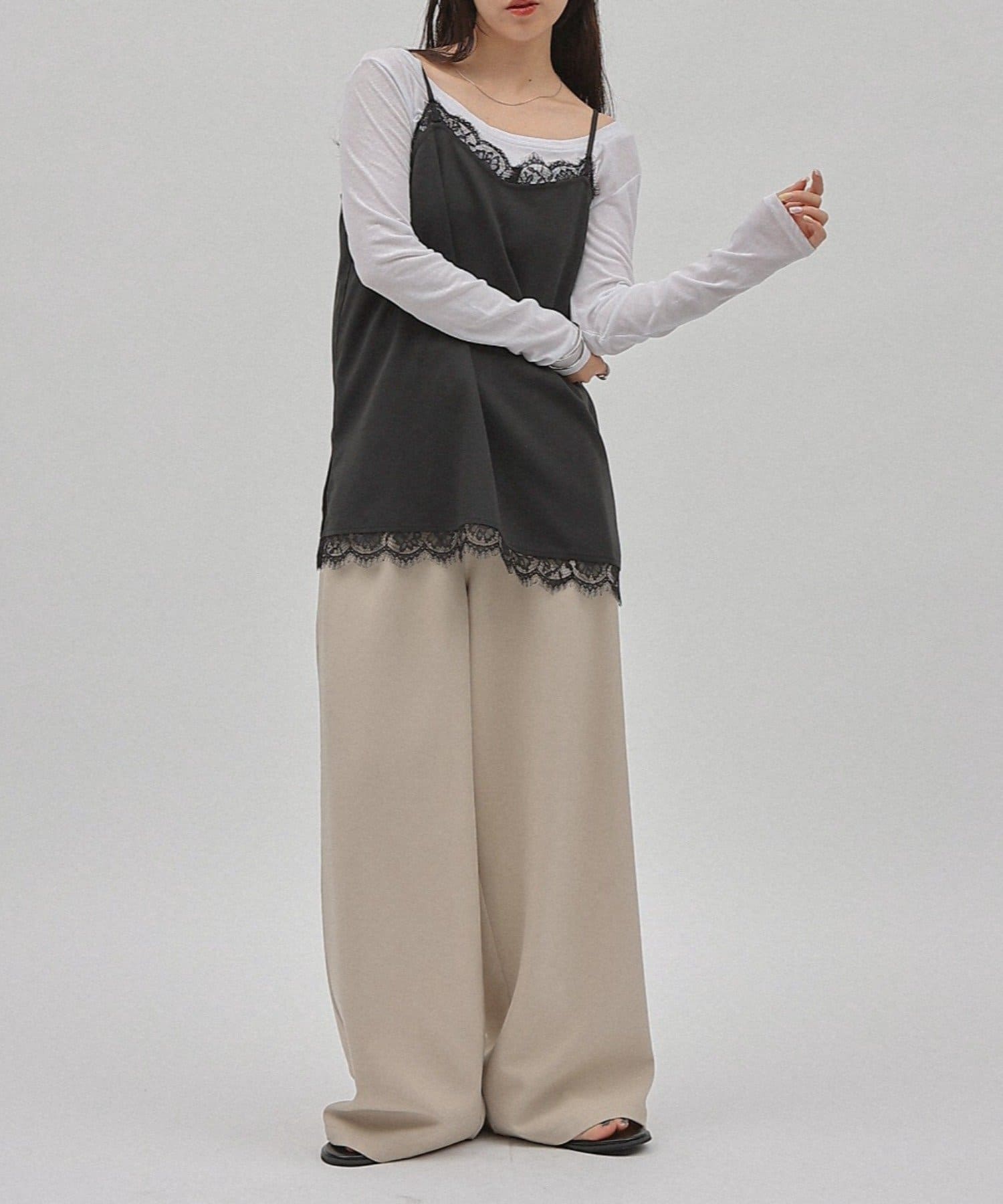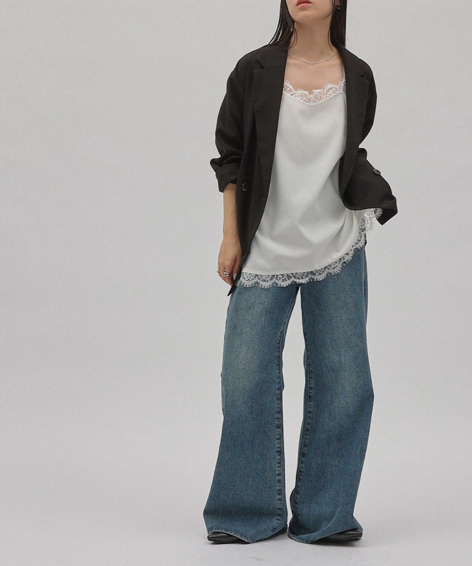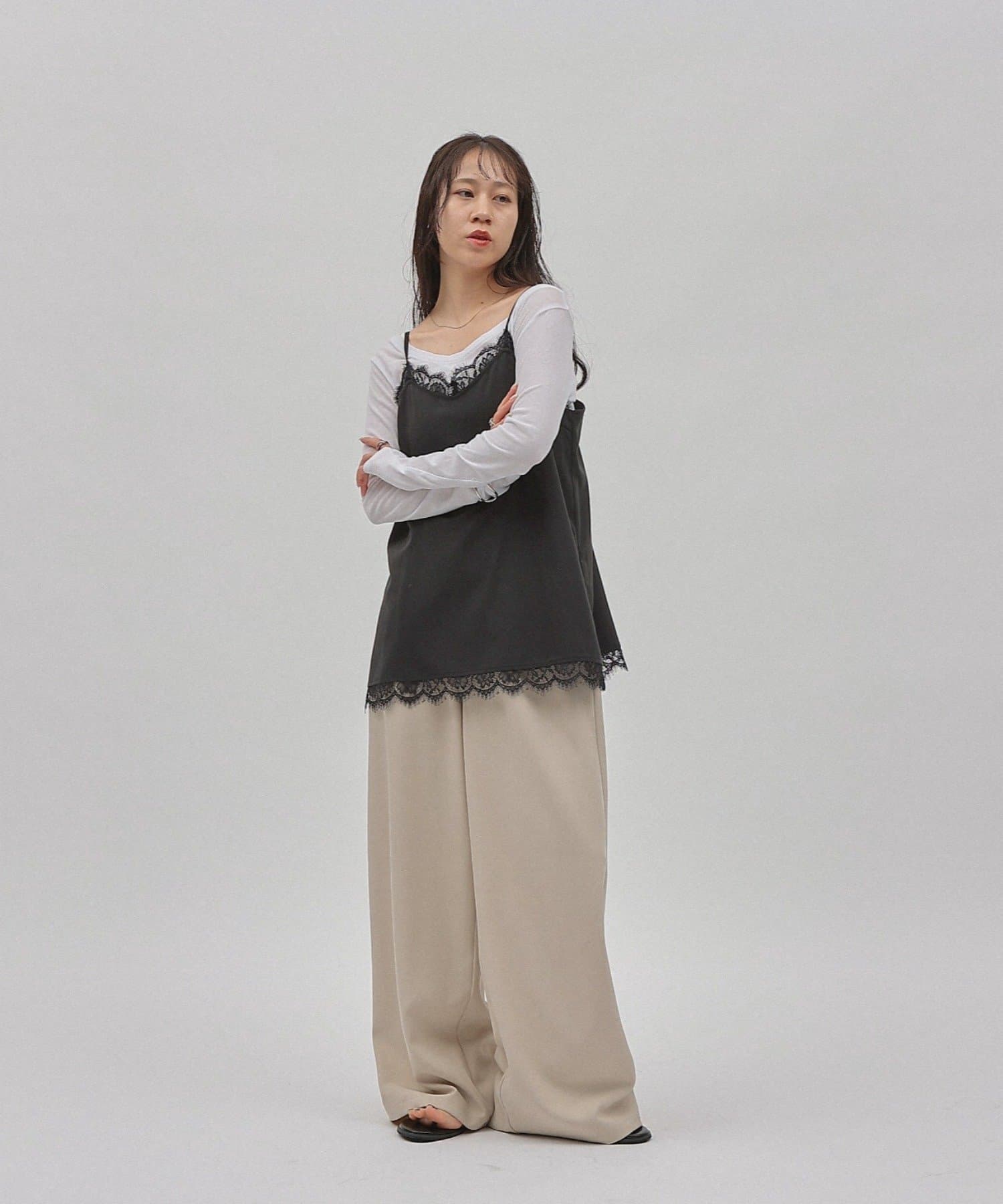 Tシャツなどの上からはもちろん、スエットやカーディガンの下にいれて裾のレースだけ見せるコーディネートもトレンド感が取り入れられてオススメです。