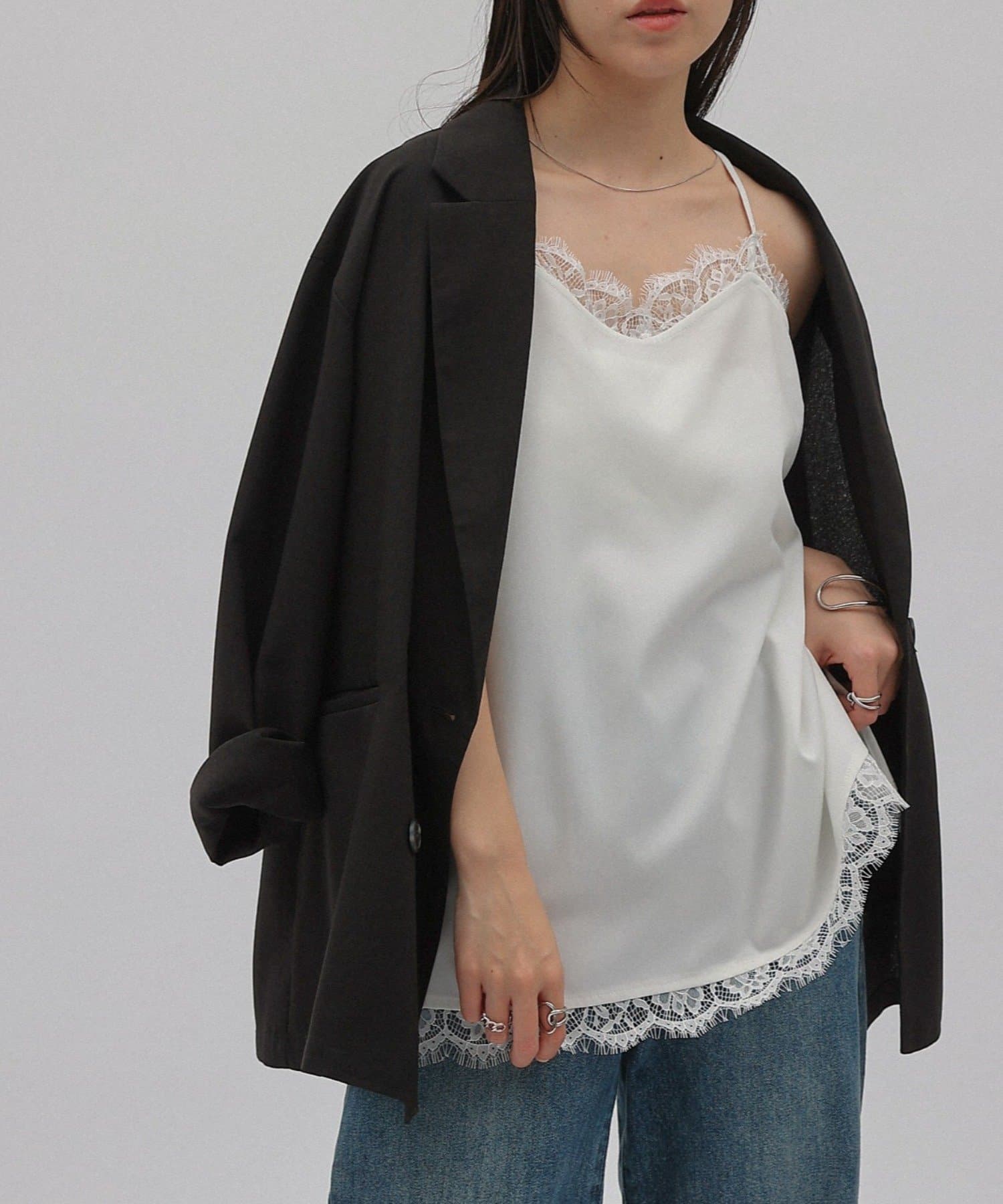 合わせるだけでぐっとトレンド感UPができる万能レースキャミチュニックです。