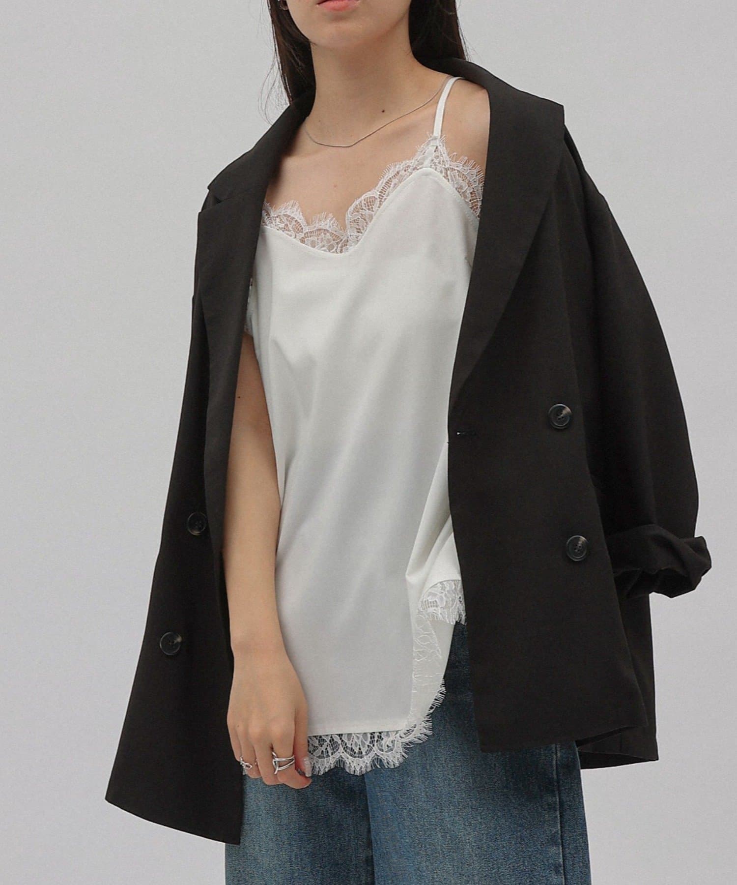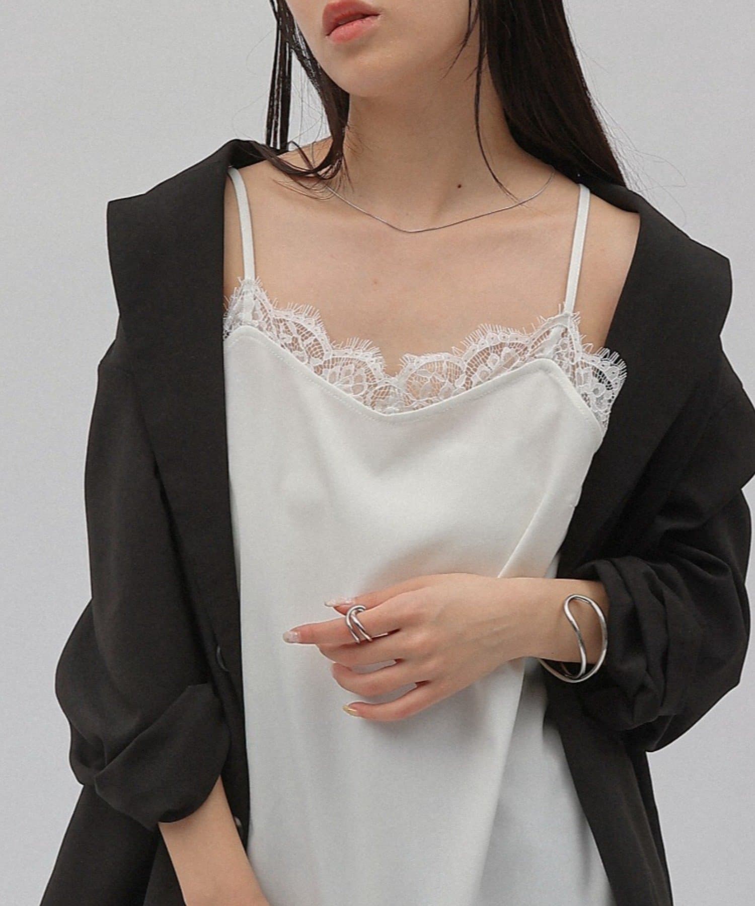 細かく繊細なアイラッシュレースがコーディネートに上品な印象とトレンド感をプラスします。