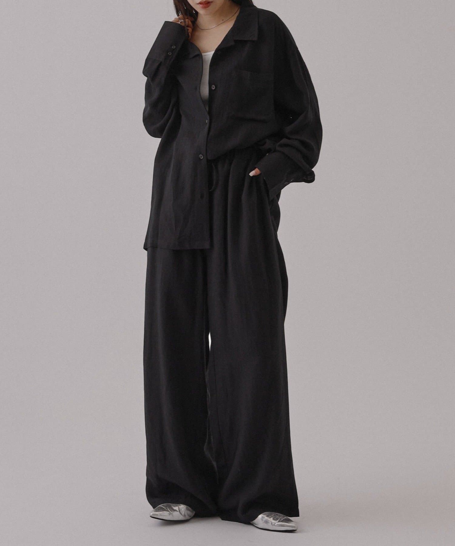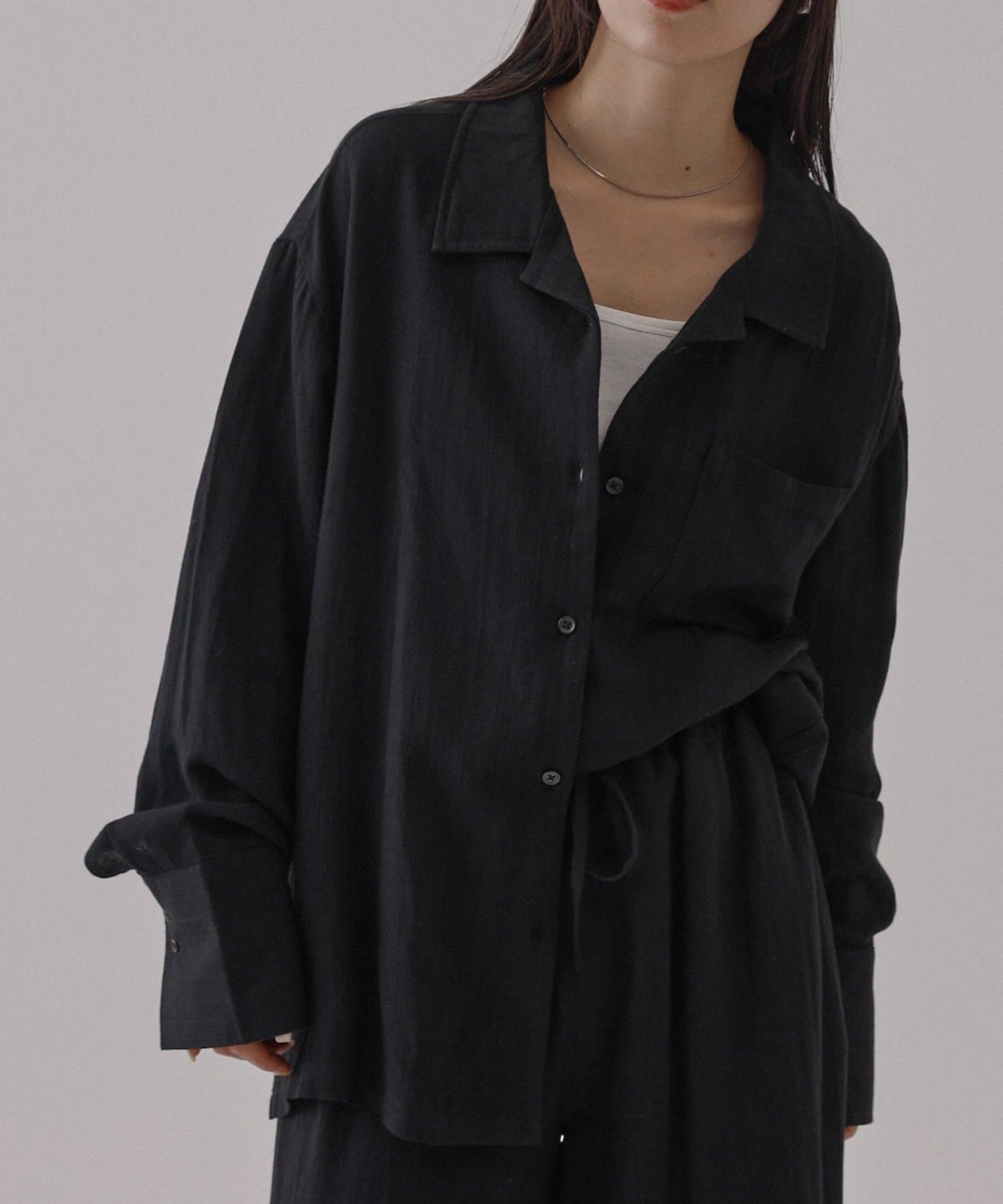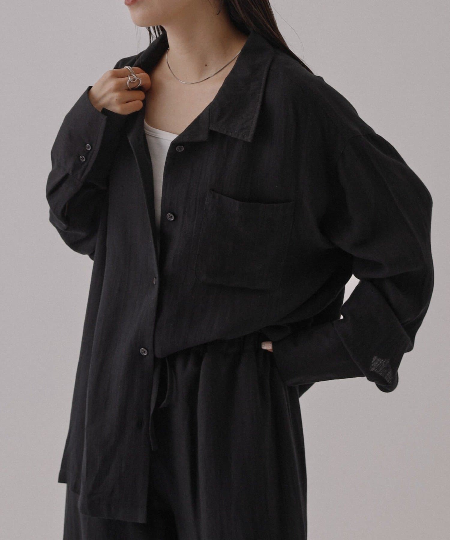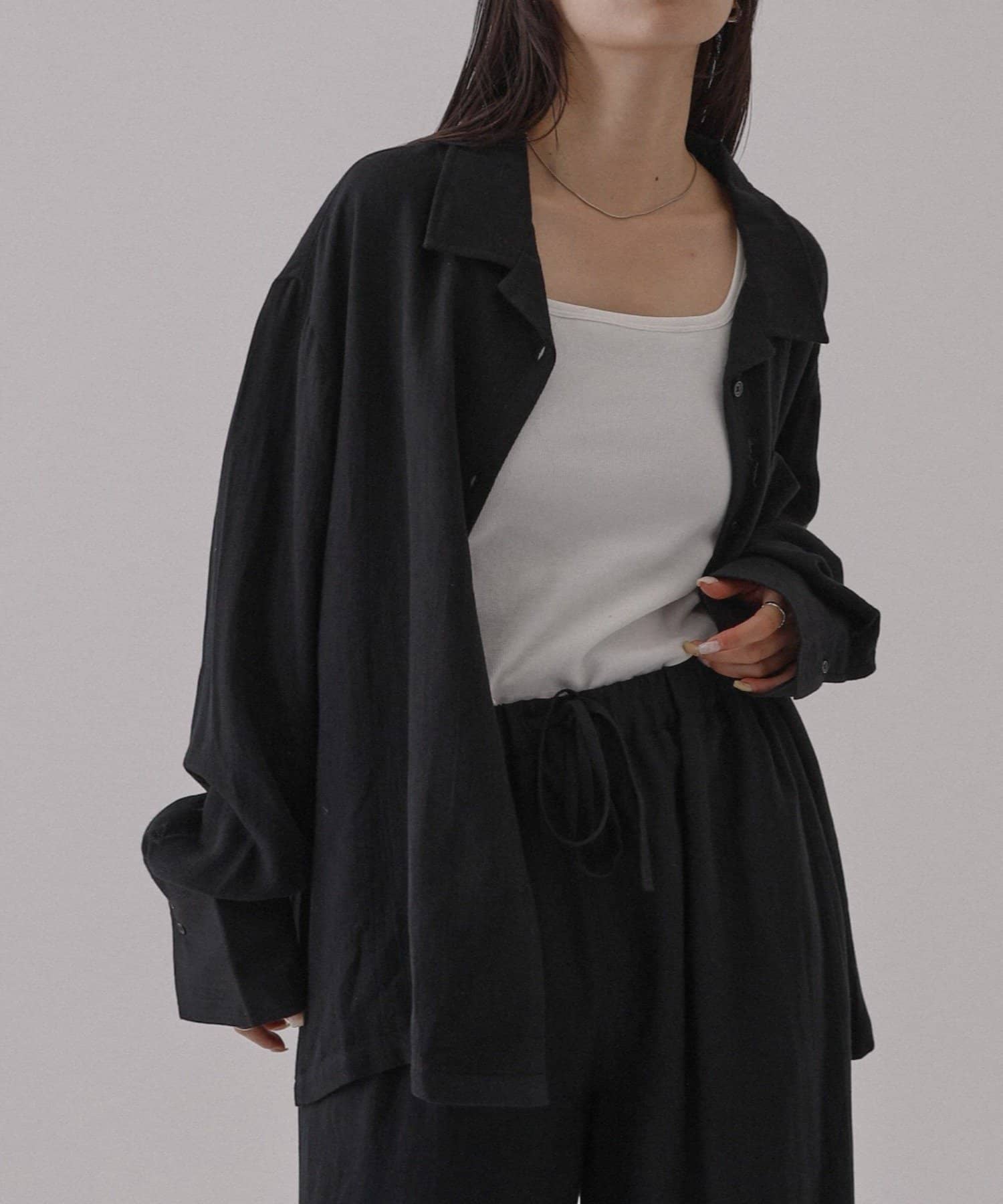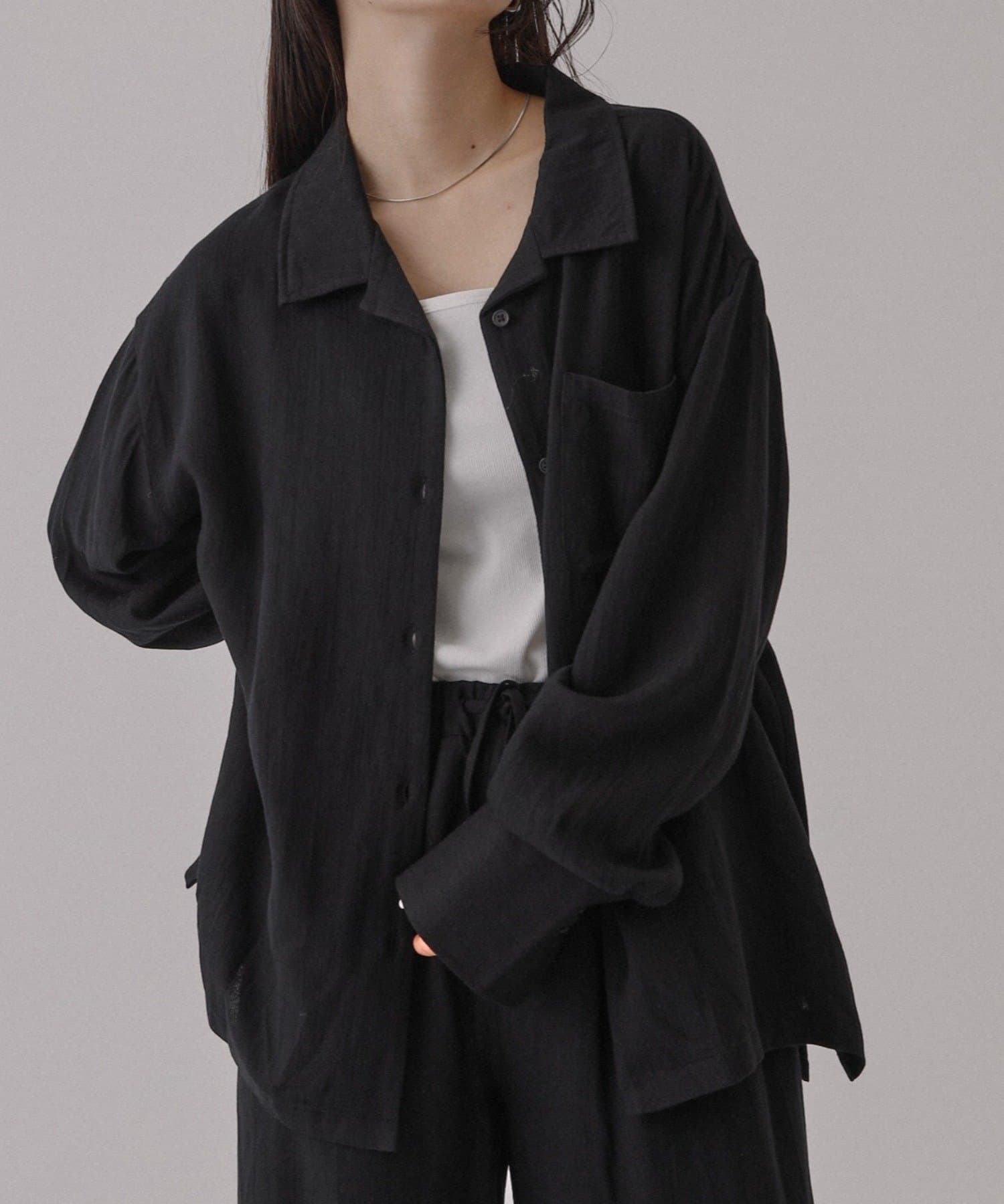 【接触冷感/セットアップ対応】リネンライクオープンカラーシャツ