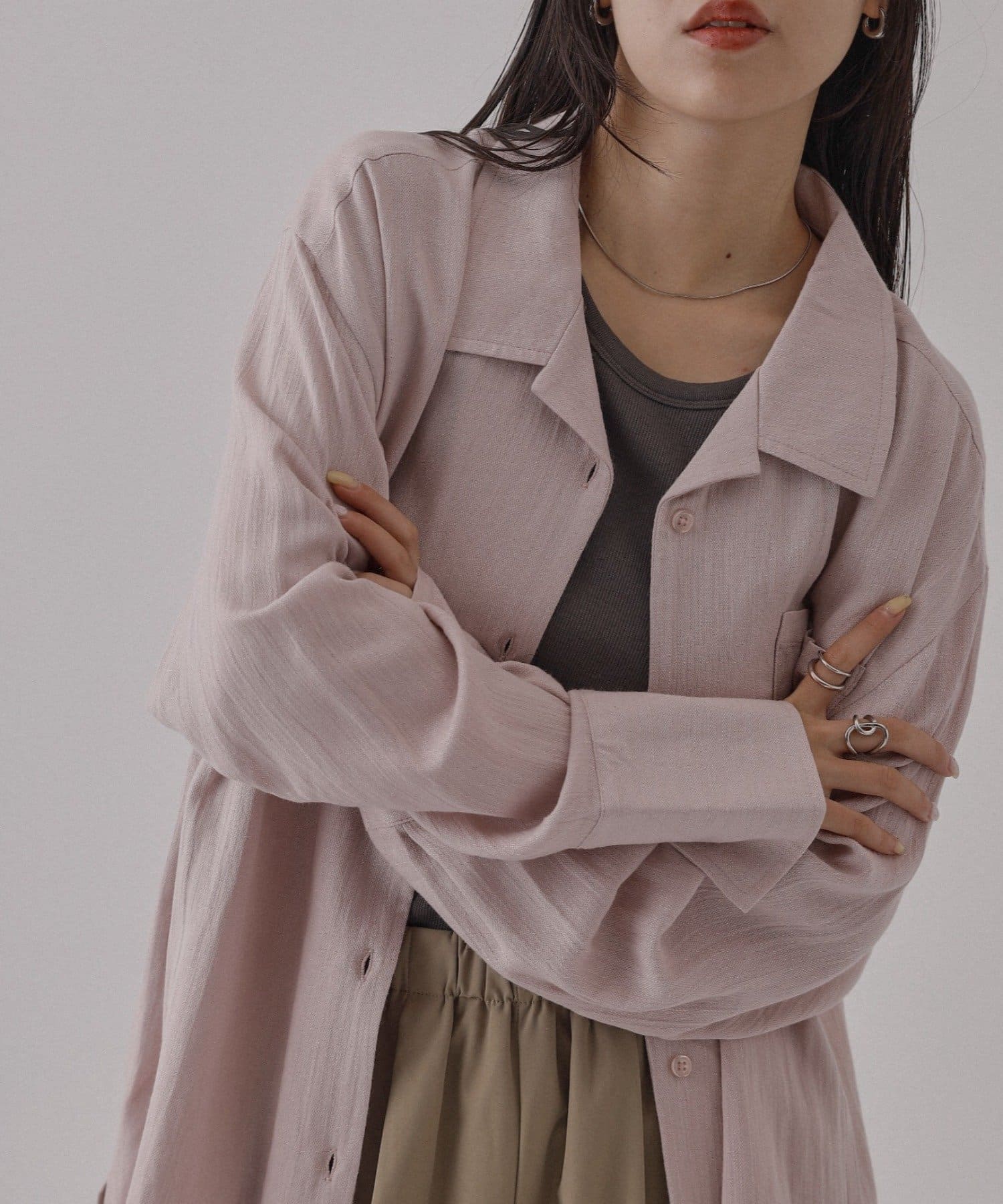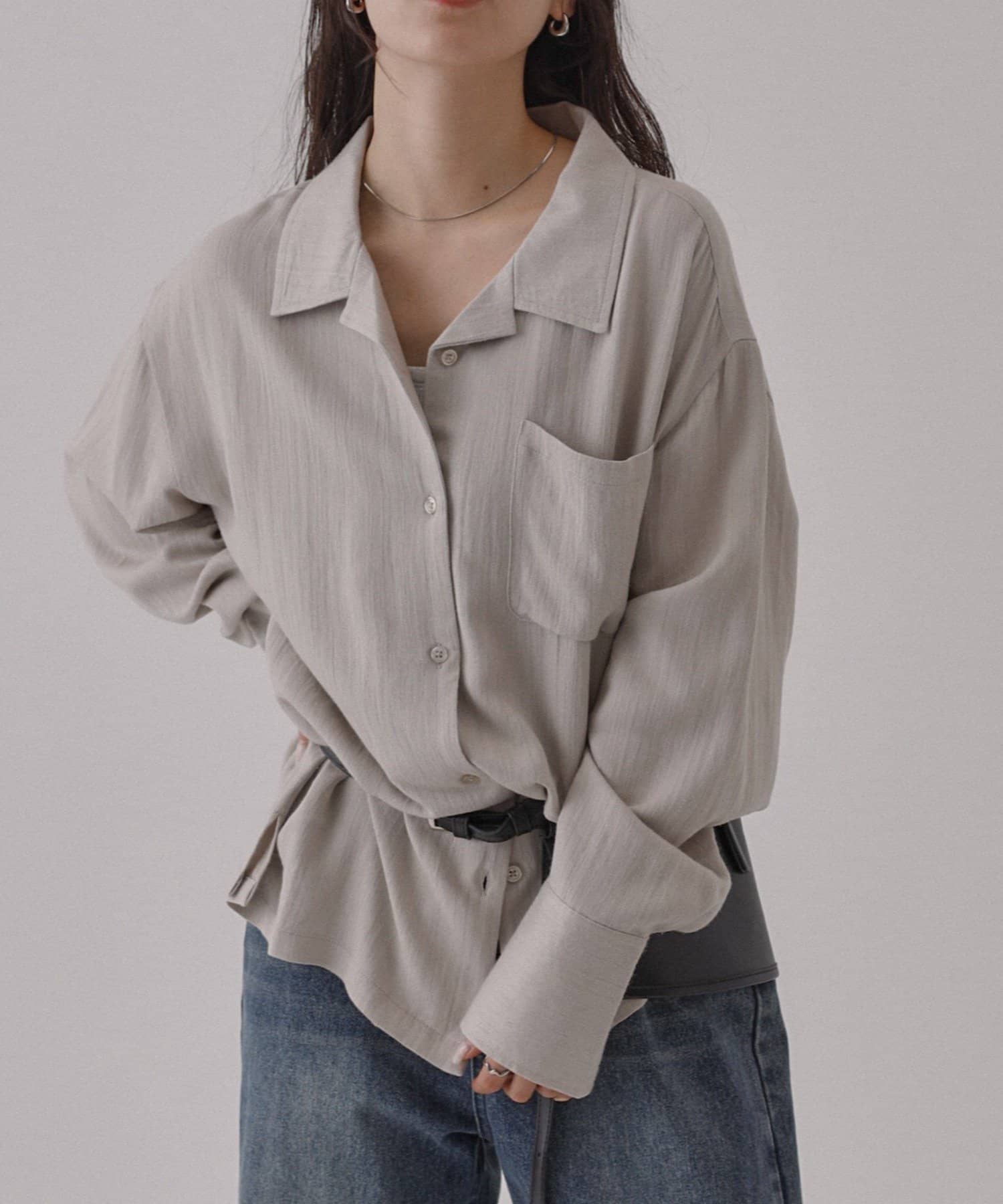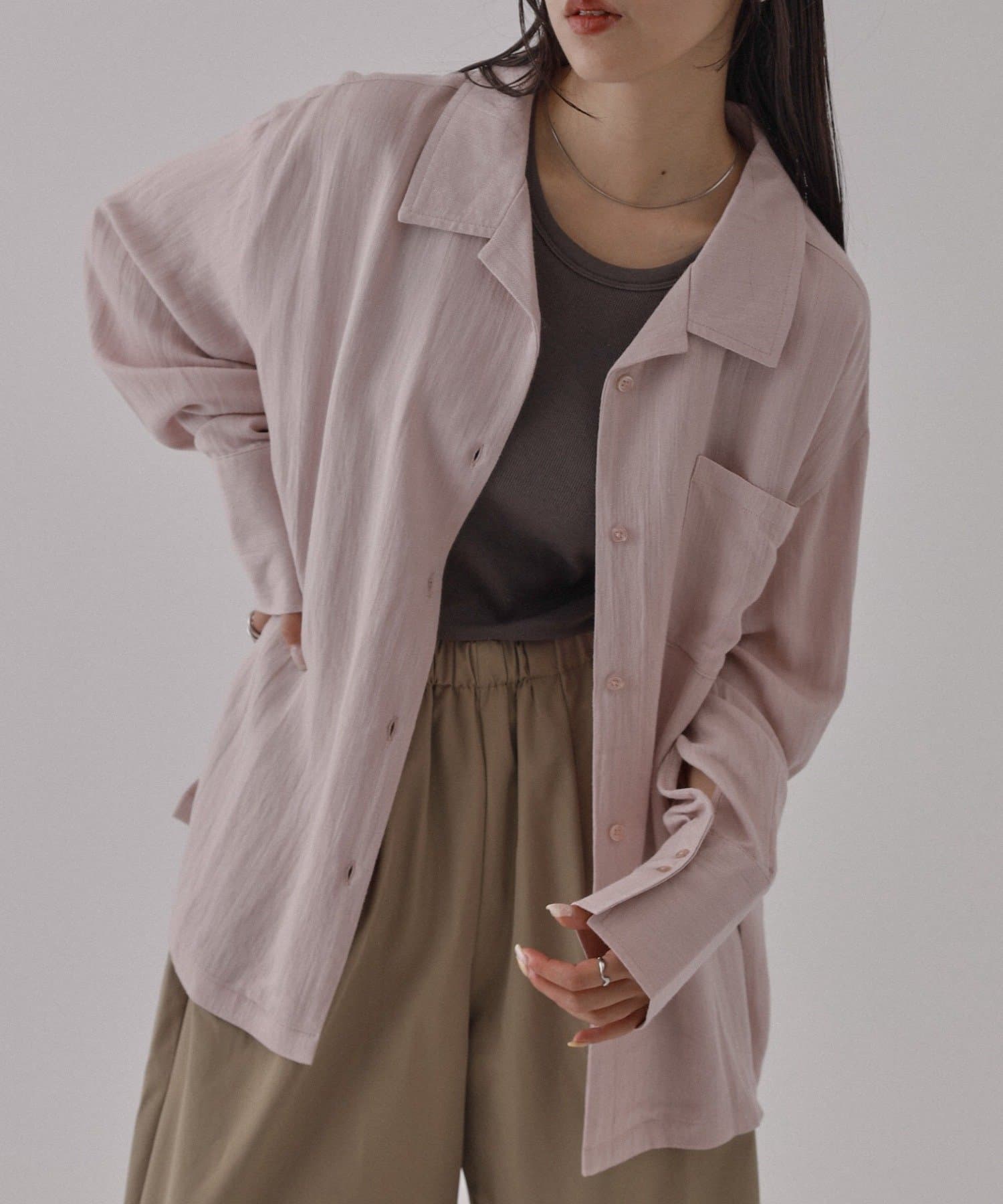 ボタンを開けて羽織りでも、閉じてトップスとしても使っていただける万能アイテムになっています。