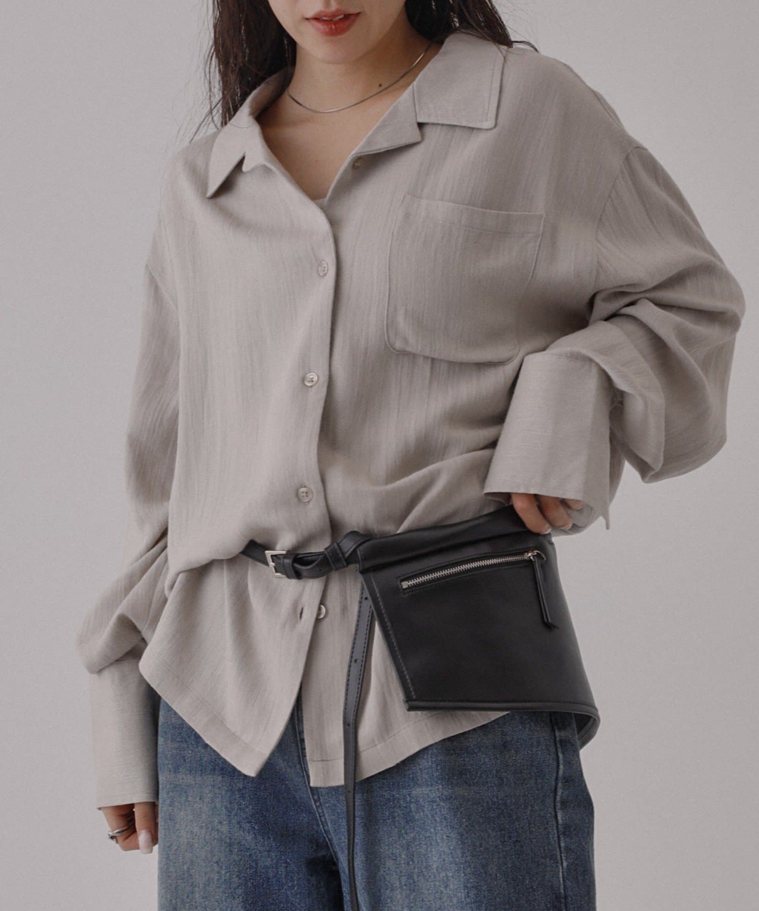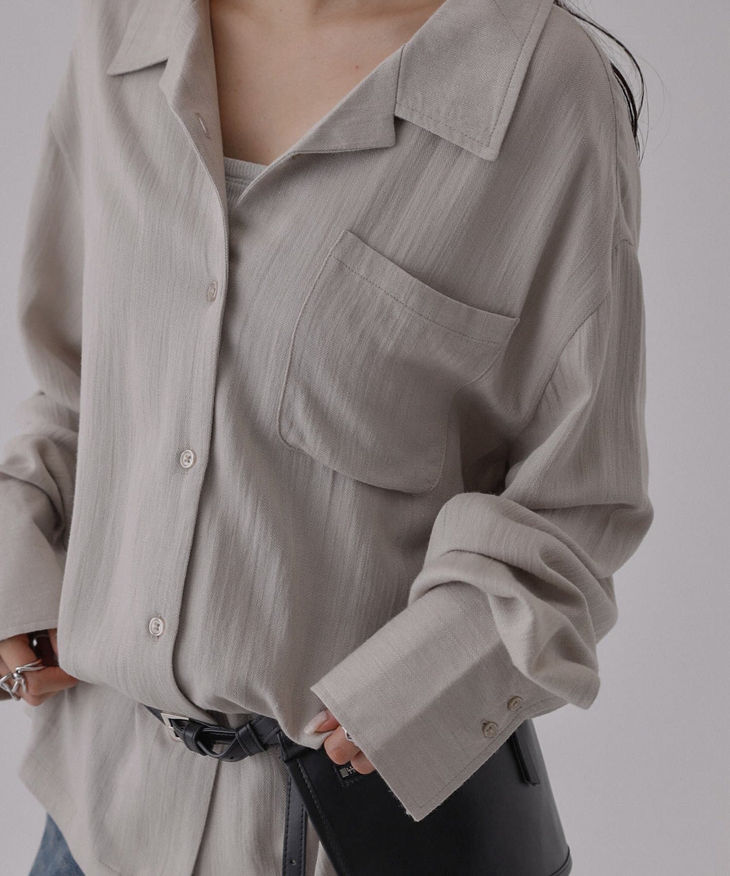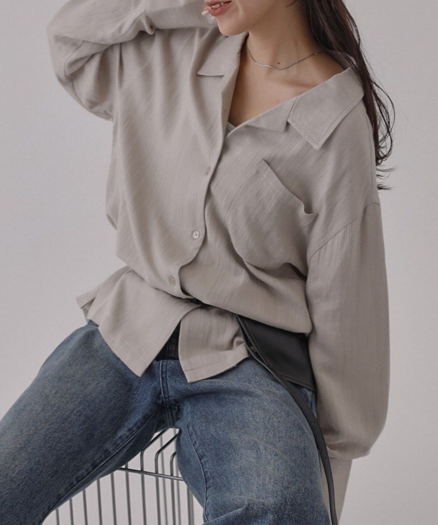 ボタンを開けて羽織りでも、閉じてトップスとしても使っていただける万能アイテムになっています。