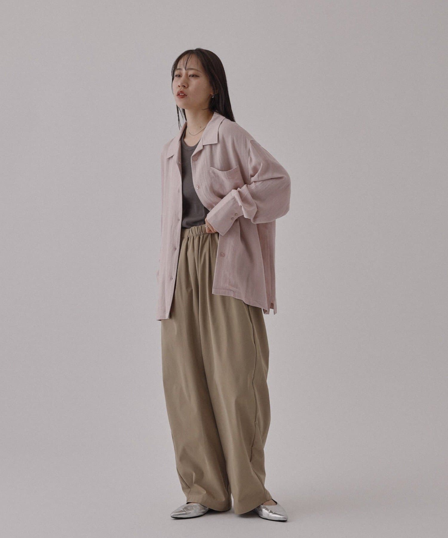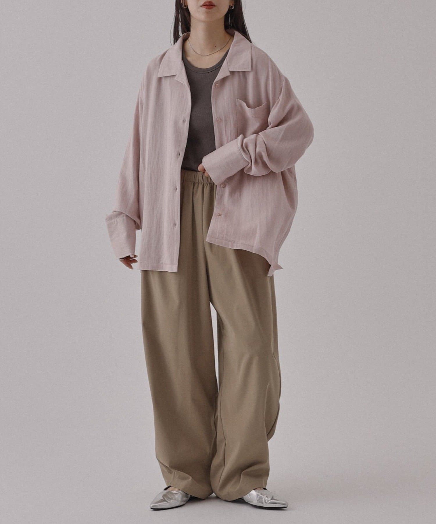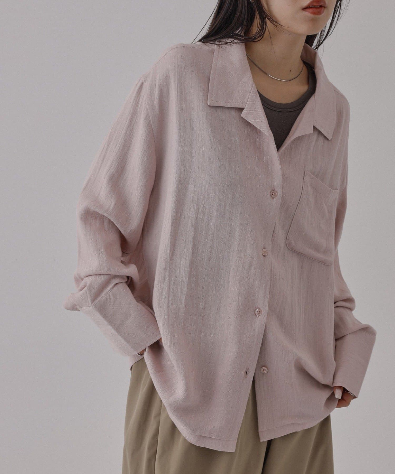 【リネンライク素材で暑い日でもさらっと合わせやすいオープンカラーシャツ】