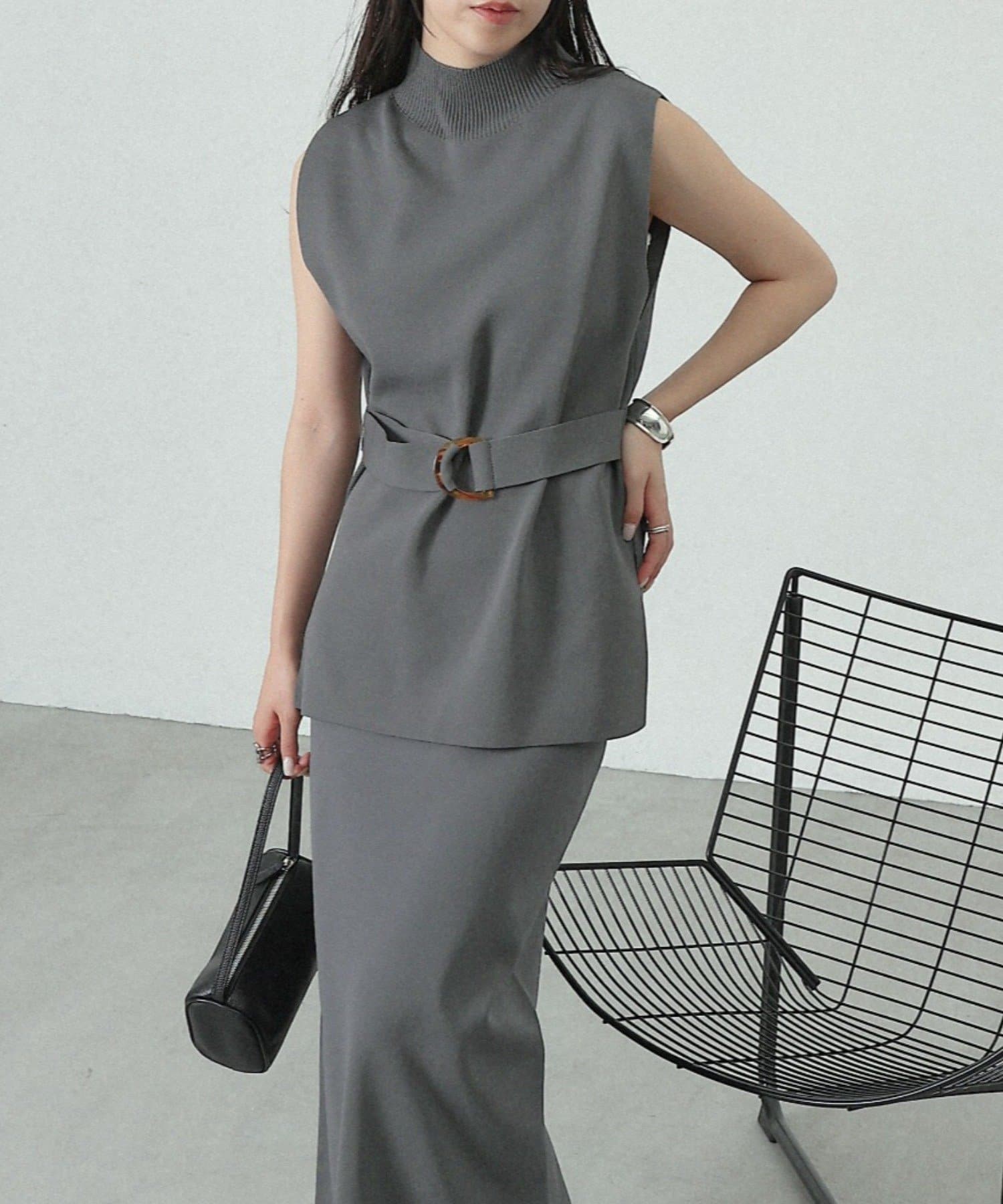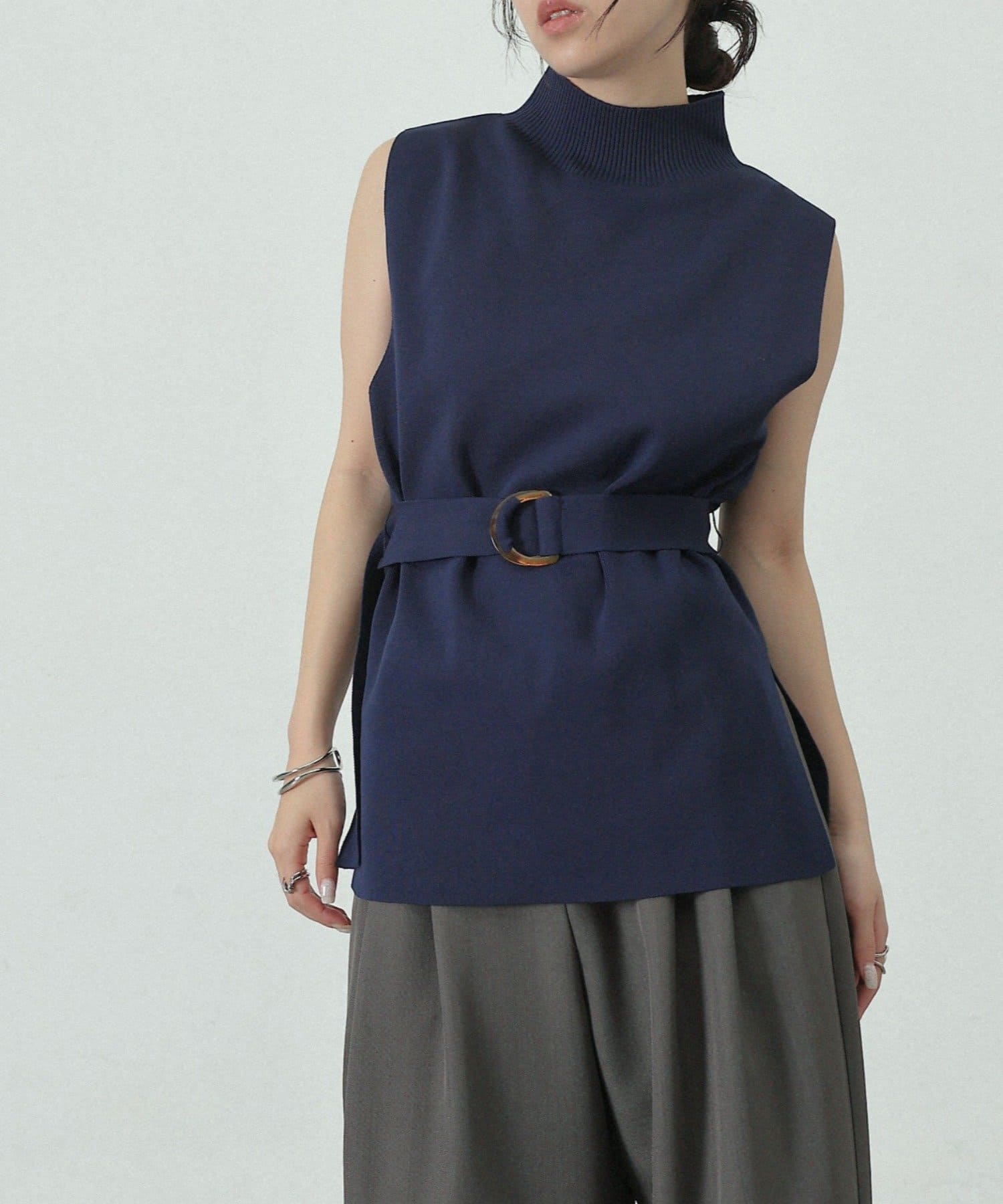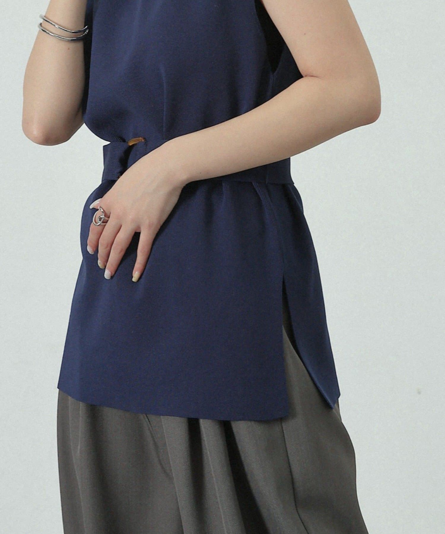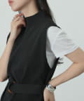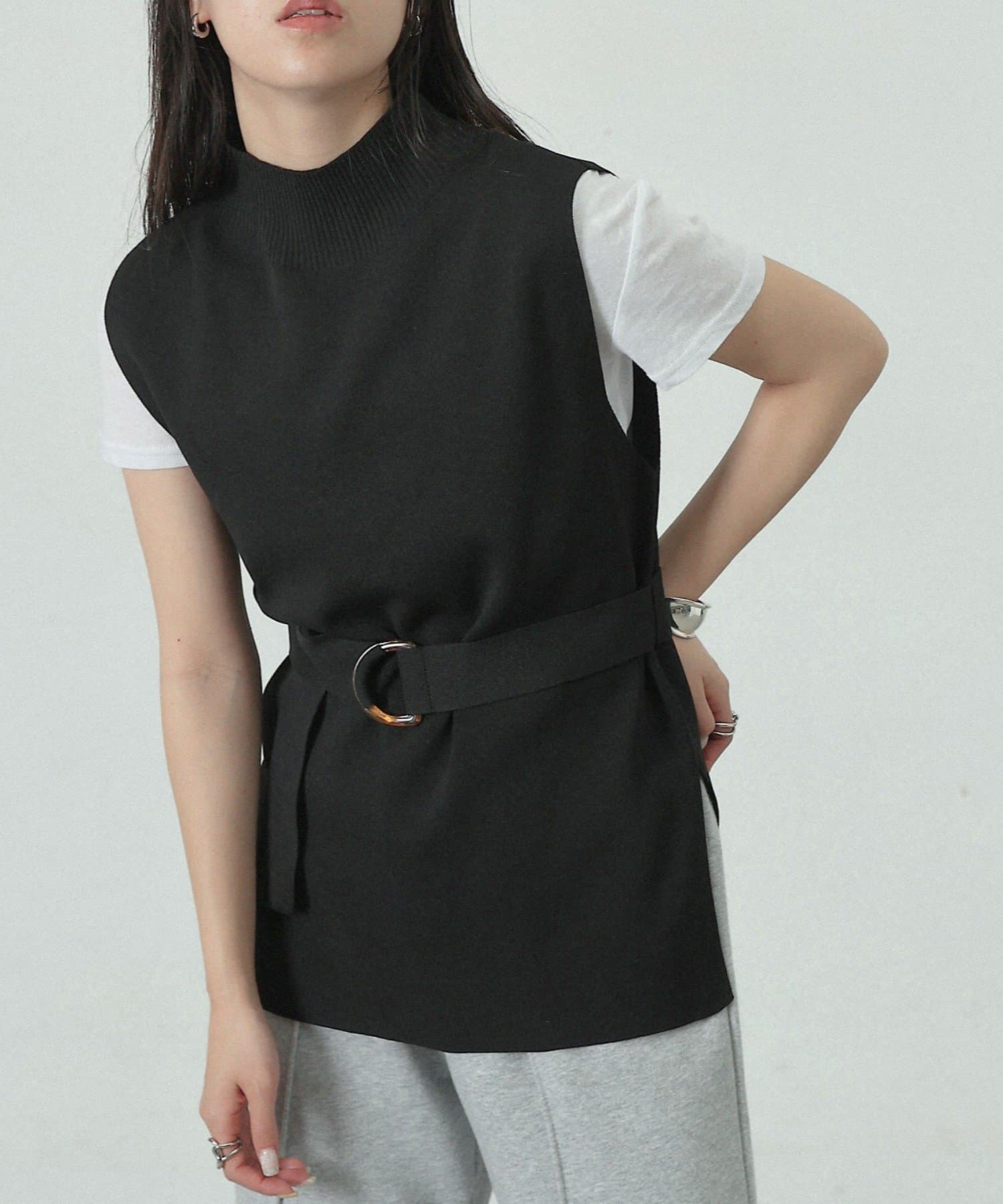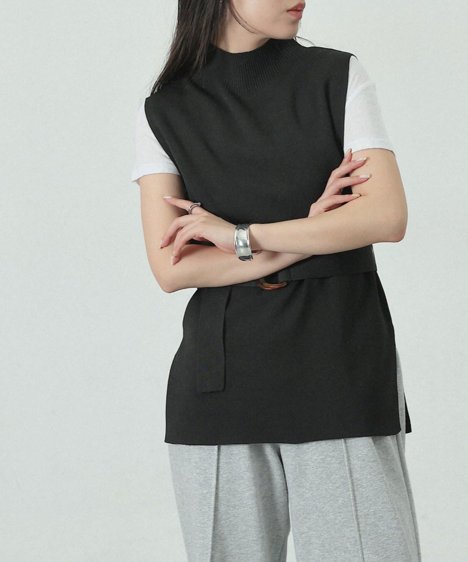 【リバイバル/新色追加】エステルヤーンベルト付サイドスリットハイネックベスト
