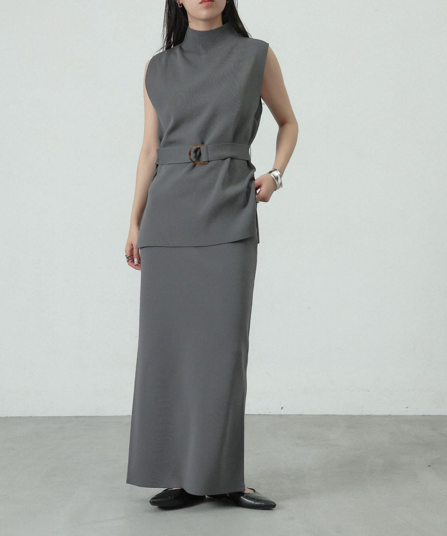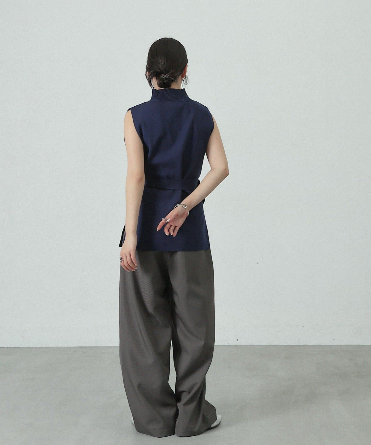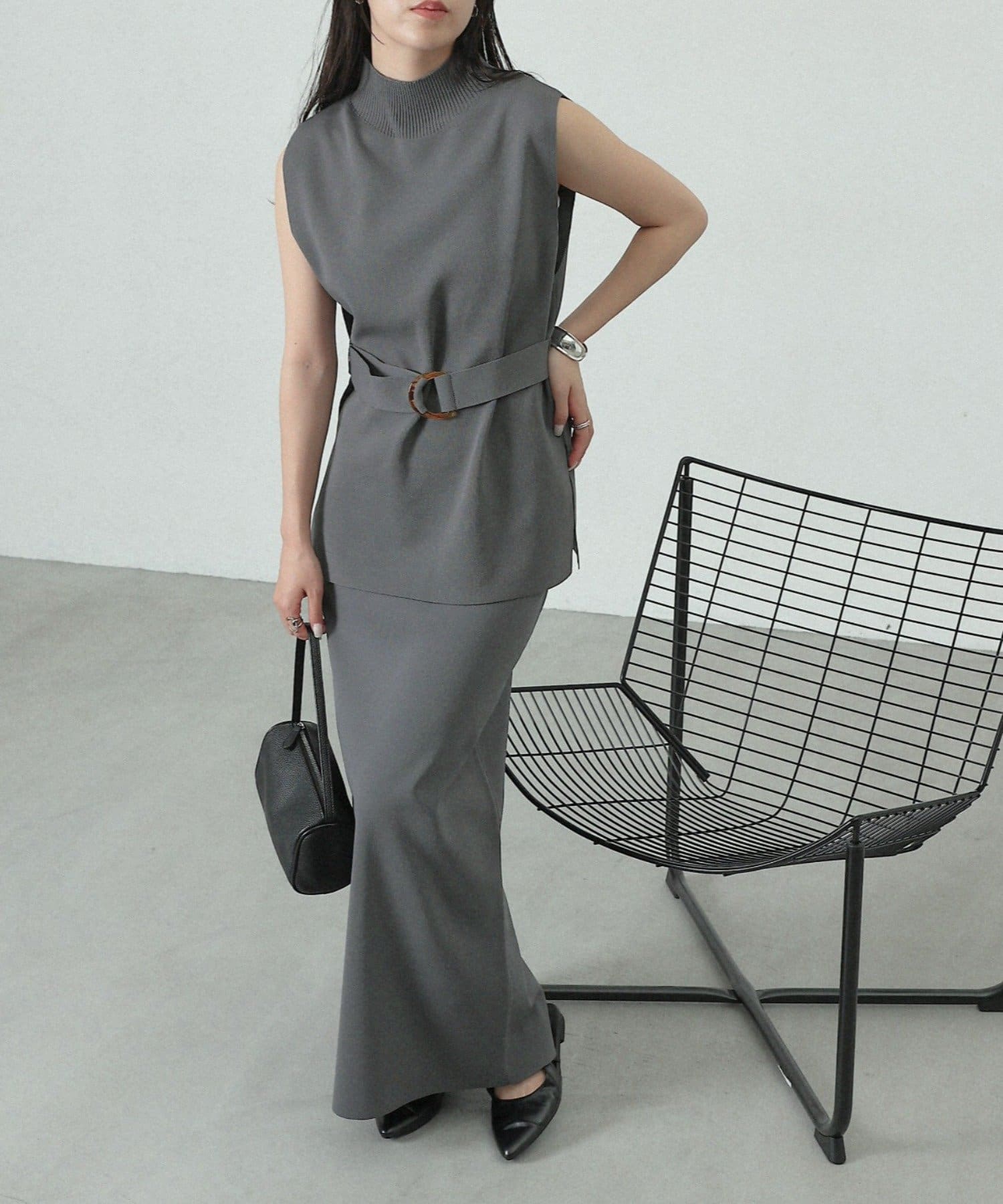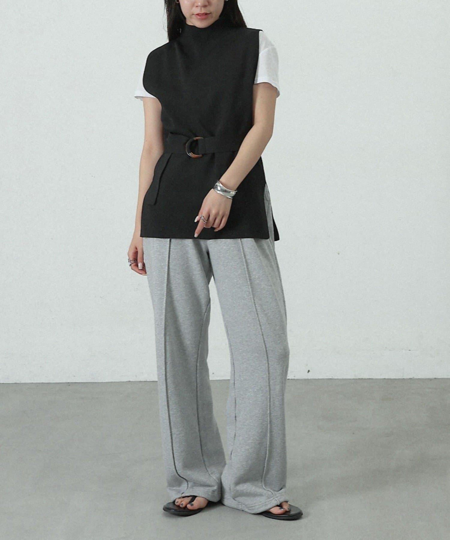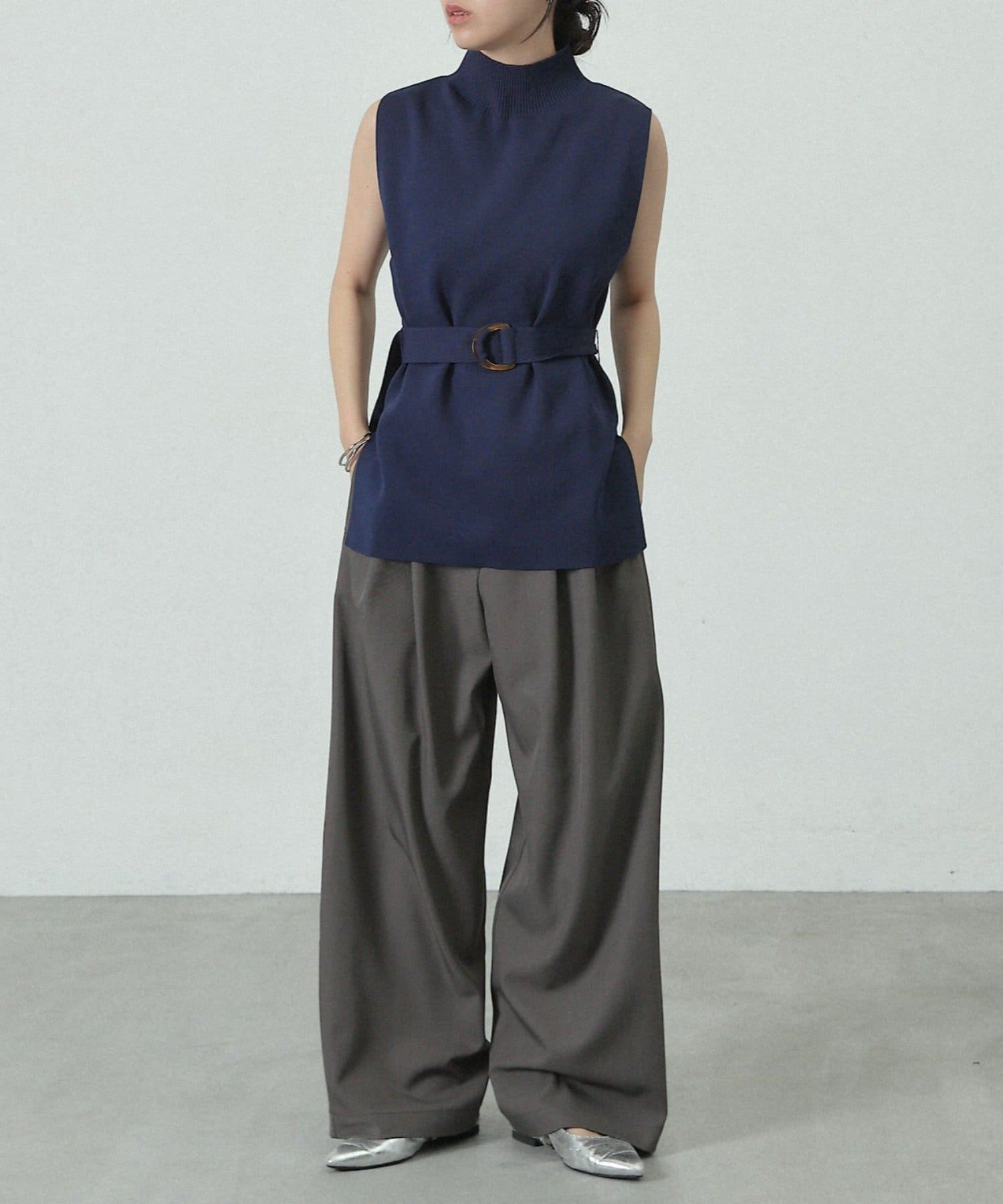 【リバイバル/新色追加】エステルヤーンベルト付サイドスリットハイネックベスト