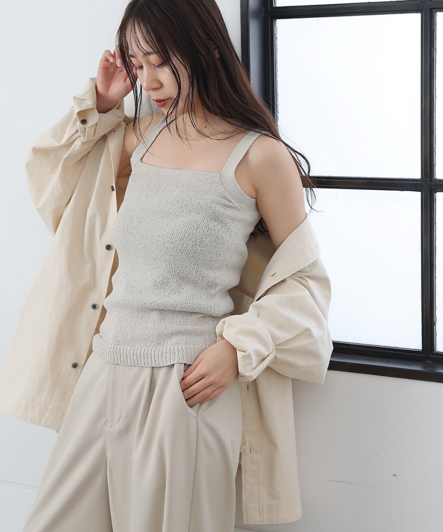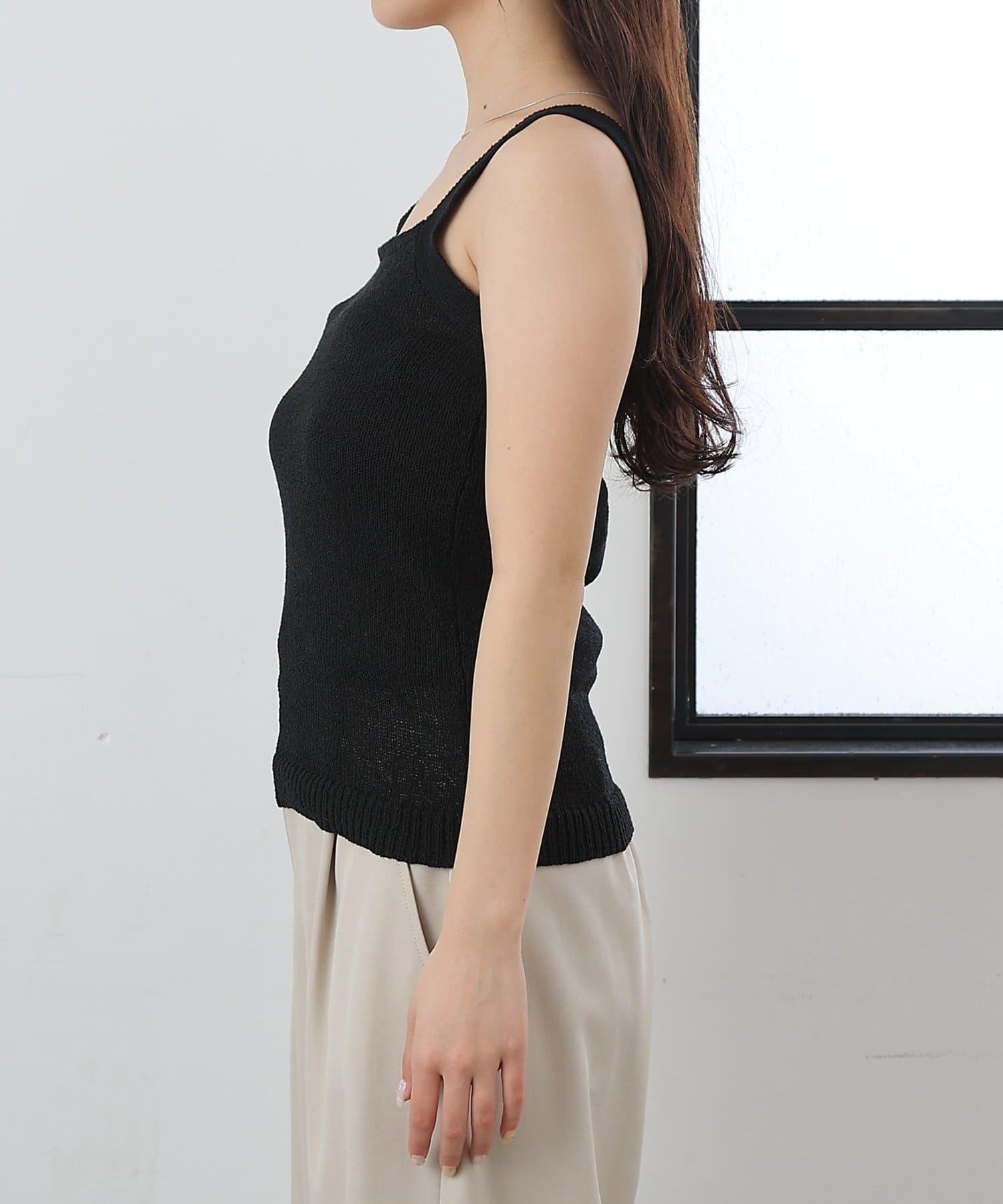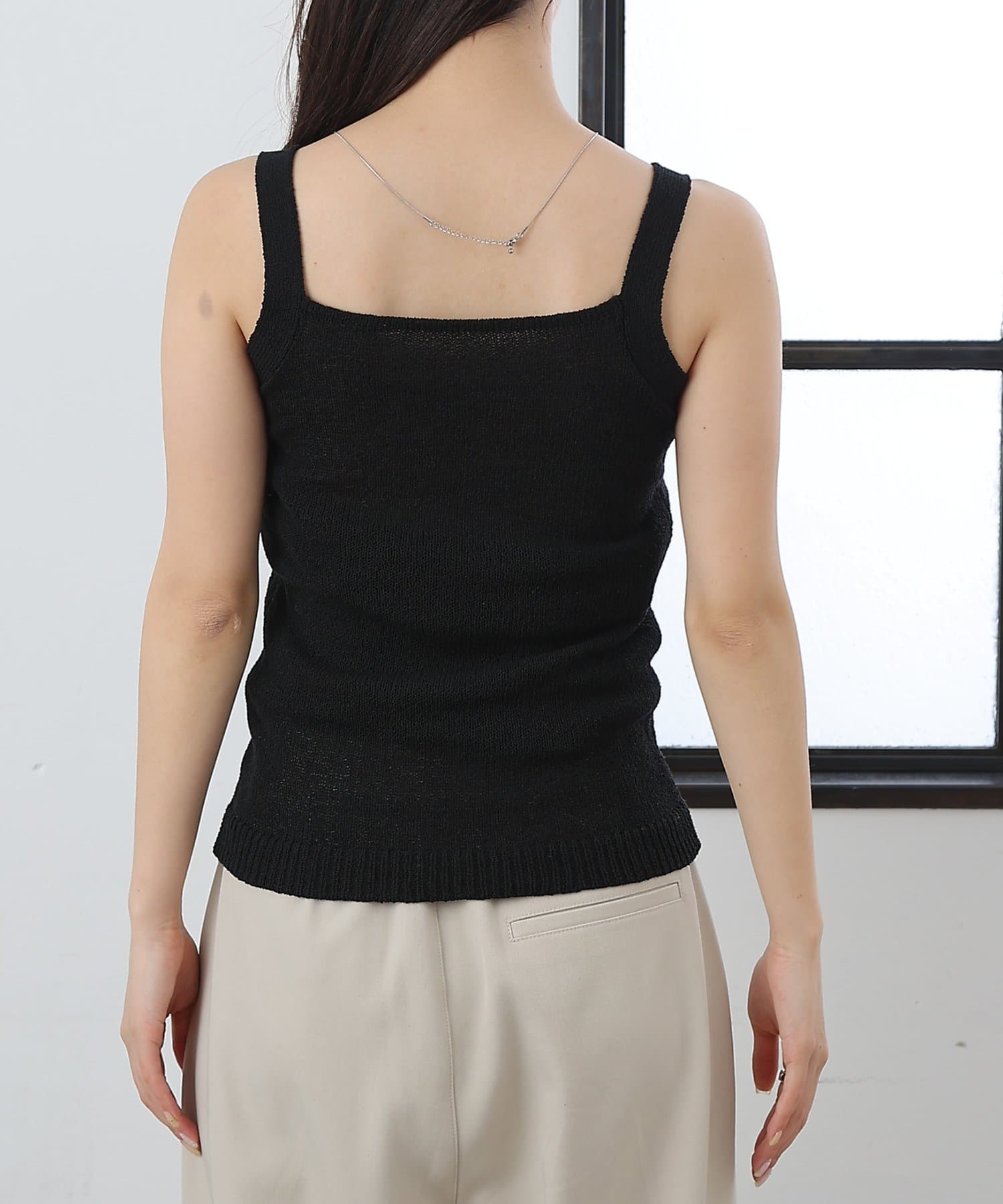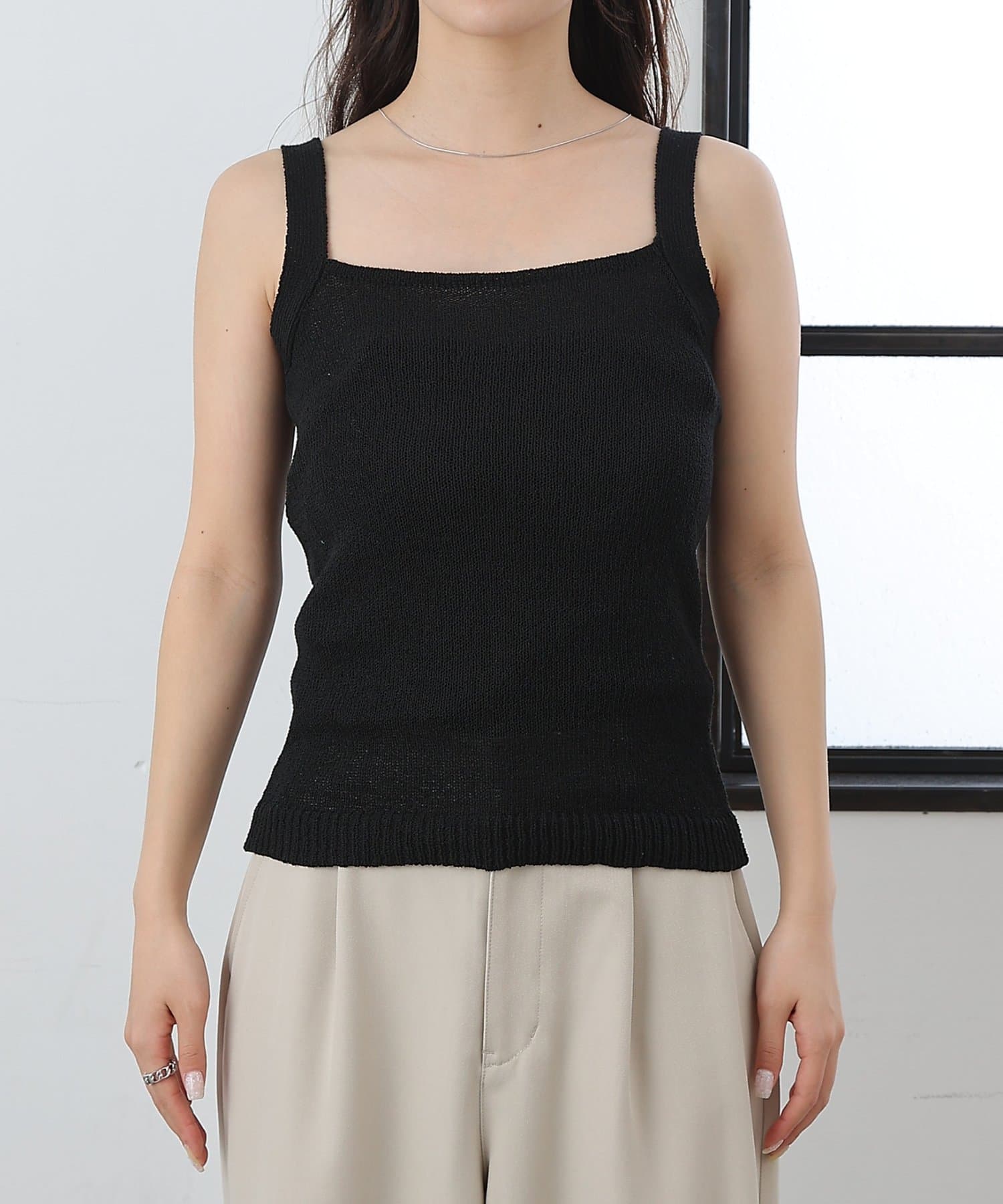 【軽やかなニット素材のスクエアネックのニットタンク】