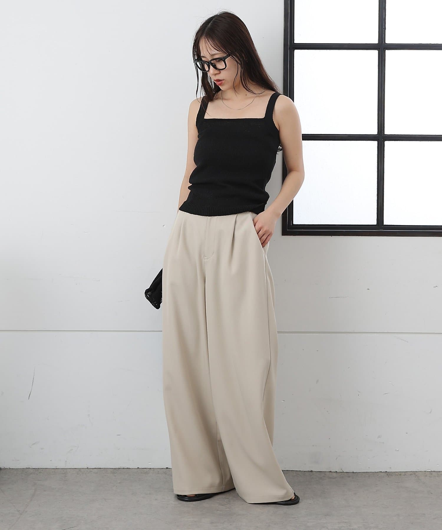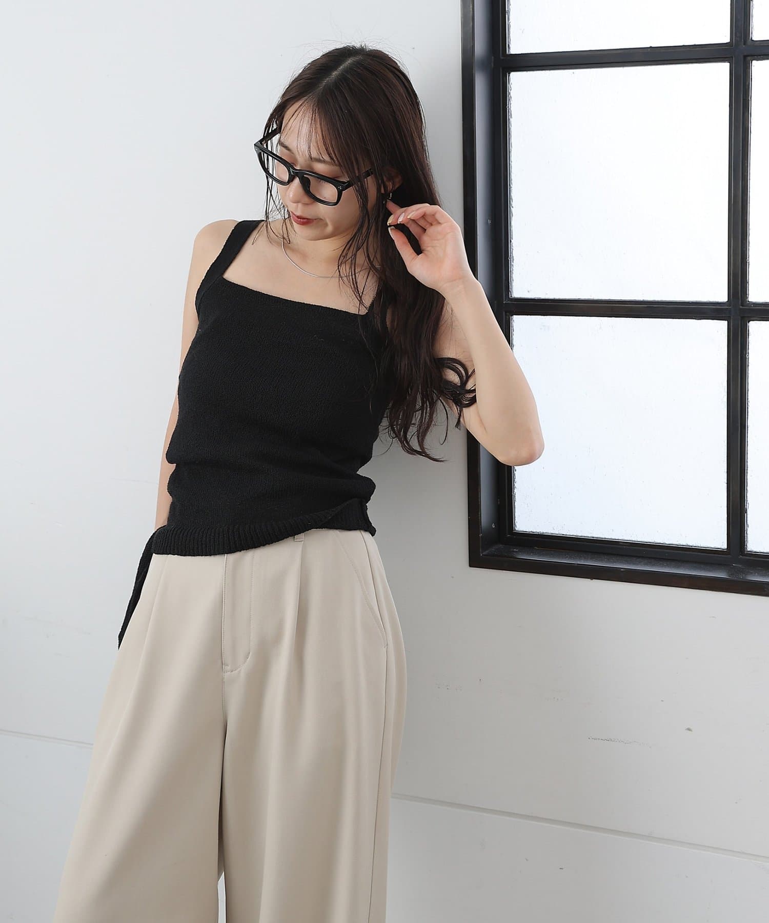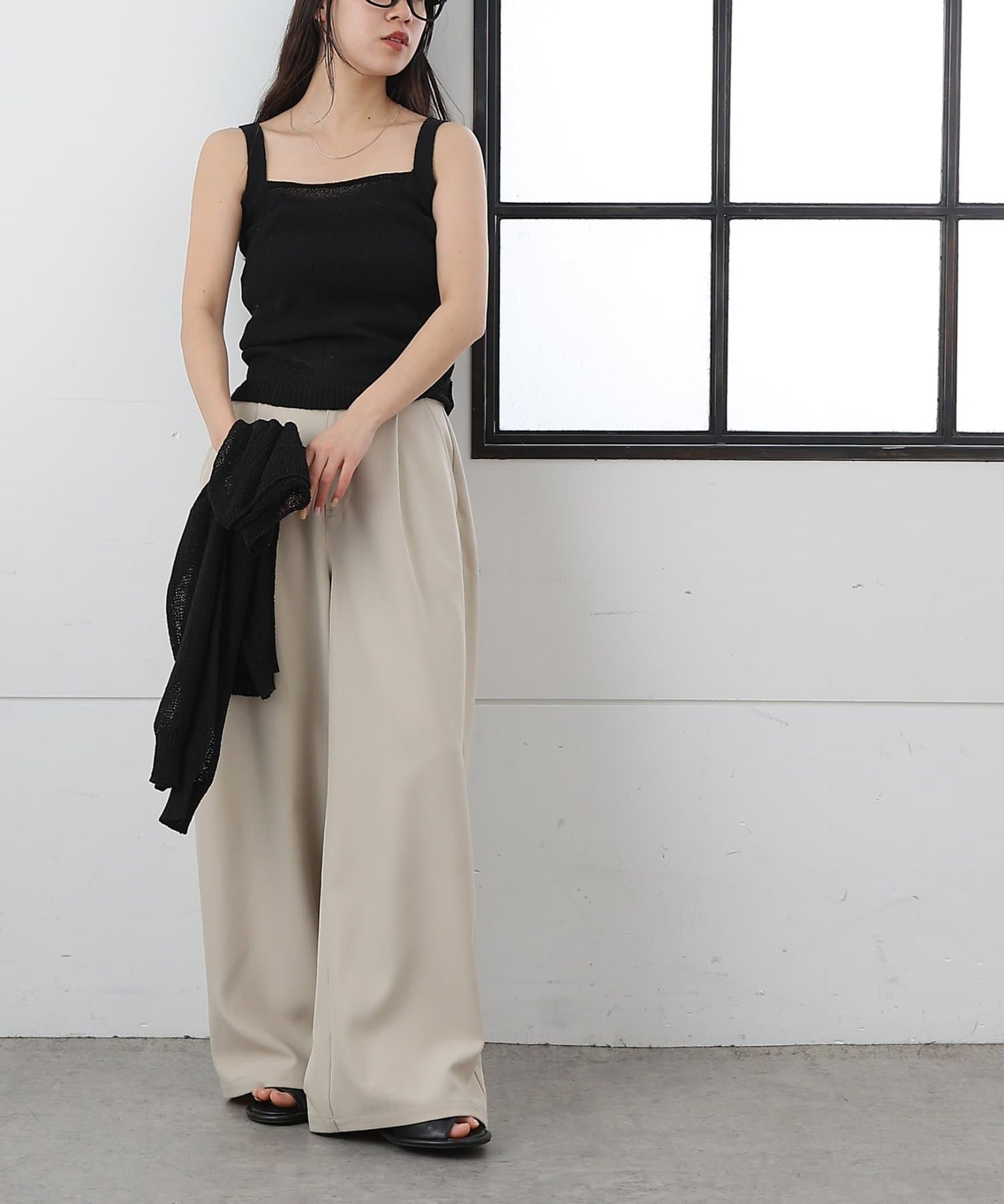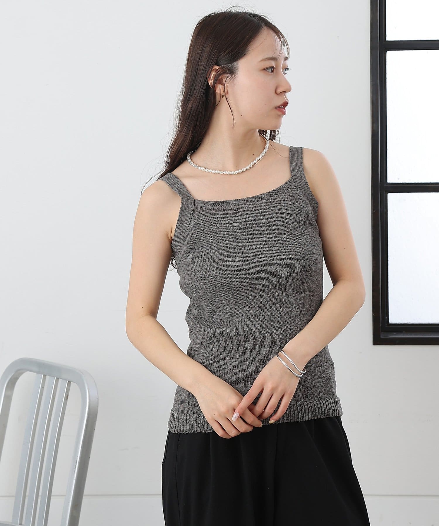【軽やかなニット素材のスクエアネックのニットタンク】