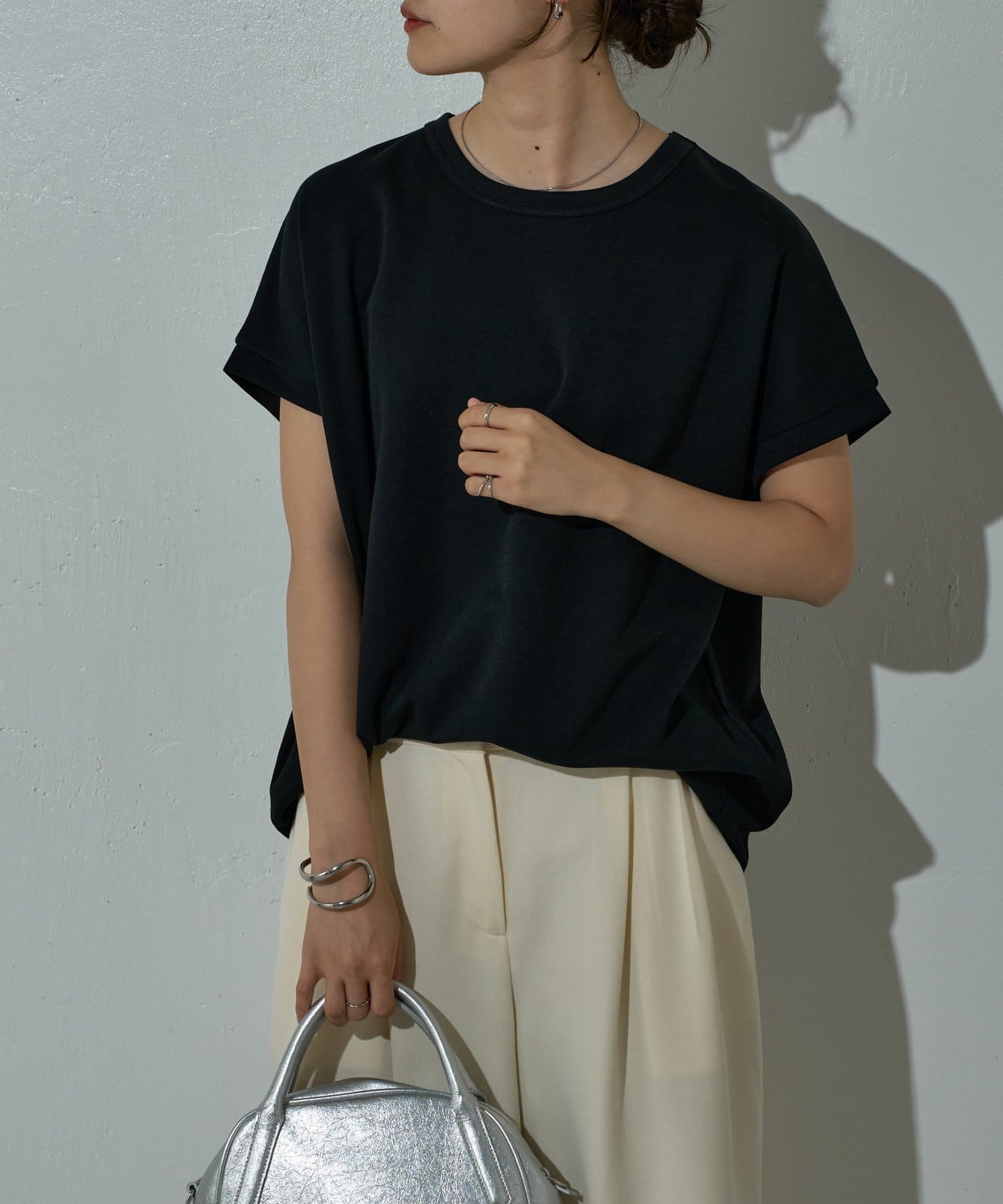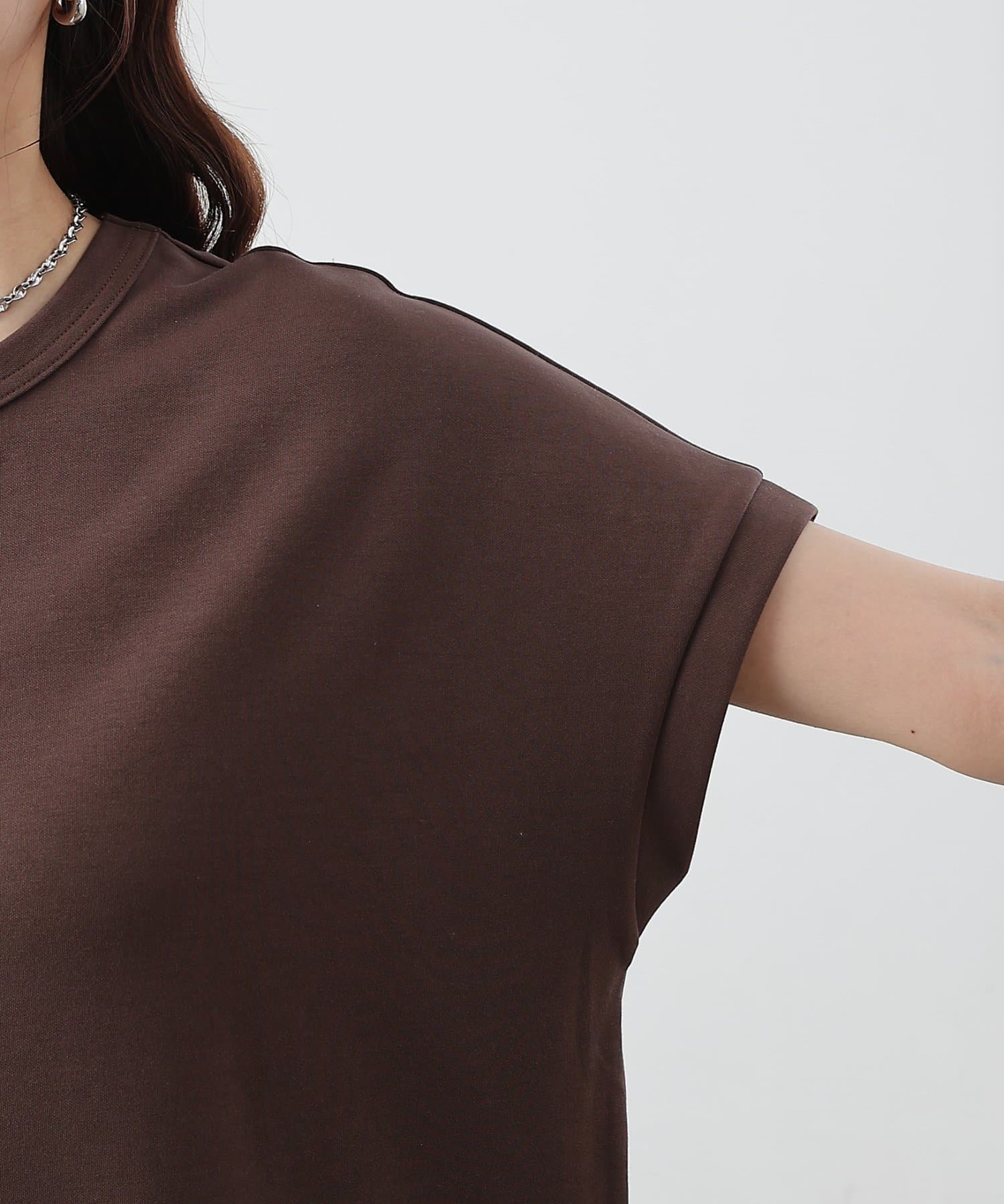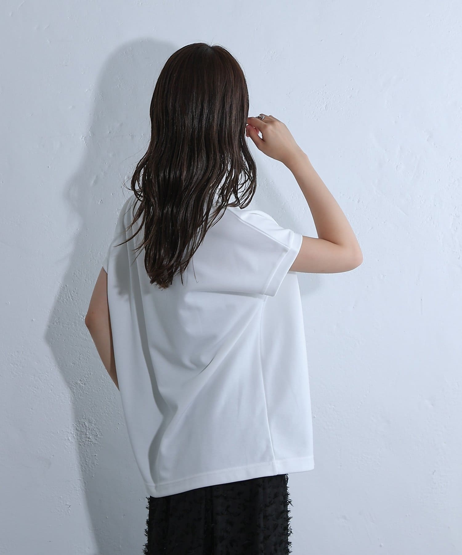 ドロップショルダーシルエットなので肩周りを自然とカバーし華奢見せも叶うアイテム。