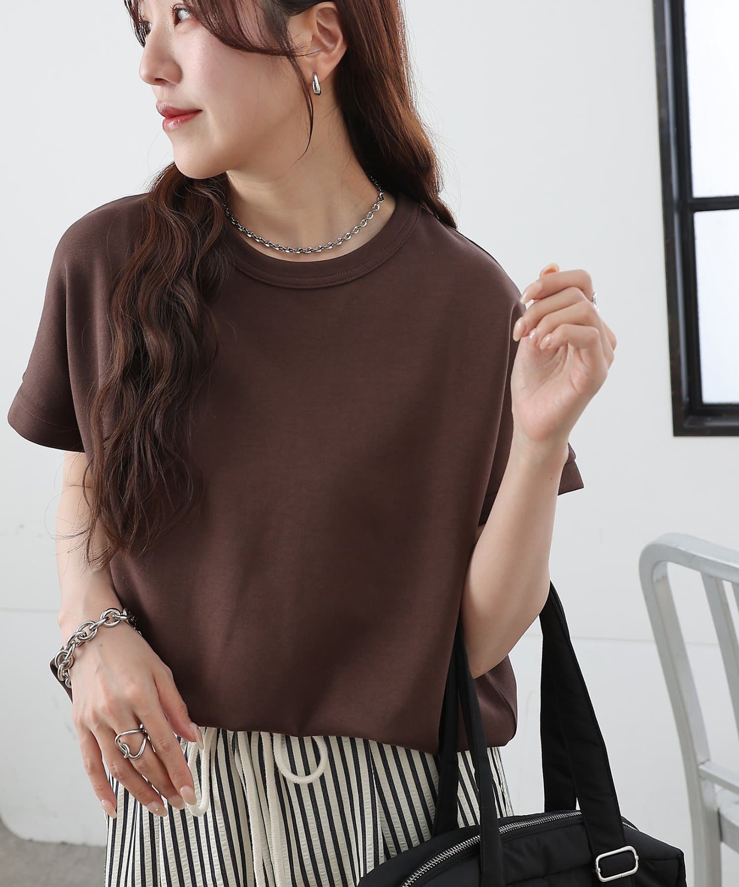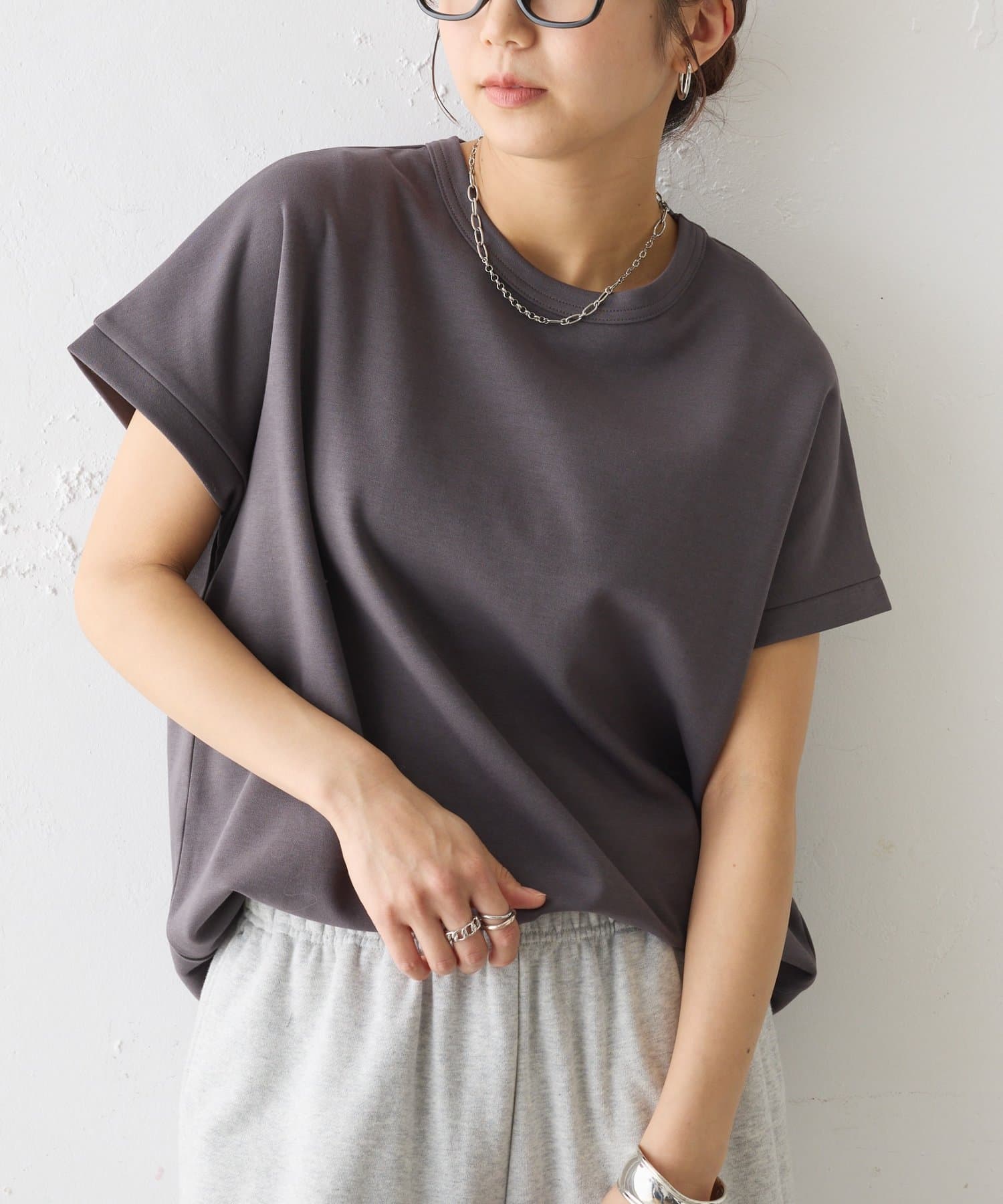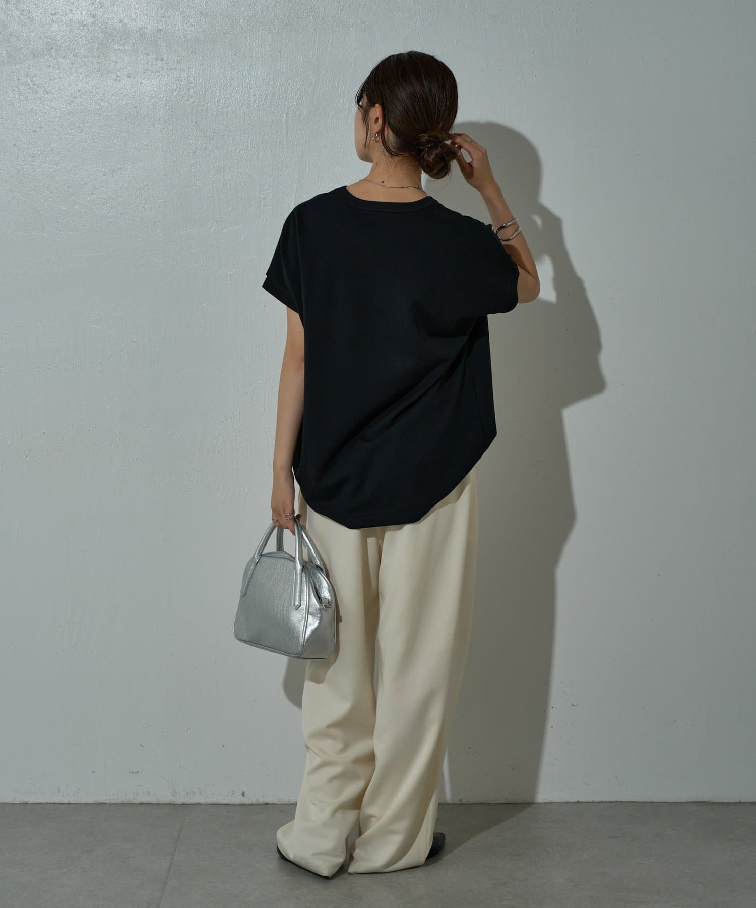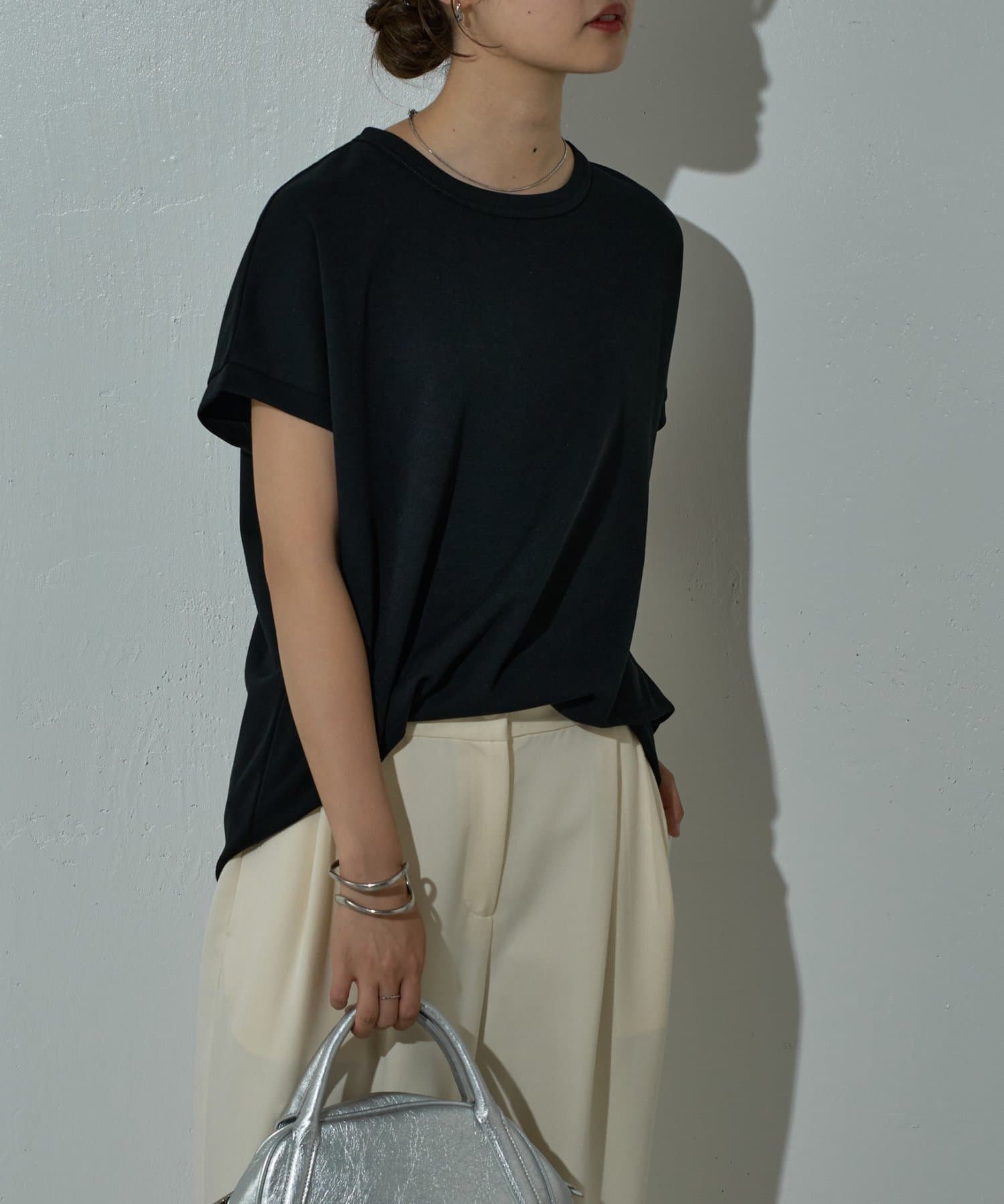 ドロップショルダーシルエットなので肩周りを自然とカバーし華奢見せも叶うアイテム。