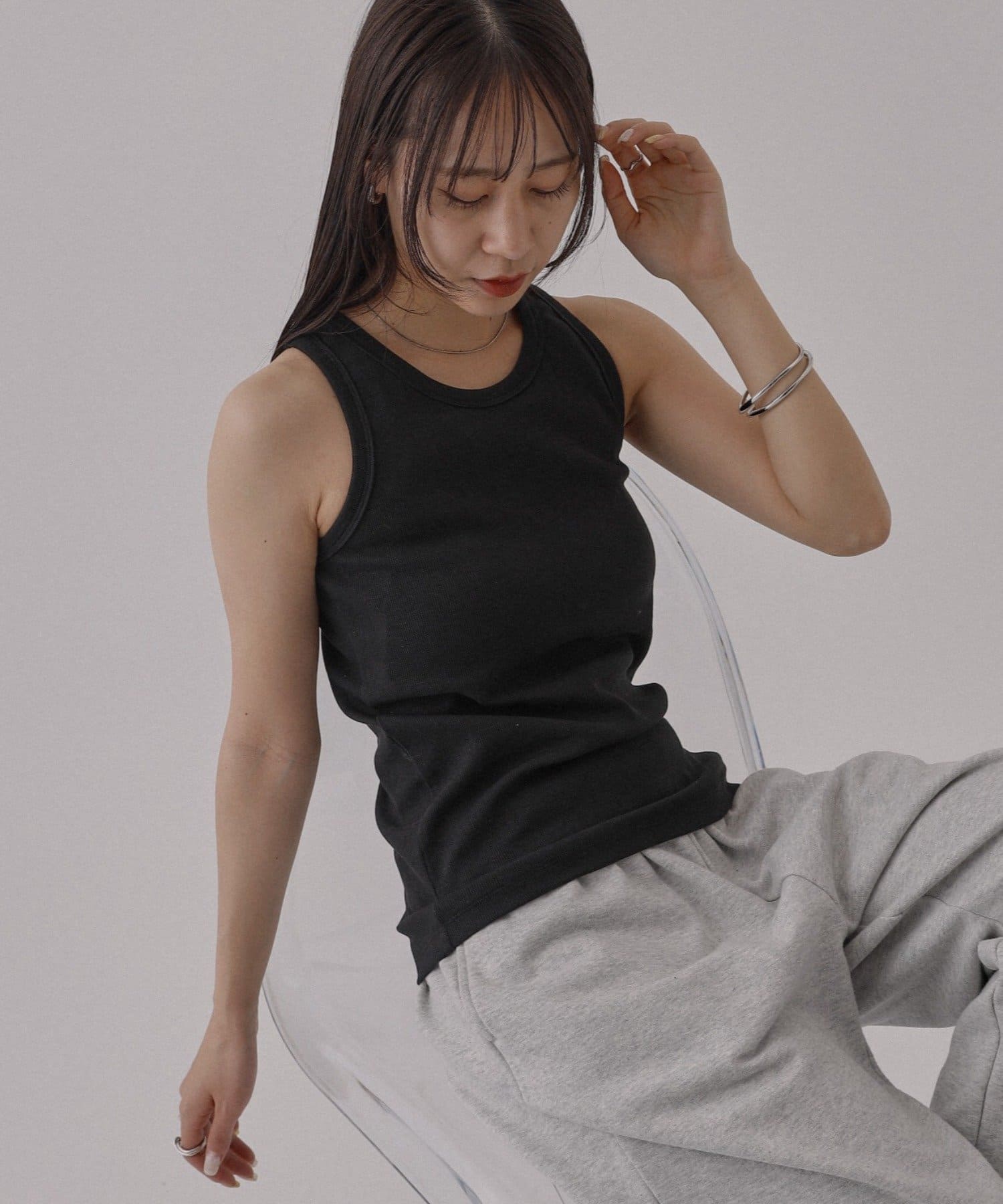 ・CWA1061406A0008 多機能テレコスクエアネックタンクトップ