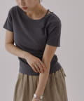 首元のスリットデザインがかわいいスムースTシャツです。